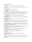 Literary Terms to Know 1. Inner Voice - what you say or think to yourself as you internally interpret the story or play 2. Genre - French word for the “category” or “type” of literature, defined by style, content and form.(ex: novel, short story, poem) 3. (a) Autobiography - Writer’s story of his/her own life. 4. (b) Biography - The writer’s story or account of some other person’s life. 5. (c) Poetry - Writing that is imaginative and emotional, written with words that are vivid and colorful. These words are then arranged so that they have pleasing sound and rhythm; e.g., sonnets, limericks, free verse, etc.) 6. (d) Myth - Story that tries to explain a belief, especially a belief having to do with nature, life or religion. 7. (e) Realistic Fiction - A contrived story which could really happen or have happened. 8. *Contemporary Fiction - Though the story is made up, is seems like something that could happen now, using a modern setting. 9. *Historical Fiction - Though the story is made up, it seems like something that could have really happened in the past, ( earlier times ) 10. (f) Mystery - same components of other realistic fiction, but with a vital change of emphasis: everything in the story revolves around a puzzle, or an unusual problem to solve (has a question to be answered or secret to be uncovered) 11. (g) Science Fiction - major events might really happen, based on scientific facts that we know to be true; usually in the near or distant future on Earth or another location that real scientists theorize may exist. (about worlds that could be, somewhere out there) 12. (h) Fantasy - major events could not happen, according to science as we know it today, usually right now in either a real or imaginary place. Magic or impossible strategies are used to solve a problem; e.g., sorcerers, dragons, etc. 13. (i) Folktale - story or legend forming part of an oral tradition made up of recorded legends, fairy tales, pourquoi (why-it- happened) tales, fables (moral stories), and trickster tales 14. (j) Short story - A brief work of fiction that contains all the basic literary elements. 15. Non-fiction - A work based on fact. 16. General non-fiction - A work based on fact other than a biography or autobiography; e.g., Geography, Science, Technology 17. Fiction - A literary work whose content is produced by the imagination and is not necessarily based on fact 18. Glossary - a collection of terms with definitins, limited to a special area of knowledge or usage ( a one subject dictionary) 19. Bibliography - an alphaetic listing of sources of information about a specific subject 20. Prose - Ordinary non-poetic writing 21. Novel - A book-length prose story. It is fictional, which means it is made up or created by the author’s imagination. 22. Episode - a part of a story that is a story in itself; an incident that is complete and makes sense on its own 23. Trilogy - a series or group of three plays, novels, operas, etc., that although individually complete are closely related in theme sequence or the like 24. Author’s Purpose - their reason for creating a work, to explain, inform, entertain, persuade or reveal an important truth 25. Book Review - a formal, critical examination of a work of fiction ( examining literary devices) or nonfiction (examining factual data clearness, originality, etc.) 26. Book Jacket - a dust cover for a book, includes title and author on front, author’s picture and/or positive comments from reviewers and/or a synopsis 27. Blurb - a synopsis found on the front flap of a book previewing its contents BASIC PARTS OF A SHORT STORY OR NOVEL 28. Prologue - a preface or introduction to the story, the author’s setting forth of the meaning or purpose 29. Setting - time and place in which the action of a story takes place 30. Plot - a sequence of related events that make up the story 31. Chronology - an arrangement of events in the order of their occurrence 32. Conflict - major struggle between characters or between opposing forces (problem to be overcome) 33. (a) External - the main character struggles with another person or with an outside force, like the sea [problems over which the character has no control, e.g. acts of God] (1) man vrs. man (2) man vrs. nature (3) man vrs. society (4) man vrs. fate 34.(b) Internal - a self imposed challenge; the main character struggles with opposing ideas or feelings within his or her own mind; usually involves decision making (ex: divorce, suicide, isolation] (5) man vrs. himself 35. Exposition - the first part of a plot that explains, informs, or presents information; where the author establishes the setting, introduces the main characters and the basic situation 36. Rising Action - events from a story preceding the climax where various problems arise; the explanation and complications that lead to the climax 37. Climax - high point of interest or suspense and action in the story. 38. Turning Point - the exact point where the main character(s) faces a huge decision and when tensions are usually high 39. Falling Action - part of the story which follows the climax and leads to the resolution 40. Resolution - the end of the central story or play; a satisfying conclusion to the story (opened or closed) 41. Epilogue - an afterward or concluding section usually about the future of the characters 42. Theme - the underlying meaning of the story; the central idea or the purpose of the story; a universal truth 43. Characters - who is/are in the story; person, animal or an imaginary creature that takes part in the action of the story 44. Characterization - the act of creating & developing a character; reveals characters personalities or quirks (1) through description (2) through interaction with other characters (3) through dialogue (conversations) 45. Protagonist - a main character of the story (often the hero) 46. Antagonist - character or force in direct conflict with the protagonist 47. Motivation - why characters behave in a cer