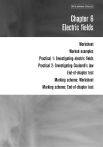 OCR (A) specifications: 5.4.6a,b,c,d,e,f Chapter 6 Electric fields Worksheet Worked examples Practical 1: Investigating electric fields Practical 2: Investigating Coulomb’s law End-of-chapter test Marking scheme: Worksheet Marking scheme: End-of-chapter test Worksheet permittivity of free space ε0 = 8.85 × 10–12 F m–1 elementary charge e = 1.6 × 10–19 C Intermediate level 1 State two possible SI units for electric field strength. [2] 2 A +5.0 × 10–8 C point charge experiences a force of 1.5 × 10–3 N when placed in a uniform electric field. Calculate the electric field strength. [2] Calculate the force experienced by an oil droplet with a charge of 3.2 × 10–19 C due to a uniform electric field of strength 5.0 × 105 V m–1. [2] 3 4 The diagram shows two parallel plates separated by 3.0 cm connected to a supply of 600 V. + 600 V + + + + + charged oil droplet + + 3.0 cm – – – – – – – 0V a Calculate the magnitude and direction of the electric field between the plates. [3] b What is the nature of the electric field between the plates? [2] c An oil droplet of weight 6.4 × 10–15 N is held stationary between the two plates. i ii 5 State whether the charge on the droplet is positive or negative. Explain your answer. [2] Determine the charge on the oil droplet. [2] Draw the electric field patterns for the electrodes shown. + + + + + + + + + – –– + – + – – – – – a [2] 6 Electric fields – – – + + – + + + – + + + + – + – b [2] – – – – – c [2] © Cambridge University Press 2005 61 6 Calculate the electrical force between a proton and an electron separated by a distance of 5.0 × 10–11 m. [3] 7 The electric field strength E at a distance r from a point charge Q may be written as: E=k Q r2 What is the value for k? [2] Higher level 8 The diagram shows a point charge +q placed in the electric field of a charge +Q. E +q +Q C A D B R R The force experienced by the charge +q at point A is F. Calculate the force experienced by this charge when it is placed at points B, C, D and E. In each case, explain your answer. [9] 9 A spherical metal dome of radius 15 cm is electrically charged. It has a positive charge of +2.5 µC distributed uniformly on its surface. a Calculate the electric field strength at the surface of the dome. [3] b Explain how your answer to a would change at a distance of 30 cm from the surface of the dome. [2] 10 The diagram shows two point charges. + 20 µC The point X is midway between the charges. a b Calculate the electric field strength at point X due to: X + 40 µC 80 cm i the +20 µC charge; [3] ii the +40 µC charge. [2] Calculate the resultant field strength at point X. [2] 11 Describe some of the similarities and differences between the electrical force due to a point charge and the gravitational force due to a point mass. 62 © Cambridge University Press 2005 [6] 6 Electric fields Extension 12 The diagram shows two point charges. Calculate the distance x of point P from charge +Q where the net electric field strength is zero. +Q [6] +3Q P x 10 cm 13 Show that the ratio: electrical force between two protons gravitational force between two protons is about 1036 and is independent of the actual separation between the protons. (Mass of a proton = 1.7 × 10–27 kg; gravitational constant G = 6.67 × 10–11 N m2 kg–2.) Total: ––– Score: 64 6 Electric fields [5] % © Cambridge University Press 2005 63 Worked examples Example 1 The diagram shows two parallel plates separated by 3.0 cm and connected to a highvoltage supply. Calculate the electric field strength between the plates. What is the force experienced by a dust particle with a charge of – 8.0 × 10–18 C between the plates? dust particle + + + + 4.8 kV E 0V – – – – The electric field between the plates is uniform and its strength is given by: V E= d Therefore: E= 4.8 × 103 =1.6 × 105 V m–1 3.0 × 10–2 Since by definition E = F , the force F experienced by the charged dust particle is: Q F = EQ = 1.6 × 105 × (–8.0 × 10–18) F = –1.28 × 10 –12 N ≈ –1.3 × 10 –12 N The minus sign means that the force experienced by the dust particle is in the opposite direction to the direction of the electric field. Example 2 The diagram shows a charged isolated sphere of radius 40 cm. The charge of +5.0 µC is uniformly distributed on the surface of the sphere. What is the electric field strength at the surface of the sphere? Calculate the distance from the centre of the sphere at which the electric field strength is 70 kV m–1. charge = +5.0 µC + + + 40 cm + + + + + For an isolated charged sphere, the electric field strength is given by: E= Q 4πε0r2 The surface electric field strength is: 5.0 × 10 Q = 4πε0r2 4π × 8.85 × 10–12 × 0.402 –6 E= E = 2.8 × 105 V m–1 The electric field created by the sphere is equivalent to that due to a charge of +5.0 µC at the centre of the sphere. (280 kV m–1) At a distance r from the centre of the charged sphere, the electric field strength is 70 kV m–1. 70 × 103 = r= 5.0 × 10–6 4πε0r2 5.0 × 10–6 = 0.80 m 4π × 8.85 × 10–12 × 70 × 103 Note that electric field strength decreases by a factor of four when the distance is doubled. Tip It is vital to substitute correctly into the equations, taking particular care with prefixes like µ (10–6) and k (103). 64 © Cambridge University Press 2005 6 Electric fields Practical 1 Investigating electric fields Safety The usual safety rules apply when using an e.h.t. supply. These experiments are best done as teacher demonstrations. Teachers and technicians should follow their school and departmental safety policies and should ensure that the employer’s risk assessment has been carried out before undertaking any practical work. Aparatus • • • • • • • • e.h.t. supply metal sphere (football covered with aluminium foil) two large parallel capacitor plates polythene strip (or plastic ruler) gold leaf adhesiv