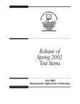 items on which the spring 2002 MCAS student results are based. Release of these items