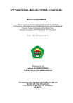 ICT DAN GERAKAN GURU CERDAS (GARUDAS) MAKALAH KELOMPOK Disusun untuk memenuhi tugas Kelompok, dalam matakuliah “TEKNOLOGI INFORMASI DAN KOMUNIKASI DALAM PENDIDIKAN” Program Magister Manajemen Pendidikan Islam, Sekolah Pascasarjana Universitas Islam “45” Kota Bekasi Dosen : Dr.H. Aprilliantoni, ME, Sy Kelompok 10 Lusiana (41189901200002) Yudhita Omayra(41189901200014) MAGISTER MANAJEMEN PENDIDIKAN ISLAM SEKOLAH PASCASARJANA UNIVERSITAS ISLAM “45” (UNISMA) BEKASI KATA PENGANTAR Bismillahirrohmanirrohiim,Alhamdulillah puji dan syukur kehadirat Allah SWT, atas karunia dan hidayah-Nya, sehingga penulis dapat menyelesaikan makalah kelompok yang mengangkat tema “ICT dan Gerakan Guru Cerdas (Garudas)”. Dengan harapan makalah ini dapat memenuhi tugas kelompok dalam mengikuti Program Magister Manajemen Pendidikan Islam, pada Sekolah Pasca Sarjana (S2) Universitas Islam “45” (UNISMA) Bekasi. Makalah ini disusun dengan tujuan memberikan wawasan dan tuntunan bagi pembaca untuk mempelajari tentang ICT dan Gerakan Guru Cerdas. Demi penyempurnaan makalah ini , penulis sangat mengharapkan kritik,saran dan gagasan pembaca khususnya dari teman-teman profesi dalam bidang pendidikan. Billaahit Taufiq wal Hidaayah, Bekasi, 18 Mei 2021. Penyaji Makalah, Lusiana & Yudhita Omayra i DAFTAR ISI Kata Pengantar…………………………………………………………… i Daftar Isi………………………………………………………………….. ii BAB I PENDAHULUAN 1.1. Latar Belakang…………………………………………… 1 1.2. Rumusan Masalah……………………………………….. 2 1.3. Tujuan Penulisan………………………………………… 3 1.4. Metodelogi Penulisan……………………………………. 3 BAB II PEMBAHASAN 2.1 Kompetensi Guru Profesional………………………….. 2.1.1 2.2 Kompetensi TIK………………………………… 4 5 Gerakan Guru Cerdas 2.2.1 Kondisi Guru di Indonesia……………………….. 8 2.2.2 Gerakan Guru Cerdas (Garudas)………………… 9 KESIMPULAN………………………………………………………….... 12 DAFTAR PUSTAKA……………………………………………………. 13 ii BAB I PENDAHULUAN 1. Latar Belakang Adanya disrupsi yang terjadi secara global, dan di segala bidang terutama dalam bidang teknologi, yang mana ini merupakan dampak dari pandemi virus covid-19, akhirnya berdampak pula pada semua sektor, termasuk pada sektor pendidikan. Perubahan yang besar dan mendasar ini memberi peluang sekaligus tantangan bagi tenaga kependidikan terutama guru. Guru harus mampu beradaptasi dengan perubahan tersebut, harus bisa mempersiapkan anak didiknya agar mereka nantinya mampu menjawab tantangan zaman yang akan terus mengalami perubahan yang sangat pesat. Sebagai dampak kemajuan yang pesat di bidang teknologi, cara bekerja masa depan pun akan sangat berbeda dengan masa kini. Tipe pekerjaan baru akan banyak muncul untuk mengakomodasi manusia dan teknologi yang berubah dengan sangat cepat. Teknologi menyederhanakan pekerjaan manusia, serta mampu memberikan pemahaman/ info yang lebih baik tentang segala sesuatu. Pandemi virus covid-19 telah mendorong terjadinya perubahan yang sangat pesat. Sekolahsekolah di seluruh dunia harus cepat beradaptasi dengan system digital untuk memfasilitasi pembelajaran jarak jauh. Oleh karena itulah, mau tidak mau, seorang guru yang cerdas harus bisa menguasai teknologi informasi dan komunikasi. Dengan demikian diharapkan, kegiatan belajar mengajar dengan metode baru ini mampu melahirkan SDM yang unggul, yakni sebagaimana wacana dari visi Pendidikan Indonesia 2035, yaitu “Membangun rakyat Indonesia menjadi pembelajar seumur hidup yang unggul, terus berkembang, sejahtera dan berakhlak mulia dengan menumbuhkan nilai-nilai budaya Indonesia dan Pancasila” (Kemendikbud). 1 2 Saat ini, keberadaan Teknologi Informasi dan Komunikasi (TIK) sudah menjadi bagian penting dalam kehidupan manusia, seiring dengan era masyarakat informasi (information society). Pendidikan menjadi bagian dari sektor yang menjadikan TIK sebagai tulang punggung kemajuan pendidikan, sekaligus sebagai daya ungkit (leverage) peningkatan mutu pendidikan. Setidaknya TIK dalam pendidikan berfungsi sebagai alat bantu (as a tools), sebagai bahan ajar (as a learning resources) dan sebagai sistem pendukung (as a support system). Guru menjadi ujung tombak pemanfaatan TIK dalam pendidikan, karena guru berada pada posisi front end yang langsung bersentuhan dengan end user pendidikan yaitu siswa. Keberadaan TIK di masyarakat yang begitu terbuka (open access) sangat memungkinkan siswa bisa lebih mengakses informasi secara cepat, dan jika guru tidak mengimbangi maka bisa terjadi knowledge capacity siswa lebih tinggi dibandingkan guru. Oleh karena itu guru dituntut untuk memiliki kemampuan TIK yang memadai, bahkan tidak hanya cukup dengan ICT literacy tapi harus beranjak menjadi ICT fluence. Luasnya kebutuhan kemampuan TIK bagi guru saat ini dipandang perlu adanya parameter dan kerangka apa saja yang menjadi bingkai kompetensi guru dalam penguasaan TIK. 2. Rumusan Masalah Berdasarkan tema dari makalah ini, yakni “ TIK dan Gerakan Guru Cerdas”, maka kami merumuskan masalah di sini dengan mengangkat permasalahan yang kerap muncul dalam penerapan TIK di dunia Pendidikan, di antaranya: 1. Parameter dan kerangka apa saja jika merujuk pada kerangka kerja kompetensi TIK untuk guru yang dikembangkan oleh UNESCO (UNESCO ICT Competency Framework for Teachers)? 3 2. Mengapa Program Gerakan Guru Cerdas diluncurkan oleh Dinas Pendidikan DKI Jakarta 3. Bagaimana Gerakan Guru Cerdas meningkatkan kompetensi guru agar dapat menguasai TIK sehingga sistem pendidikan Indonessia bisa beradaptasi terhadap dampak dari disrupsi teknologi? 3. Tujuan Penulisan Adapun tujuan penulisan makalah ini adalah: 1. Untuk mengetahui Kerangka Kompetensi TIK bagi guru berdasarkan standart UNESCO. 2. Untuk mengetahu