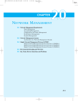 M21_STAL7412_06_SE_C20.QXD 8/22/08 3:29 PM Page 20-1 CHAPTER NETWORK MANAGEMENT 20.1 Network Management Requirements Fault Management Accounting Management Configuration and Name Management Performance Management Security Management 20.2 Network Management Systems Architecture of a Network Management System 20.3 Simple Network Management Protocol (SNMP) Simple Network Management Protocol Version 1 (SNMPv1) Simple Network Management Protocol Version 2 (SNMPv2) Simple Network Management Protocol Version 3 (SNMPv3) 20.4 Recommended Reading and Web Sites 20.5 Key Terms, Review Questions, and Problems 20-1 M21_STAL7412_06_SE_C20.QXD 20-2 8/22/08 3:29 PM Page 20-2 CHAPTER 20 / NETWORK MANAGEMENT Chapter Objectives After reading this chapter, you should be able to ♦ List and define the key requirements that a network management system should satisfy. ♦ Give an overview of the architecture of a network management system and explain each of its key elements. ♦ Describe SNMP and list the differences among versions 1, 2, and 3. Networks and distributed processing systems are of critical and growing importance in enterprises of all sorts. The trend is toward larger, more complex networks supporting more applications and more users. As these networks grow in scale, two facts become painfully evident: • The network and its associated resources and distributed applications become indispensable to the organization. • More things can go wrong, disabling the network or a portion of the network or degrading performance to an unacceptable level. A large network cannot be put together and managed by human effort alone.The complexity of such a system dictates the use of automated network management tools. The urgency of the need for such tools is increased, and the difficulty of supplying such tools is also increased, if the network includes equipment from multiple vendors. Moreover, the increasing decentralization of network services as exemplified by the increasing importance of workstations and client/server computing makes coherent and coordinated network management increasingly difficult. In such complex information systems, many significant network assets are dispersed far from network management personnel. This chapter provides an overview of network management.We begin by looking at the requirements for network management. This should give some idea of the scope of the task to be accomplished. To manage a network, it is fundamental to know something about the current status and behavior of that network. For either LAN management alone, or for a combined LAN/WAN environment, what is needed is a network management system that includes a comprehensive set of data gathering and control tools and that is integrated with the network hardware and software. We look at the general architecture of a network management system and then examine the most widely used standardized software package for supporting network management: SNMP. 20.1 NETWORK MANAGEMENT REQUIREMENTS Table 20.1 lists key areas of network management as suggested by the International Organization for Standardization (ISO). These categories provide a useful way of organizing our discussion of requirements. M21_STAL7412_06_SE_C20.QXD 8/22/08 3:29 PM Page 20-3 20.1 / NETWORK MANAGEMENT REQUIREMENTS 20-3 Table 20.1 ISO Management Functional Areas Fault management The facilities that enable the detection, isolation, and correction of abnormal operation of the OSI environment. Accounting management The facilities that enable charges to be established for the use of managed objects and costs to be identified for the use of those managed objects. Configuration and name management The facilities that exercise control over, identify, collect data from, and provide data to managed objects for the purpose of assisting in providing for continuous operation of interconnection services. Performance management The facilities needed to evaluate the behavior of managed objects and the effectiveness of communication activities. Security management Those aspects of OSI security essential to operate OSI network management correctly and to protect managed objects. Fault Management OVERVIEW To maintain proper operation of a complex network, care must be taken that systems as a whole, and each essential component individually, are in proper working order. When a fault occurs, it is important, as rapidly as possible, to • Determine exactly where the fault is. • Isolate the rest of the network from the failure so that it can continue to function without interference. • Reconfigure or modify the network in such a way as to minimize the impact of operation without the failed component or components. • Repair or replace the failed components to restore the network to its initial state. Central to the definition of fault management is the fundamental concept of a fault. Faults are to be distinguished from errors. A fault is an abnormal condition that requires management attention (or action) to repair. A fault is usually indicated by failure to operate correctly or by excessive errors. For example, if a communications line is physically cut, no signals can get through. Or a crimp in the cable may cause wild distortions so that there is a persistently high bit error rate. Certain errors (e.g., a single bit error on a communication line) may occur occasionally and are not normally considered to be faults. It is usually possible to compensate for errors using the error control mechanisms of the various protocols. USER REQUIREMENTS Users expect fast and reliable problem resolution. Most end users will tolerate occasional outages. When these infrequent outages do occur, however, the user generally expects to receive immediate notification and expects that the problem will be corrected almost immediately. To provide this level of fault resolution requires very rapid and reliable fault detection and diagnostic management functions. The impact and duration of fault