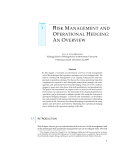 Chapter 1 R ISK M ANAGEMENT AND O PERATIONAL H EDGING : A N O VERVIEW J AN A. VAN M IEGHEM Kellogg School of Management, Northwestern University Preliminary Draft: December 30, 20091 Abstract In this chapter, we present an introductory overview of risk management and of the techniques that operations managers can use to mitigate risks. We start by viewing risk management as an ongoing 4-step process and integral part of operations strategy. We discuss the various operational risks that companies are exposed to and distinguish tactical from strategic risk management, and operational from financial hedging. Then we review methodologies to assess and value those risks both qualitatively and quantitatively. The goal of risk assessment is to improve how we react to risk and to proactively reduce our exposure to it. The remainder of the chapter illustrates how operations can be structured to mitigate specific risks using the four generic operational hedging strategies: 1) reserves and redundancy; 2) diversification and pooling; 3) risk sharing and transfer; and 4) reducing or eliminating root causes of risk. We also review financial hedging of operational risk using options and derivatives and finish by illustrating how operational hedging can be tailored to the operations strategy of the firm. 1.1 I NTRODUCTION This chapter aims to give an introduction and overview of risk management and of the techniques that operations management can use to mitigate risks. We start 1 This chapter is based on Chapter 9 in Van Mieghem (2008) and will be reviewed for inclusion in the Handbook of Integrated Risk Management in Global Supply Chains, co-edited by Panos Kouvelis, Onur Boyabatli, Lingxiu Dong, and Rong Li, and to be published by John Wiley & Sons, Inc. 1 2 Chapter 1 • Risk Management and Operational Hedging: An Overview the next section by describing the concept of risk management and viewing it as an ongoing 4-step process and integral part of operations strategy. We distinguish operational from financial risk. In section 3, we identify the various operational risks that companies are exposed to. Then we review methodologies to assess and value those risks both qualitatively (using subjective risk maps) and quantitatively (using risk preference functions and risk metrics). The goal of risk assessment is to improve how we react to risk and to proactively reduce our exposure to it. In section 5, we review tactical risk decisions, including risk discovery and risk recovery. The remaining sections of the chapter illustrates strategic risk mitigation, i.e., how operations can be structured to mitigate specific risks. Hedging refers to any action taken to mitigate a particular risk exposure; operational hedging uses operational instruments. Section 7 posits that there are four generic strategies to mitigate risk using operational instruments: 1) reserves and redundancy; 2) diversification and pooling; 3) risk sharing and transfer; and 4) reducing or eliminating root causes of risk. Section 8 reviews financial hedging of operational risk using options and derivatives. Section 9 illustrates how operational hedging can be tailored to the specific operations strategy of the firm using techniques such as: tailored redundancy, dynamic pooling with allocation flexibility, chaining, and multi-sourcing. Section 10 finishes the chapter by summarizing some guidelines for operational risk management. 1.2 R ISK M ANAGEMENT : C ONCEPT AND P ROCESS Defining hazards and risk Before we can describe the concept of risk management, we must first define some terms. Hazards are potential sources of danger. In a business setting, danger can mean anything that may have a negative impact on the firm’s net present value. Hazards have a harmful impact, but they may or may not occur. In everyday language, risk refers to an exposure to a chance of loss or damage. (“We risked losing a lot of money in this venture”; “Why risk your life?”) Risk thus arises from hazards and exposure: it does not exist if exposure to a hazard does not or will not occur (e.g., if you live on top of a mountain, you are not at risk of flooding). The interpretation of risk as an undesirable possible consequence of uncertainty suggests that risk is a combination of two factors: 1. The probability that an adverse event or hazard will occur. 2. The consequences of the adverse event. Financial versus operational risk While it is intuitive to associate risk with a probability and an undesired outcome, there are other interpretations of risk. The 1997 Presidential-Congressional Commission on Risk Management defined risk as the probability that a substance or situation will produce harm under specified conditions. In economics, 1.2 Risk Management: Concept and Process 3 “risk refers to situations in which we can list all possible outcomes and we know the likelihood that each outcome occurs.”(Pindyck and Rubinfeld 1989) In finance, risk is “the possibility that the actual outcome is likely to diverge [or deviate] from the expected value.” (Sharpe 1985). In finance, risk is equated with uncertainty in payoffs, which we will refer to as profit variability risk. Risk then implies the existence of some random variable whose standard deviation or variance can be used as a measure of risk. Notice that this view calls any uncertainty in outcomes, whether favorable or not, risk. The key distinction from the common interpretation of risk is the absence of “danger” or an “adverse event.” For instance, people don’t typically say that they are at risk of winning the lottery. Operational risks are risks that stem from operations, i.e. from activities and resources. Any potential source that generates a negative impact on the flow of information, goods, and cash in our operations is an operational risk. The inclusion of cash flowing through the operation implies that financial and operational risks are not mutually exclusive. But the goal of operati