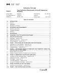 Advisory Circular Subject: Issuing Office: Standards Document No.: File Classification No.: Z 5000-34 Issue No.: RDIMS No.: 5610617-V40 Effective Date: AC 521-002 01 2011-10-19 1.1 Purpose ............................................................................................................................................ 3 1.2 Applicability ...................................................................................................................................... 3 1.3 Description of Changes .................................................................................................................... 3 2.1 Reference Documents ..................................................................................................................... 3 2.2 Cancelled Documents ...................................................................................................................... 4 2.3 Definitions ........................................................................................................................................ 4 5.1 Application — Section 521.25 .......................................................................................................... 6 5.2 Eligibility Requirements — Section 521.26 ...................................................................................... 6 5.3 Aircraft Categories — Section 521.27.............................................................................................. 7 6.1 Application for a Type Certificate — Section 521.28 ....................................................................... 7 6.2 Effective Period of an Application — Section 521.29 ...................................................................... 8 6.3 Certification Basis — Section 521.30............................................................................................... 9 7.1 Establish Means of Compliance ....................................................................................................... 9 7.2 Establish Transport Canada Civil Aviation Level of Involvement .................................................. 10 8.1 Compliance with the Certification Basis — Section 521.33 ........................................................... 10 8.2 Inspections and Tests — Section 521.44 ...................................................................................... 14 8.3 Test Flights — Section 521.45 ....................................................................................................... 14 8.4 Test Flight Operations — Section 521.46 ...................................................................................... 16 8.5 Function and Reliability Test Flights — Section 521.47 ................................................................ 21 9.1 Issuance of a Type Certificate — Section 521.57 .......................................................................... 21 10.1 General........................................................................................................................................... 22 10.2 Designated Provisions and Penalties for Non-Compliance – Subpart 103 ................................... 22 10.3 Transfer of Type Certificates to a New Holder ............................................................................... 22 10.4 Retention of Type Certificates and Supporting Data ..................................................................... 22 10.5 Certificate Holder Responsibilities ................................................................................................. 22 Type Certification Requirements of Aircraft, Engines and Propellers 1.0 INTRODUCTION (1) This Advisory Circular (AC) is provided for information and guidance purposes. It may describe an example of an acceptable means, but not the only means, of demonstrating compliance with regulations and standards. This AC on its own does not change, create, amend or permit deviations from regulatory requirements, nor does it establish minimum standards. (1) The purpose of this document is to provide guidance on subpart 521 of the Canadian Aviation Regulations (CARs). (1) This document applies to: (a) applicants for, and holders of all new and revised type certificates for aeronautical products; (b) Transport Canada Civil Aviation (TCCA) personnel; (c) delegates; and (d) the aviation industry. (1) Not Applicable 2.0 REFERENCES AND REQUIREMENTS (1) It is intended that the following reference materials be used in conjunction with this document: (a) Aeronautics Act (R.S., 1985, c. A-2); (b) Part V Subpart 21 of the Canadian Aviation Regulations (CARs)—Approval of the Type Design or a Change to the Type Design of an Aeronautical Product; (c) Standard 523 of the CARs—Normal, Utility, Aerobatic and Commuter Category Aeroplanes; (d) Standard 525 of the CARs—Transport Category Aeroplanes; (e) Civil Aviation Directive (CAD) REG-003 —Exemptions from Regulatory Requirements; (f) Staff Instruction (SI) 500-003 Issue 02, 2008-02-29—Level of Involvement (LOI); (g) SI 500-004, Issue 01, 2003-06-10—Special Conditions – Airworthiness (SCA); (h) SI 500-018, Issue 02 — 2009-12-22 - Design Approval Document Transfers under CAR 521: Division VIII—Responsibilities of a Design Approval Document Holder; (i) Advisory Circular (AC) 500-015 Issue 01, 2004-12-01—Certification Plans; (j) AC 561-003, Issue 01, 2007-12-01—Aircraft Production Test Flights; (k) Transport Canada form number 26-0756, Version 1007-01—Type Certificate Application; and (l) General Aviation Manufacturers Association (GAMA) Specification No. 1 (Revised in October 1996). 2011-10-19 3 of 37 AC 521-002 Issue 01 Type Certification Requirements of Aircraft, Engines and Propellers (1) As of the effective date of this document, the following documents are cancelled: (a) AC 500-014 Issue 01, 2004-12-01—Aircraft Flight Manuals; and (b) Internal Process Bulletin (IPB) 2010-04