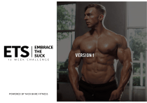 VERSION 1 EMBRACE THE SUCK WEEK 1 Program Overview: This week is a 6-day training split with 2 cardio sessions. FOCUS: Chest, Shoulders, Triceps EXERCISE REPS SETS NOTES Cable Flys 15-20 4 * This is a pre-exhaustion exercise for the remaining sets of the workout. Dumbbell Chest Press 8-10 4 * Place bench for dumbbell press on slight incline. Push Up 25 4 Close Grip Push Up AMRAP 4 *SUPERSET - Complete 25 push ups in a normal position and then as many reps as possible (AMRAP) in a close grip position : preferably on a medicine ball or with hands placed at the end of a bench. Barbell Overhead Press 8-10 4 Upright Row 8-10 3 Front Raise 8-10 3 Overhead Press AMRAP 3 Rope Cable Push Down 15-20 5 *SUPERSET - Use the same weight for all the exercises in the TRI-SUPERSET. Recommended to use a barbell (with added weight). 1 EMBRACE THE SUCK WEEK 1 Program Overview: This week is a 6-day training split with 2 cardio sessions. FOCUS: Back, Biceps, Abs EXERCISE REPS SETS Pull Ups AMRAP 4 Deadlifts 5 5 Wide Grip Seated Cable Row 12-15 4 Lat Pull Down 12-15 4 Standing Barbell Curl 8-10 3 Dumbbell Hammer Curl 8-10 3 Decline Sit Ups AMRAP 4 Hanging Leg Raises AMRAP 4 NOTES * 75% of 1 rep max *SUPERSET *SUPERSET 2 EMBRACE THE SUCK WEEK 1 Program Overview: This week is a 6-day training split with 2 cardio sessions. FOCUS: Legs EXERCISE REPS SETS Barbell Squat 5 5 Barbell Squat AMRAP 1 Leg Extensions 20 4 Leg Curls 20 4 Barbell Lunges 10 3 Jefferson Squats 10-12 4 Calf Raises 20-25 3 Pistol Squats AMRAP 3 NOTES * 70% of 1 rep max. * Use bodyweight. EX: If you weigh 225 lb. - place 225 lb. on the bar and squat as many reps as possible. * Complete all 20 reps each set even if you need to take pause rests in between reps. * 10 reps each leg. * Try to complete as many reps as possible (do not become discouraged if you cannot complete). 3 EMBRACE THE SUCK WEEK 1 Program Overview: This week is a 6-day training split with 2 cardio sessions. FOCUS: Full Upper Body EXERCISE REPS SETS Dumbbell Chest Press 8-10 4 Pendlay Rows 8-10 4 Arnold Press 12-15 4 Facepulls 12-15 4 Dumbbell Bicep Curl 8-10 4 Close Grip Bench Press 12-15 4 Push Ups 100 As Many As Needed Pull Ups 100 As Many As Needed NOTES 4 EMBRACE THE SUCK WEEK 1 Program Overview: This week is a 6-day training split with 2 cardio sessions. FOCUS: Metabolic Conditioning, Abs Men use 50-lb. Dumbbell and 24-in. Box. / Women use 35-lb. Dumbbell and 20-in. Box. For Time 10 Dumbbell Snatches 15 Burpee box Jump Overs 20 Dumbbell Snatches 15 Burpee box Jump Overs 30 Dumbbell Snatches 15 Burpee box Jump Overs 40 Dumbbell Snatches 15 Burpee box Jump Overs 50 Dumbbell Snatches 15 Burpee box Jump Overs * Finish with Hanging Leg Raises - 4 sets x AMRAP 5 EMBRACE THE SUCK WEEK 1 Program Overview: This week is a 6-day training split with 2 cardio sessions. STRONG MAN SATURDAY EXERCISE REPS SETS NOTES Warm Up 10 minutes steady state cardio Warm Up 10 x 5 strict pull ups, 10 push ups, 15 air squats Warm Up 10-20 minutes mobility/stretching work Bench Press 3 5 Barbell Squat 3 5 Deadlift 3 5 Barbell Push Press 5 5 6 EMBRACE THE SUCK WEEK 1 Program Overview: This program provides 2 cardio sessions. Steady State Cardio Track Workout 20 minutes on any piece of cardio equipment: 1. 2. 3. 4. 5. 1. 2. 3. 4. 5. 6. Treadmill Run Outside Elliptical Assault Bike Swim Etc. 7 200 m x 4 400 m x 4 800 m x 1 400 m x 2 200 m x 2 EMBRACE THE SUCK WEEK 2 Program Overview: This week is a 6-day training split with 2 cardio sessions. FOCUS: PUSH EXERCISE REPS SETS NOTES Push Up Pyramid 10 10 * Complete on smith machine. Start on bottom setting and complete 10 push ups. Move the smith machine up each notch and complete 10 push ups. Start on the bottom, work towards the top, and back to the bottom. About 10 sets depending on your smith machine. Close Grip Dumbbell Press 8-10 4 * This is a chest press variation. Your hand positioning changes this exercise. Keep the dumbbells together throughout the entire movement. This isolate the inner chest and triceps. Landmine Press 12-15 4 Incline Barbell Press 8-10 4 Dumbbell Overhead Press 8-10 4 Side Lateral Raise 8-10 3 Dumbbell Shrugs 8-10 3 Floor Press 8-10 4 Rope Cable Push Down 15-20 5 *SUPERSET *SUPERSET 1 EMBRACE THE SUCK WEEK 2 Program Overview: This week is a 6-day training split with 2 cardio sessions. FOCUS: PULL EXERCISE REPS SETS Bent Over Barbell Row 8-10 4 Pull Ups AMRAP 4 One Arm Dumbbell Row 12-15 4 Lat Pull Down 12-15 4 Preacher Curl 8-10 4 Dumbbell Hammer Curl 8-10 3 Decline Sit Ups AMRAP 4 Hanging Leg Raises AMRAP 4 NOTES *SUPERSET *SUPERSET 2 EMBRACE THE SUCK WEEK 2 Program Overview: This week is a 6-day training split with 2 cardio sessions. FOCUS: LOWER EXERCISE REPS SETS NOTES Leg Press 10 10 * 45 second rest period between sets Bodyweight Squats 300 1 * Complete 300 bodyweight squats (no added weight) as fast as possible without compromising form. Leg Extensions 20 4 Leg Curls 20 4 Stiff Leg Deadlifts 10-12 4 Calf Raises 20-25 3 Pistol Squats AMRAP 3 * Complete all 20 reps each set even if you need to take pause rests in between reps. * Focus is on hamstrings. * Try to complete as many reps as possible (do not become discouraged if you cannot complete). 3 EMBRACE THE SUCK WEEK 2 Program Overview: This week is a 6-day training split with 2 cardio sessions. FOCUS: Full Upper Body EXERCISE REPS SETS Dumbbell Chest Press 8-10 4 Pendlay Rows 8-10 4 Arnold Press 12-15 4 Facepulls 12-15 4 Dumbbell Bicep Curl 8-10 4 Close Grip Bench Press 12-15 4 Cable Flys 8-10 4 Lat Pulls Downs 8-10 4 NOTES 4 EMBRACE THE SUCK WEEK 2 Program Overview: This week is a 6-day training split with 2 cardio sessions. FOCUS: Metabolic Conditioning, Abs *Scale weight as necessary For Time 50 Pull Ups 50 Push Ups 50 Deadlifts at 185 lb 50 Bench Press at 185 lb 50 Box Jumps at 40 inches 500 meter row * Finish with Hanging Leg Raises - 4 sets x AMRAP 5 EMBRACE THE SUCK WEEK 2 Program Overview: This week is a 6-day training split with 2 cardio sessions. STRONG MAN SATURD
