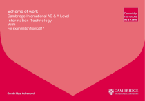 Scheme of work Cambridge International AS & A Level Information Technology 9626 For examination from 2017 Contents Overview ....................................................................................................................................................................................................................2 Data, information, knowledge and processing (AS Level)...........................................................................................................................................5 Hardware and software (AS Level) ...........................................................................................................................................................................10 Monitoring and control (AS Level) ............................................................................................................................................................................14 E-safety and health and safety (AS Level)................................................................................................................................................................15 The digital divide (AS Level) .....................................................................................................................................................................................16 Using networks (AS Level) .......................................................................................................................................................................................17 Expert systems (AS Level) .......................................................................................................................................................................................20 Spreadsheets (AS Level) .........................................................................................................................................................................................21 Database and file concepts (AS Level) .....................................................................................................................................................................26 Sound and video editing (AS Level) .........................................................................................................................................................................32 Emerging technologies (A Level) ..............................................................................................................................................................................34 Role and impact of IT in society (A Level) ................................................................................................................................................................36 Networks (A Level) ...................................................................................................................................................................................................40 Project management (A Level) .................................................................................................................................................................................44 System life cycle (A Level) .......................................................................................................................................................................................48 Graphics creation (A Level) ......................................................................................................................................................................................54 Animation (A Level) ..................................................................................................................................................................................................57 Mail merge (A Level) ................................................................................................................................................................................................58 Programming for the web (A Level) ..........................................................................................................................................................................59 V1 Cambridge International AS & A Level Information Technology (9626) – from 2017 Overview This scheme of work provides ideas for teachers about how to construct and deliver a course for Cambridge International AS & A Level Information Technology (9626). The syllabus has been broken down into teaching units with suggested teaching activities and learning resources to use in the classroom. This scheme of work, like any other, is meant to be a guideline, offering advice, tips and ideas. It can never be complete but aims to provide teachers with a basis for planning their lessons. As well as making sure that the content of the Information Technology syllabus is covered, it includes development ideas for topics. It does not take into account that different schools take different amounts of time to cover the Cambridge International AS and A Level course. Recommended prior knowledge ® We recommend that learners who are beginning this course should have previously completed a Cambridge IGCSE course, or the equivalent, in Information and Communication Technology or in Computer Science. Guided learning hours Guided learning hours give an indication of the amount of contact time teachers need to have with learners to deliver a particular course. Our syllabuses are designed around 180 hours for Cambridge International AS Level, and 360 hours for Cambridge International A Level. The number of hours may vary depending on local practice and the learners’ previous experience of the subject. The table below gives some guidance about how many hours are recommended for each topic. Outline Topic Level Suggested teaching time (hours) Suggested teaching order Data