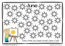 June Every time you read a book, color a sun! ©2016 Raising Little Superheroes raisinglittlesuperheroes.com