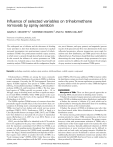 E242 Cecchetti et al | http://dx.doi.org/10.5942/jawwa.2014.106.0021 Peer-Reviewed Influence of selected variables on trihalomethane removals by spray aeration AIDAN R. CECCHETTI,1 HARRISON ROAKES,2 AND M. ROBIN COLLINS2 1University 2University of California, Berkeley, Calif. of New Hampshire, Durham, N.H. The widespread use of chlorine and the reluctance of drinking water providers to alter their disinfection systems have sparked increased investigation into posttreatment removal of trihalomethanes (THMs). One posttreatment method is spray aeration, in which water is sprayed through showerheads in storage tanks. In this research the influence of various parameters on THM removals was evaluated using a mass balance–based model and sensitivity analysis. THM formation and the configuration (droplet size, travel distance, and spray pattern) and magnitude (percent recycle) of the sprayed water flow were determined to be the most influential parameters, whereas temperature, spray angle for uniform cone flow distribution, and THM species were the least influential factors. Practitioners should find these results helpful in determining the most important design parameters for spray aeration systems. In addition, the study elucidates the advantages of spray aeration in removing brominated THM species. Keywords: modeling, sensitivity analysis, spray aeration, trihalomethanes, volatile organic compounds Trihalomethanes (THMs) are among the most commonly formed and studied disinfection by-products (DBPs) in drinking water treatment. Currently, the US Environmental Protection Agency (USEPA) regulates four species of THMs: chloroform (CHCl3), bromodichloromethane (CHBrCl2), dibromochloromethane (CHBr2Cl), and bromoform (CHBr3). The four regulated species of THMs typically are present in the ~ 10- to 100-µg/L range in drinking water and form a significant majority of total THMs (TTHMs). Other THM species rarely occur at levels higher than the levels of the regulated THM species (Richardson et al, 2007). The USEPA regulates THMs because of concerns about their potentially negative health effects. It has been shown that consumption of drinking water containing high concentrations of THMs may lead to liver, kidney, and central nervous system problems (USEPA, 2012). Furthermore, CHCl3 is listed as a Class 2B possible human carcinogen (IARC, 2013), and TTHMs have been linked to an increased risk of cancer in mammalian assays (Richardson et al, 2007; Ge et al, 2001; Pereira et al, 2001; Coffin et al, 2000). CHCl3 was the first DBP to be identified in the 1970s and the first to be regulated. In the past, water utilities were required to meet the maximum contaminant level (MCL) for THMs as an average over all sampling points throughout their distribution systems. In 2006, however, the USEPA issued expanded regulations—the Stage 2 Disinfectants/Disinfection Byproducts Rule— that require water utilities to analyze the levels of DBPs on a “local running average” (USEPA, 2006). Under these new rules, utilities must achieve compliance with the MCL at every sampling JOURNAL AWWA point (USEPA, 2012) because additional THM formation within the distribution system may lead to high concentrations at the far reaches of the system. The current regulations are spurring drinking water utilities to look for options to reduce THMs throughout their distribution systems. BACKGROUND Management of THMs. There are three general approaches to decreasing THM concentrations in drinking water systems. • Reduce the amount of organic precursors and natural organic matter (NOM) in drinking water before disinfection is undertaken. • Reduce the amount of chlorine (Cl2) used, which can be achieved either by lowering the chlorination dose or by modifying disinfection systems at the treatment plant. • Reduce the amount of THMs in drinking water after they have been formed, either before distribution or throughout the distribution system. For various reasons, posttreatment reduction of THMs has the greatest potential to reduce THM concentrations at the lowest cost and with the least intensive renovations. The primary reason, however, is that with posttreatment reduction of THMs, only a small fraction of the water supply needs to be treated at the most problematic locations. Typically, additional reductions in NOM concentrations at water treatment plants can be difficult to achieve and are both costly and energy-intensive. Modified disinfection schemes can also be difficult to achieve and maintain. Additionally, alternative disinfection systems may produce other potentially harmful DBPs that haven’t been as widely studied as those produced by chlorination. 2014 © American Water Works Association MAY 2014 | 106:5 E243 Cecchetti et al | http://dx.doi.org/10.5942/jawwa.2014.106.0021 Peer-Reviewed Dimensionless Henry’s law constants (at 20oC) for the THM species of interest are 0.0126 for CHCl3, 0.076 for CHBrCl2, 0.035 for CHBr2Cl, and 0.018 for CHBr3 (Staudinger & Roberts, 2001). It can reasonably be assumed that other volatile organic compounds (VOCs) with similar Henry’s law constants can also be removed by the posttreatment method(s) discussed in this article. Posttreatment removal of THMs. Because of their relative simplicity and effectiveness, aeration treatment systems are widely used for VOC removal. Recent research has focused mainly on the potential to remove THMs after formation, especially in small systems (Brooke & Collins, 2011). Posttreatment THM removal can be highly flexible and has the potential to significantly decrease expenses incurred by conforming to the new DBP rules. The primary methods currently being investigated include various forms of aeration, such as surface aeration, vacuum membrane systems, spray aeration, and diffused aeration. Spray aeration systems comprise numerous droplet air–water contactors, which enhance removal of VOCs by spraying small droplets of water through the air to achie