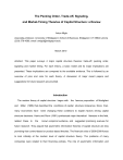 The Pecking Order, Trade-off, Signaling, and Market-Timing Theories of Capital Structure: a Review Anton Miglo Associate professor, University of Bridgeport, School of Business, Bridgeport, CT 06604, phone (203) 576-4366, email: amiglo@bridgeport.edu. March 2010 Abstract. This paper surveys 4 major capital structure theories: trade-off, pecking order, signaling and market timing. For each theory, a basic model and its major implications are presented. These implications are compared to the available evidence. This is followed by an overview of pros and cons for each theory. A discussion of major recent papers and suggestions for future research are provided. Introduction The modern theory of capital structure began with and the famous proposition of Modigliani Miller (1958) that described the conditions of capital structure irrelevance. Since then, many economists have been changing these conditions to explain factors driving capital structure decisions. Harris and Raviv (1991) synthesized major theoretical literature in the field, related these to the known empirical evidence, and suggested promising avenues for future research. They argued that asymmetric information theories of capital structure are less promising than control-based or product-based theories. The financial crisis of 2008-2009 forces to look critically at the modern level of capital structure theory. The problems of many companies were related to their financing policies. The role of asymmetric information and agency problems has to be understood better. The market for mortgage-backed securities which many believe was in the core of financial crisis was full of asymmetric information between investors and issuers. Numerous scandals including the Bernie Madoff’s one illustrate the depth of agency problems in finance. At the same time, old ideas about the link between taxes, bankruptcy costs and capital structure were not receiving enough attention in theoretical literature until recently while managers’ surveys systematically reveal their practical importance. This paper surveys 4 major capital structure theories: trade-off, pecking order, signaling and market timing. These theories are directly related to asymmetric information, agency problems, taxes and bankruptcy costs. After presenting the basic model and basic ideas of each theory we discuss their consistency with observed evidence. We also discuss the main directions of current and future research on capital structure. Briefly, our conclusions are as follows. First, for the last 20 years the trade-off theory and pecking-order theory have been extensively tested. This research revealed an incredible complexity of explaining firms’ behavior by using either theory. Taking separately they are not able to explain some important facts about capital structure. The marginal productivity of this research can be diminished in the future without significant advances in developing new more powerful theoretical models. These can be either dynamic versions of trade-off or pecking-order theory or models combining both those theories. Secondly, after the publication of Baker and Wurgler (2002) the market timing theory had emerged from a relatively “small” argument in the end of 1980s beginning 1990s as a separate popular theory of capital structure. Compared to pecking-order and trade-off theory the theoretical part of this theory is underdeveloped. Thirdly a very popular line of research has emerged which focuses on entrepreneurs’ surveys about real capital structure decisions. Graham and Harvey (2001) found that an immense gap exists between theory and practice. Further surveys can contribute to monitoring this gap and its reduction in the future. Forth, signaling theory of capital structure does not have empirical support regarding some of its core predictions. However, several new directions have emerged opposite to traditional idea of signaling quality through debt issuance. It seems though that more effort is required here in order to create new models which can be considered as comparable to either pecking order or trade-off theory. TRADE-OFF THEORY Basic model, major results and evidence Kraus and Litzenberger (1973) suggest that capital structure reflects a trade-off between the tax benefits of debt and the expected costs of bankruptcy. Consider a firm that generates a random cash flow rate that is uniformly distributed between 0 and . The firm faces a constant tax on corporate income. If the earnings are not enough to cover the promised debt payment , there is a deadweight loss of that is used up in the process. This can include direct bankruptcy costs such as fees paid to lawyers, and indirect bankruptcy costs such as losses due to general lack of confidence in the firm from its customers. If earnings are large enough ( ) equityholders receive market value of debt equals is the probability of default. If 1 . Otherwise, they receive nothing. The . Here the creditors receive if the firm defaults. The market value of equity is the probability that and and they receive on average 1 equals . The firm’s value equals 1 The firm’s choice of leverage is determined by maximizing respect to (1) . The first-order condition with is (2) Expected bankruptcy costs and debt If is higher in (2) the equilibrium level of should be lower. Higher the expected bankruptcy costs are, the more advantages are for equity. This result has several interpretations. Large firms should have more debt since larger firms are more diversified and have lower default risk. Tangible assets suffer a smaller loss of value when firms go into distress. Hence, firms with more tangible assets, for example airplanes manufacturers, should have higher leverage in comparison to companies that have more intangible assets such as research firms. Growth firms lose more of their value when they go into distress. Thus the theory predicts a negative relation between leverage and growth. Empirical studies g