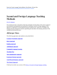 Second and Foreign Language Teaching Methods, Mora Modules, Jill Kerper Mora http://moramodules.com/ALMMethods.htm#The%20Grammar-Translation Second and Foreign Language Teaching Methods ESL-FL Methods This module provides a description of the basic principles and procedures of the most recognized and commonly used approaches and methods for teaching a second or foreign language. Each approach or method has an articulated theoretical orientation and a collection of strategies and learning activities designed to reach the specified goals and achieve the learning outcomes of the teaching and learning processes. Jill Kerper Mora The following approaches and methods are described below: Grammar-Translation Approach Direct Approach Reading Approach Audiolingual Approach Community Language Learning The Silent Way The Communicative Approach Functional Notional Approach Total Physical Response Approach The Natural Approach Click here for a link to an overview of the history of second or foreign language teaching. Theoretical Orientations to L2 Methods & Approaches There are four general orientations among modern second-language methods and approaches: 1. STRUCTURAL/LINGUISTIC: Based on beliefs about the structure of language and descriptive or contrastive linguistics. Involves isolation of grammatical and syntactic elements of L2 taught either deductively or inductively in a predetermined sequence. Often involves much meta-linguistic content or “learning about the language” in order to learn the language. 2. COGNITIVE: Based on theories of learning applied specifically to second language learning. Focus is on the learning strategies that are compatible with the learners own style. L2 content is selected according to concepts and techniques that facilitate generalizations about the language, memorization and “competence” leading to “performance”. 3. AFFECTIVE/INTERPERSONAL: Focuses on the psychological and affective predispositions of the learner that enhance or inhibit learning. Emphasizes interaction among and between teacher and students and the atmosphere of the learning situation as well as students’ motivation for learning. Based on concepts adapted from counseling and social psychology. 4. FUNCTIONAL/COMMUNICATIVE: Based on theories of language acquisition, often referred to as the “natural” approach, and on the use of language for communication. Encompasses multiple aspects of the communicative act, with language structures selected according to their utility in achieving a communicative purpose. Instruction is concerned with the input students receive, comprehension of the “message” of language and student involvement at the students’ level of competence. The Grammar-Translation Approach This approach was historically used in teaching Greek and Latin. The approach was generalized to teaching modern languages. Classes are taught in the students’ mother tongue, with little active use of the target language. Vocabulary is taught in the form of isolated word lists. Elaborate explanations of grammar are always provided. Grammar instruction provides the rules for putting words together; instruction often focuses on the form and inflection of words. Reading of difficult texts is begun early in the course of study. Little attention is paid to the content of texts, which are treated as exercises in grammatical analysis. Often the only drills are exercises in translating disconnected sentences from the target language into the mother tongue, and vice versa. Little or no attention is given to pronunciation. The Direct Approach This approach was developed initially as a reaction to the grammar-translation approach in an attempt to integrate more use of the target language in instruction. Lessons begin with a dialogue using a modern conversational style in the target language. Material is first presented orally with actions or pictures. The mother tongue is NEVER, NEVER used. There is no translation. The preferred type of exercise is a series of questions in the target language based on the dialogue or an anecdotal narrative. Questions are answered in the target language. Grammar is taught inductively–rules are generalized from the practice and experience with the target language. Verbs are used first and systematically conjugated only much later after some oral mastery of the target language. Advanced students read literature for comprehension and pleasure. Literary texts are not analyzed grammatically. The culture associated with the target language is also taught inductively. Culture is considered an important aspect of learning the language. The Reading Approach This approach is selected for practical and academic reasons. For specific uses of the language in graduate or scientific studies. The approach is for people who do not travel abroad for whom reading is the one usable skill in a foreign language. The priority in studying the target language is first, reading ability and second, current and/or historical knowledge of the country where the target language is spoken.Only the grammar necessary for reading comprehension and fluency is taught. Minimal attention is paid to pronunciation or gaining conversational skills in the target language. From the beginning, a great amount of reading is done in L2, both in and out of class. The vocabulary of the early reading passages and texts is strictly controlled for difficulty. Vocabulary is expanded as quickly as possible, since the acquisition of vocabulary is considered more important that grammatical skill.Translation reappears in this approach as a respectable classroom procedure related to comprehension of the written text. The Audiolingual Method This method is based on the principles of behavior psychology. It adapted many of the principles and procedures of the Direct Method, in part as a reaction to the lack of speaking skills of the Reading Approach. New material is presented in the form of a dialogue. Based on the 