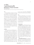 141 บทความฟื้นวิชา การดูแลโรคตับอ่อนอักเสบเรื้อรัง Management of Chronic Pancreatitis ชัยพิชิต พุทธาพิทักษ์พงศ์ แผนกโรคทางเดินอาหารและตับ กองอายุรกรรม โรงพยาบาลพระมงกุฎเกล้า และวิทยาลัยแพทยศาสตร์พระมงกุฎเกล้า บทน�ำ โรคตับอ่อนอักเสบเรื้อรัง คือ ภาวะที่มีการท�ำลายของตับอ่อน อย่างถาวรและไม่สามารถที่จะซ่อมแซมให้กลับมาท�ำงานปกติได้ ซึ่งสุดท้ายท�ำให้เกิดการท�ำงานของต่อมมีท่อและต่อมไร้ท่อเสียไป (exocrine and endocrine insufficiency) จนท�ำให้เกิดอาการ เจ็บป่วยที่น�ำผู้ป่วยมาโรงพยาบาลได้ โดยโรคตับอ่อนอักเสบเรื้อรัง อาจแบ่งแบบกว้างๆ ได้เป็น 3 กลุ่ม คือ โรคตับอ่อนอักเสบเรื้อรัง ที่มีหินปูนเกาะ (chronic calcifying pancreatitis) ซึ่งมักจะ หมายถึงโรคตับอ่อนอักเสบเรื้อรังที่พบบ่อยในเวชปฏิบัติทั่วไป โรค ตับอ่อนอักเสบเรือ้ รังทีเ่ กิดจากการอุดตันของท่อตับอ่อน (chronic obstructive pancreatitis) และโรคตับอ่อนอักเสบที่เกิดจาก ภูมิคุ้มกันตนเอง (chronic autoimmune pancreatitis) เป็น โรคตับอ่อนอักเสบเรื้อรังที่มีลักษณะจ�ำเพาะ ผู้ป่วยมักมาตรวจ ด้วยอาการตัวเหลืองตาเหลืองที่เกิดจากจากอุดตันของท่อน�้ำดี (obstructive jaundice) มากกว่าอาการที่เกิดจากการท�ำงานของ ต่อมมีท่อและต่อมไร้ท่อเสียไป พยาธิก�ำเนิด พยาธิก�ำเนิดของโรคตับอ่อนอักเสบเรื้อรังนั้นยังไม่แน่ชัด มี การเสนอทฤษฎีต่างๆ ของมามากมาย แต่ทฤษฎีที่มีการกล่าวถึง บ่อยในปัจจุบันคือ ทฤษฎี sentinel acute pancreatitis event (SAPE theory)1 ซึ่งเสนอว่าในช่วงเริ่มแรกที่มีตับอ่อนอักเสบ เฉียบพลัน จะมีเซลล์ของการอักเสบออกมามากมายเพื่อมาท�ำลาย ตับอ่อน แต่ในช่วงหลังพอการอักเสบดีขึ้น จะมีเซลล์เข้ามาซ่อมแซม ตับอ่อนที่ถูกท�ำลายไป ซึ่งโดยปกติจะมีการซ่อมแซมอย่างเหมาะ สมจนไม่ท�ำให้เกิดพังผืดขึ้นในตับอ่อน แต่ในผู้ที่ยังมีการกระตุ้น ในเกิดตับอ่อนอักเสบขึ้นซ�้ำๆ เรื่อยเช่น ยังดื่มแอลกอฮอล์เรื่อย หรือสาเหตุที่ท�ำให้เกิดตับอ่อนอักเสบยังไม่ได้รับการแก้ไข หรือใน ผู้ป่วยที่มีความผิดปกติด้านพันธุกรรมบางอย่าง เช่น PRSS1, SPINK1 จะท�ำให้การซ่อมแซมของตับอ่อนเสียไป จนมีการกระตุน้ pancreatic stellate cells ที่มากเกินไป จนท�ำให้เกิดพังผืดใน ตับอ่อนเพิ่มมากขึ้น จนเกิดเป็นโรคตับอ่อนอักเสบเรื้อรังในที่สุด สาเหตุ โรคตับอ่อนอักเสบเรื้อรังเกิดได้จากหลายสาเหตุ ปัจจุบันนิยม แบ่งสาเหตุของโรคตับอ่อนอักเสบเรื้อรังตามระบบ TIGAR-O2 (Table 1) โดยมีการศึกษาในประเทศสหรัฐอเมริกา พบว่าส่วน ใหญ่ของผูป้ ว่ ยโรคตับอ่อนอักเสบเรือ้ รังไม่พบสาเหตุทชี่ ดั เจน (ร้อยละ 42) รองลงมาเกิดจากความผิดปกติทางด้านพันธุกรรม (ร้อยละ 24) ส่วนสาเหตุที่พบน้อยลงมาคือการดื่มแอลกอฮอล