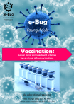 Operated by Public Health England e-Bug Young Adult Vaccinations Lesson plans, worksheets and activities for 15-18 year olds on vaccinations. An educational resource Key Stage 4&5 / Science* * certain sections may also link with the PSHE curriculum e-Bug: Vaccinations Contents This pack contains a series of educational resources for young adults aged 15-18 years on the topic of vaccinations. The resources are outlined below: Vaccination Lesson Plan Teacher sheets…………………………………………………………………….Page 2 Student worksheet 1…………………………………………………………….Page 7 Student worksheet 2…………………………………………………………….Page 10 Teacher answer sheets………………………………………………………….Page 13 Vaccination Animation Teacher information sheet…………………………………………………….Page 22 References……………………………………………………………..………….Page 30 e-Bug Young Adult Contents e-Bug: Vaccinations Lesson Plan Introduction This lesson plan covers immunity and vaccinations, and highlights the importance of getting vaccinated, not just for an individual’s health but for others in the population. Interactive slides help students to clarify common myths and misconceptions about vaccinations. Students learn the impact the media may have on vaccine uptake through the example of the measles, mumps and rubella (MMR) scare in the early 2000s. Learning outcomes o Vaccination helps individuals to develop immunity against an infection(s) and helps to fight off the infection(s) o Why vaccines are important to students now and throughout their life o The important diseases prevented by vaccines, and why these are important to young people, including students o How the media, and epidemics, can affect vaccine uptake positively and negatively Exam specification links This lesson plan covers several topics found in the AQA, OCR, Edexcel and WJEC exam specifications for A-level Biology, Human Biology and related subjects. For more information, please visit the ‘Examination links’ webpage. Key words Antibodies, Antigen, Vaccination, Immunisation, Innate immunity, Acquired immunity, Immune system, Herd immunity Available web resources Animations, interactive slides, PowerPoint presentations and many other resources are available in the young adult vaccination section at www.e-Bug.eu. Materials required Materials required Graph paper for completion of the main activity. e-Bug Young Adult VAC TS1 e-Bug: Vaccinations Lesson Plan Background information Vaccinations have been one of the most effective methods to prevent disease and have helped to lower mortality associated with infectious diseases worldwide. How vaccines provide immunity Vaccines are preventative, that is, they only protect the individual before they get an infectious disease. When an individual is vaccinated, the processes in the immune system that are stimulated to mimic the body’s natural immunity include: antigen recognition, antibody production and formation of a memory response. These processes occur without causing the damage that an infection usually causes because the vaccine contains the antigen of the infectious disease, or a toxoid (an inactive version of a toxin) in an inactive, safe form. These infectious agents have been inactivated by being killed or denatured by heat, radiation or other harmful conditions. The antigen is the same but the microorganism can no longer cause the infectious disease. Vaccines provide immunity by stimulating the immune system to produce antibodies to fight a particular infection or prevent the effects of a toxin. These antibodies stay in the body and provide long term protection. Antibodies fight a particular infection or toxin by identifying a matching antigen. Antigens are a pattern or structure found on the microorganism or toxin, and the antigen is a complimentary match for the antibody that will be produced. Types of immunity If an individual has not been vaccinated against a disease and they have contact with it, they will usually acquire some natural active immunity through exposure to antigens of the microorganism or toxin. However, there are risks associated with contracting an infection as some can leave the individual with long term complications, or worse, cause death. Artificial active immunity occurs through vaccination or inoculation. Passive immunity arises through acquisition of protective antibodies (most commonly through injection or transfusion of blood products) that will help fight the infection without the individual having had exposure to the infection or having been vaccinated. Natural passive immunity can also occur between mum and baby through the placenta during pregnancy or through breast feeding. In some cases, passive immunity can be artificially acquired through the transfer of antibodies from other humans or animals into an individual’s bloodstream. Passive immunity is used when there is no time for an individual to generate their own specific antibodies to microorganisms. An example of this is after a gardening injury when there is a danger of tetanus, so a tetanus anti-toxin is given to those who have never had the tetanus vaccination. e-Bug Young Adult VAC TS2 e-Bug: Vaccinations Lesson Plan Herd Immunity If enough of a population is vaccinated, herd immunity is attained. Herd immunity in a population prevents outbreaks of an infection. This is due to the inability for the disease to infect vaccinated individuals and through the inability for unvaccinated individuals to come into contact with the disease due to its decreased prevalence. It is important to maintain herd immunity as some people are unable to have vaccinations. Individuals who may not be able to have a vaccine include those who are immune-compromised, individuals with allergies to the components of vac