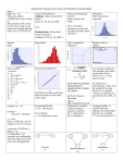 Important Concepts not on the AP Statistics Formula Sheet Part I: IQR = Q3 – Q1 Test for an outlier: 1.5(IQR) above Q3 or below Q1 The calculator will run the test for you as long as you choose the boxplot with the oulier on it in STATPLOT Linear transformation: Addition: affects center NOT spread adds to , M, Q1 , Q3, IQR When describing data: describe center, spread, and shape. not σ Give a 5 number summary or mean and standard deviation when necessary. Multiplication: affects both center and spread multiplies , M, Q1 , Q3, IQR, σ skewed right Skewed left Stem and leaf Normal Probability Plot The 80th percentile means that 80% of the data is below that observation. residual = residual = observed – predicted y = a+bx Slope of LSRL(b): rate of change in y for every unit x y-intercept of LSRL(a): y when x = 0 Confounding: two variables are confounded when the effects of an RV cannot be distinguished. Exponential Model: y = abx take log of y Power Model: y = axb take log of x and y Ogive (cumulative frequency) Histogram: fairly symmetrical unimodal Boxplot (with an outlier) r: correlation coefficient, The strength of the linear relationship of data. Close to 1 or -1 is very close to linear HOW MANY STANDARD DEVIATIONS AN OBSERVATION IS FROM THE MEAN 68-95-99.7 Rule for Normality N(µ,σ) N(0,1) Standard Normal Explanatory variables explain changes in response variables. EV: x, independent RV: y, dependent r2: coefficient of determination. How well the model fits the data. Close to 1 is a good fit. “Percent of variation in y described by the LSRL on x” Lurking Variable: A variable that may influence the relationship bewteen two variables. LV is not among the EV’s Regression in a Nutshell Given a Set of Data: Enter Data into L1 and L2 and run 8:Linreg(a+bx) The regression equation is: predicted fat gain 3.5051 0.00344( NEA) y-intercept: Predicted fat gain is 3.5051 kilograms when NEA is zero. slope: Predicted fat gain decreases by .00344 for every unit increase in NEA. r: correlation coefficient r = - 0.778 Moderate, negative correlation between NEA and fat gain. r2: coefficient of determination r2 = 0.606 60.6% of the variation in fat gained is explained by the Least Squares Regression line on NEA. The linear model is a moderate/reasonable fit to the data. It is not strong. The residual plot shows that the model is a reasonable fit; there is not a bend or curve, There is approximately the same amount of points above and below the line. There is No fan shape to the plot. Predict the fat gain that corresponds to a NEA of 600. predicted fat gain 3.5051 0.00344(600) predicted fat gain 1.4411 Would you be willing to predict the fat gain of a person with NEA of 1000? No, this is extrapolation, it is outside the range of our data set. Residual: observed y - predicted y Find the residual for an NEA of 473 First find the predicted value of 473: predicted fat gain 3.5051 0.00344(473) predicted fat gain 1.87798 observed – predicted = 1.7 - 1.87798 = -0.17798 Transforming Exponential Data y = abx Transforming Power Data y = axb Take the log or ln of y. Take the log or ln of x and y. The new regression equation is: log(y) = a + bx The new regression equation is: log(y) = a + b log(x) Residual Plot examples: Linear mode is a Good Fit Curved Model would be a good fit Fan shape loses accuracy as x increases Inference with Regression Output: Construct a 95% Confidence interval for the slope of the LSRL of IQ on cry count for the 20 babies in the study. Formula: df = n – 2 = 20 – 2 = 18 b t *SEb 1.4929 (2.101)(0.4870) 1.4929 1.0232 (0.4697, 2.5161) Find the t-test statistic and p-value for the effect cry count has on IQ. From the regression analysis t = 3.07 and p = 0.004 Or t b 1.4929 3.07 SEb 0.4870 s = 17.50 This is the standard deviation of the residuals and is a measure of the average spread of the deviations from the LSRL. Part II: Designing Experiments and Collecting Data: Sampling Methods: The Bad: Voluntary sample. A voluntary sample is made up of people who decide for themselves to be in the survey. Example: Online poll Convenience sample. A convenience sample is made up of people who are easy to reach. Example: interview people at the mall, or in the cafeteria because it is an easy place to reach people. The Good: Simple random sampling. Simple random sampling refers to a method in which all possible samples of n objects are equally likely to occur. Example: assign a number 1-100 to all members of a population of size 100. One number is selected at a time from a list of random digits or using a random number generator. The first 10 selected without repeats are the sample. Stratified sampling. With stratified sampling, the population is divided into groups, based on some characteristic. Then, within each group, a SRS is taken. In stratified sampling, the groups are called strata. Example: For a national survey we divide the population into groups or strata, based on geography - north, east, south, and west. Then, within each stratum, we might randomly select survey respondents. Cluster sampling. With cluster sampling, every member of the population is assigned to one, and only one, group. Each group is called a cluster. A sample of clusters is chosen using a SRS. Only individuals within sampled clusters are surveyed. Example: Randomly choose high schools in the country and only survey people in those schools. Difference between cluster sampling and stratified sampling. With stratified sampling, the sample includes subjects from each stratum. With cluster sampling the sample includes subjects only from sampled clusters. Multistage sampling. With multistage sampling, we select a sample by using combinations of different sampling methods. Example: Stage 1, use cluster sampling to choose clusters from a population. Then, in Stage 2, we use simple random sampling to select a subset of subjects from each chosen cluster for the final sample. Systematic random sampling. With systematic ra