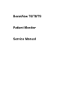 BeneView T6/T8/T9 Patient Monitor Service Manual Intellectual Property Statement SHENZHEN MINDRAY BIO-MEDICAL ELECTRONICS CO., LTD. (hereinafter called Mindray) owns the intellectual property rights to this product and this manual. This manual may refer to information protected by copyrights or patents and does not convey any license under the patent rights of Mindray, nor the rights of others. Mindray does not assume any liability arising out of any infringements of patents or other rights of third parties. Mindray intends to maintain the contents of this manual as confidential information. Disclosure of the information in this manual in any manner whatsoever without the written permission of Mindray is strictly forbidden. Release, amendment, reproduction, distribution, rent, adaption and translation of this manual in any manner whatsoever without the written permission of Mindray is strictly forbidden. , , and are the registered trademarks or trademarks owned by Mindray in China and other countries. All other trademarks that appear in this manual are used only for editorial purposes without the intention of improperly using them. They are the property of their respective owners. Contents of this manual are subject to changes without prior notice. Revision History This manual has a revision number. This revision number changes whenever the manual is updated due to software or technical specification change. Contents of this manual are subject to change without prior notice. Revision number: 13.0 Release time: April, 2016 © 2006-2016 Shenzhen Mindray Bio-Medical Electronics Co., Ltd. All rights reserved. I Preface Manual Purpose This manual provides detailed information about the assembling, dissembling, testing and troubleshooting of the equipment to support effective troubleshooting and repair. It is not intended to be a comprehensive, in-depth explanation of the product architecture or technical implementation. Observance of the manual is a prerequisite for proper equipment maintenance and prevents equipment damage and personnel injury. This manual is based on the maximum configuration; Therefore, some contents may not apply to your monitor. If you have any question, please contact our Customer Service Department. Intended Audience This manual is for biomedical engineers, authorized technicians or service representatives responsible for troubleshooting, repairing and maintaining the patient monitors. II Abbreviations Abbreviations used in this manual are: MPM multi-parameter module SMR satellite module rack CMS central monitoring system PCB printed circuit board Passwords A password may be required to access different modes within the monitor. The passwords are listed below: User maintenance: 888888 (User adjustable) Factory maintenance: 332888 Demo mode: 2088 Configuration mode: 315666 (User adjustable) iView login: MINDRAY NOTE z When log in iView system and input the password, connect the keyboard to the special USB connector for iView system. III FOR YOUR NOTES IV Contents 1 Safety ................................................................................................................................. 1-1 1.1 Safety Information .......................................................................................................... 1-1 1.1.1 DANGER ........................................................................................................... 1-2 1.1.2 Warnings............................................................................................................. 1-2 1.1.3 Cautions ............................................................................................................. 1-2 1.1.4 Notes .................................................................................................................. 1-3 1.2 Equipment Symbols ........................................................................................................ 1-3 2 Theory of Operation ........................................................................................................ 2-1 2.1 Introduction..................................................................................................................... 2-1 2.2 System Connections ........................................................................................................ 2-2 2.2.1 Mounting the Patient Monitor ............................................................................ 2-2 2.2.2 Connectors for Peripheral Devices..................................................................... 2-3 2.3 Main Unit ........................................................................................................................ 2-4 2.3.1 Input System ...................................................................................................... 2-5 2.3.2 Output System.................................................................................................... 2-6 2.3.3 Processing and Communications System........................................................... 2-7 2.3.4 Power Management System ............................................................................... 2-9 2.3.5 Equipment Interface System ............................................................................ 2-13 2.4 Parameter Module ......................................................................................................... 2-15 2.4.1 Module Infrared Communication Board .......................................................... 2-15 2.4.2 Module Power Board ....................................................................................... 2-15 2.4.3 Parameter Board............................................................................................... 2-15 2.5 Satellite Module Rack ................................................................................................... 2-16 2.6 BeneLink Module.............................................................