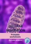 CELLULAR RESPIRATION Printable worksheets (include answers) CELLULAR RESPIRATION 1. (a) Fill in the missing words: Cellular respira�on is the process by which all living things - plants, animals, fungi, pro�sts and bacteria - create energy in the form of ________________. This involves the breaking down of __________________, a complex organic molecule, into __________________ __________________ and __________________, releasing energy. The complete breakdown of __________________ also requires __________________. (b) Complete the following cellular respira�on equa�on: C6H12O6 + ___O2 ___CO2 + ___H2O (+ 30 ATP) 2. Cellular respira�on occurs in three stages: glycolysis, Krebs cycle and electron transport. Glycolysis, which occurs in the cell cytosol, can be summarised as follows: Glucose NAD ADP + Pi Hydrogen (energy) gy) (ener ATP NADH pyruvate (a) On the diagram, highlight the (i) inputs and (ii) outputs of glycolysis using two different colours. (b) What appears to be the role of the molecule NAD? _________________________________________________________________________________ (c) Which important requirement of cellular respira�on does not take part in glycolysis? _________________________________________________________________________________ 3. The second stage of cellular respira�on, Krebs cycle, which occurs in the matrix of the mitochondria, can be summarised as follows: pyruvate NAD ADP + Pi Hydrogen rgy) (ene gy) (ener Hydrogen FAD ) gy (ener NADH ATP FADH2 Carbondioxide © Ac�ve Science (a) On the diagram, highlight the (i) inputs and (ii) outputs of the Krebs cycle, using two different colours. (b) The Krebs cycle involves not one, but two ‘carrier’ molecules. Name these molecules and state their role. _________________________________________________________________________________ _________________________________________________________________________________ (c) By the end of the Krebs cycle, which product of cellular respira�on is yet to be produced? _________________________________________________________________________________ 4. The third stage of cellular respira�on, electron transport, which occurs on the inner membranes of the mitochondria, can be summarised as follows: NADH eH+ ADP + Pi FADH2 FAD ed (accept by) NAD electron transport chain Water O2- (energy ) ATP oxygen (a) On the diagram, highlight the (i) inputs and (ii) outputs of the electron transport stage, using two different colours. (b) According to the diagram, what happens to the hydrogen atoms released by NADH and FADH2? _________________________________________________________________________________ (c) Explain how water is produced during electron transport. _________________________________________________________________________________ _________________________________________________________________________________ _________________________________________________________________________________ (d) Lots of ATP is made during the electron transport stage of cellular respira�on, a process that requires energy. Where does this energy come from? _________________________________________________________________________________ _________________________________________________________________________________ © Ac�ve Science 5. The following diagram shows the structure of a mitochondrion: 1. ____________________ 2. ____________________ 3. ____________________ 6. ____________________ 5. ____________________ 4. ____________________ (a) Label the structures 1 - 6. (b) Explain how the structure of a mitochondrion makes it well suited to its func�on. _________________________________________________________________________________ _________________________________________________________________________________ _________________________________________________________________________________ 6. (a) Oxygen is a ‘limi�ng factor’ in the process of cellular respira�on. Explain this statement. _________________________________________________________________________________ _________________________________________________________________________________ (b) Name two other factors that can limit cellular respira�on. _________________________________________________________________________________ 7. Like chloroplasts, mitochondria are also believed to have once been free-living microbes that were engulfed by a host cell in the process of endosymbiosis. What is the evidence for this? _________________________________________________________________________________ _________________________________________________________________________________ _________________________________________________________________________________ 8. True or False? (a) (b) (c) (d) (e) © Ac�ve Science Cellular respira�on is an endergonic process. Cellular respira�on can be aerobic or anaerobic. Glycolysis is an aerobic process. About 60% of the chemical energy of glucose is transferred to ATP, while the rest is lost as heat. The folds in a mitochondrion’s inner membrane are known as ‘cristae’. ANAEROBIC RESPIRATION 1. Fill in the missing words: Environments where there is a complete absence of oxygen, such as the deep ocean, can be described as __________________. Organisms that live in these sorts of environments cannot carry out aerobic respira�on, but must instead rely on __________________ __________________. For some organisms, such as certain microbes, oxygen is actually toxic; these organisms are termed __________________ __________________. Other organisms, known as __________________ __________________, are able to survive whether oxygen is present or not and can switch from __________________ to __________________ respira�on. When glucose is broken down in the absence of oxygen, only __________________ _________________ can occur. This type of cellular respira�on produces much less ______________ energy than ________________ respira�on, but it produces it more 