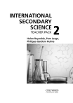INTERNATIONAL SECONDARY SCIENCE TEACHER PACK 2 Helen Reynolds, Pam Large, Philippa Gardom Hulme 1 Introduction How to use your Teacher Pack Welcome to your International Secondary Science 2 Teacher Pack. This Teacher Pack has been written to provide teaching materials and classroom support. Your Teacher Pack includes a book of lesson plans as well as answers to all of the Student Book and Workbook questions for your reference at any time. The accompanying CD-ROM includes a wide variety of additional resources to support you and your students in the classroom. Using your book This book contains suggested lesson plans and answers to all of the questions in the Student Book and Workbook. States of matter Lesson 2 6.2 Explaining diffusion States of matter Lesson 3 Lesson plan 6.3 Extension: explaining density CD resources n Worksheet 6.2.1 n Worksheet 6.2.2 Objectives • • Use the particle theory to explain diffusion Describe evidence for diffusion Lesson plan Student book, pages 68–69 Student book, pages 66–67 CD resources n Worksheet 6.3.1 n Worksheet 6.3.2 Objectives • • Use a formula to calculate density Explain why different substances have different densities Overview Overview This lesson introduces the idea of diffusion as the random movement and mixing of particles. The lesson begins with a short demonstration in which students use their sense of smell to detect diffusion. Students then investigate the effect of temperature on the speed of diffusion of potassium manganate(vii) in water. Finally, there is a demonstration to show the diffusion of ammonia and hydrogen chloride. By the end of the lesson students should know that diffusion happens faster at higher temperatures, and that big, heavy particles diffuse more slowly than smaller, lighter particles. The lesson begins with a practical introduction to density – which of two identically-sized bags has the greater mass? Students then measure the mass and volume of various objects and calculate the density of the materials they are made from. The lesson finishes with a group task, in which student pairs find out about how the closeness of particles, and particle mass, can be used to explain density. Groups then produce posters to display their learning. Activities • • Place an item with a strong smell, for example air freshener, at the front. Students raise their hands when they detect the smell. A few students act out what they think happens to the particles. Discuss the role play as a class. Tell students that diffusion – the random movement and mixing of particles – has occurred. Quickly demonstrate the diffusion of potassium manganate(vii) in water. Students then plan and carry out an investigation to find out about the effect of water temperature on the speed of diffusion. Worksheets 6.2.1 and 6.2.2 support this activity. Demonstrate the diffusion of ammonia and hydrogen chloride along a long tube, as on Student book page 66. Explain that ammonium chloride forms at the hydrogen chloride end because hydrogen chloride particles are bigger and heavier than ammonia particles, so diffuse more slowly. For detailed instructions, see www.nuffieldfoundation.org/practical-chemistry and search for diffusion. Activities • • • • Give two students identical bags. One is filled with heavy books, the other with lightly screwed-up paper. Which is heavier? Can students explain why? Tell students the heavier bag has the greater density. Density is how heavy something is for its size. Students measure the mass and volume of objects made from different materials, and calculate their densities. Include objects with cuboid shapes, so that students can calculate their volumes by measuring the lengths of their sides; also include objects with other shapes so that students can find their volumes by immersing in water in a measuring cylinder. Worksheet 6.3.1 supports this activity. Student pairs find out about one factor that affects density – either particle mass, or how closely the particles are packed. Pairs plan how to teach other pairs what they have learnt. Worksheet 6.3.2 and page 69 in the Student book support this activity. Pairs come together in fours, and teach each other about the factors that affect density. They summarise what they have learnt on a poster. Worksheet 6.3.2 supports this activity. Homework Extension Workbook page 28 Students read about the work of al-Biruni in the Student book, and further research his work on the Internet. Key words diffusion, temperature, particle size, particle mass Homework Workbook page 29 Key words density, mass, volume, particle size 28 1 © Oxford University Press 2013: this may be reproduced for class use solely for the purchaser’s institute © Oxford University Press 2013: this may be reproduced for class use solely for the purchaser’s institute 1 29 There is one lesson plan for every spread in the Student Book, including enquiry and extension pages. Each lesson plan suggests activities for use in the classroom linked to the topics covered on the Student Book spread. Each lesson plan begins with a reference to the pages of the Student Book that it covers and a summary of their objectives. Any key words from the Student Book pages are included at the bottom of the page. The Overview section of the lesson plan reviews what the suggested activities will cover to fulfil the learning objectives. Here you will also find advice and tips about common misconceptions, what you may need to review from the Cambridge Primary curriculum framework or previous lessons, and suggested questions for a class discussion. The Activities section of the lesson plan lists several different activities that can be used in the classroom. These activities include fun and engaging demonstrations, interesting practical ideas, group work suggestions, reading and research activities, and ways to explore a novel topic using models, class discussions or Internet research. Lesson plans that are matche