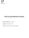 Chin-Up Specialization Program Macrocycle Duration: 12-16 Weeks Frequency: 4 sessions per week Goal: From 0 Chin-Ups to 6+ Reps at bodyweight Weekly Split For the entire 12-16 weeks of the macrocycle, follow the weekly split presented in the table below. Day 1 Day 2 Day 3 Day 4 Day 5 Day 6 Day 7 Upper 1 Lower 1 Off Upper 2 Lower 2 Off Off In this program, only upper body training days are presented since this is a Chin-Up specialization program. Lower Body Training Guidelines: ● You can continue to do your usual lower body sessions ● Keep the lower body sessions at RPE 6 to avoid the buildup of systemic fatigue that can prolong the recovery process and might negatively affect upper body sessions ● Decrease lower body volume about 20-30% to accommodate for more energy reserve for upper body training sessions ● Decrease the stress on shoulders in lower body sessions by replacing the straight bar in exercises such as back squats, good morning etc. to the safety bar if possible. Alternatively, you can choose other variations such as belt squat etc. to allow shoulders to recover from the higher volume of training from upper body sessions. Grip Training On Lower Body Days You can pick from the exercises on the list below to do on lower body days. Just make sure that every training session during the week using a different variation. For holding/pinching exercises, we recommend sets of 20-30s done in 1-6 reps. For dynamic exercises, we recommend sets of 12-15 reps. Pinch Block - Small - One Arm Pinch Block - Medium - One Arm Pinch Block - Large - One Arm Farmer’s Walk Captains of Crush Pinch - DB - One Arm Pinch - Plates - One Arm Pinch Hub - One-Arm Active Hang - Bar - Medium Grip - Pronated Active Hang - Bar - Wide Grip - Pronated Active Hang - Rope Hold - BB By Side - Thick Grip - One Arm How to read the program: Exercise Order Exercises for each block of a training session are categorized by letters such as A,B,C,D. A series are the primary exercises of the session, B series are the assistance exercises, and C and D series are the remedial exercises. Example: A1) Overhead Press - Standing - BB - Medium Grip - Pronated 4 x 6-8 / 40X0 / 120s A2) Chin Up - Medium Grip - Neutral 4 x 6-8 / 4010 / 120s The exercises here belong to the A series and are done in a circuit fashion. You do 1 set of A1, rest 120 seconds, then do a set of A2, rest 120 seconds, go back to A1. You go back and forth until all 4 sets are done then move to the next block of the session. If you only see a letter without any numbers such as the following: A) Active Hang 2 x As Long As Possible / 60s In this case, you do one set of A, rest 60 seconds, and you do another set. You do all the sets of the exercise before moving on to the next block. Sets x Reps For every exercises, sets and reps are written in this manner: Sets x Reps Based on the example above 4 x 6-8, that means 4 sets of 6-8 repetitions. Tempo Tempo is written in a 4-digit format such as 4010. The first digit is the eccentric phase. The second digit is the pause after the eccentric phase. The third digit is the concentric phase. The fourth digit is the pause of the concentric phase. For example, Chin Ups done with 4010 means: Go up 1 second, no pause at the top, lower in 4 seconds, no pause at the bottom. Rest Period This is the last section of the loading parameters. For example: Chin Up - Medium Grip Neutral 4 x 6-8 / 4010 / 120s The rest period is shown in S (seconds). How to load the exercises A Series Primary Exercises: In this program, A1 is always a pressing variation. You should select a weight that allows for excellent form for all the reps without too much grinding. For a beginner, I recommend to leave at least 1-2 reps in the tank for A1 exercises. If the set calls for 10-12 reps, you want to choose a load that you could do 12 reps with good form while leaving 1-2 reps in the tank. Since there are multiple sets during the workout, due to residual fatigue, the subsequent sets will be slightly more challenging. For every set, make sure the load allows you to stay within the rep range prescribed. This takes a few sets during the specific warm-up to figure out the right load. B Series Secondary Exercises: The B series are generally less complex and done at lower intensity (higher reps) in comparison to the A series. As a result, you can push slightly harder on these exercises and take them to failure or close to failure. Make sure you select the appropriate load to stay within the rep range for every set. C and D Series Remedial Exercises: The C & D series are isolation exercises that improve structural balance and emphasize smaller body parts. When working areas such as rotator cuffs, lower traps and neck, there is no need for them to go to failure. Sub-maximal loading is what I recommend here. In practical terms, you can leave 3-4 reps in the tank. On the other hand, when working on body parts such as arms, forearms, deltoid and pecs, you can take them close to failure or failure. These are low-load exercises and much less complex as opposed to A and B series. Therefore, you can push them more. When to Increase load Whenever you can do the highest rep of the rep range with the same load for all sets of the training session,you increase the load by 2-3%. Example: 4 x 6-8 Set 1: 60 kg x 8 Set 2: 60 kg x 7 Set 3: 60 kg x 6 Set 4: 60 kg x 6 In this case, you do not increase the load until you can do 4 sets of 8 reps @ 60 kg. Once you reach there, the next session you add 2-3% and repeat the process. Warm Up Guidelines: Warm up consists of two blocks: General & Specific General Warm Up: In this section, you can include movement preparation drills such as the mobility drills you learned in this course as well as general strength exercises that engage the same muscles that will be trained in the session. For example, If the session calls for: A1) Overhead Press - Standing - BB - Medium Grip - Pronated 4 x 8-10 / 4010 / 120s A2) Chin Up - Medium Grip 