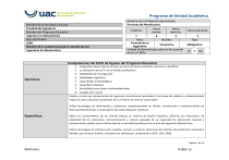 Programa de Unidad Académica Nombre de la Facultad o Escuela Facultad de Ingeniería Nombre del Programa Educativo Ingeniero en Mecatrónica Plan de Estudio: 2009 Nombre de la academia(s) que lo aprobó (aron): Ingeniería En Mecatrónica Nombre de la Unidad de Aprendizaje: Procesos de Manufactura Créditos: Horas totales: Horas teóricas: 7 6 3 Área: Núcleo: Ciencias de la Sustantiva Ingeniería Unidad de Aprendizaje práctica de acuerdo al art. 57 RGA : Horas prácticas: 3 Tipo: Obligatoria Si: x No: Competencias del Perfil de Egreso del Programa Educativo Genéricas 1. Integradora Desarrollo de la lecto-escritura de textos artísticos, técnicos y científicos. 2. La utilización de las TIC en el ámbito profesional 3. Habilidades de investigación 4. Habilidades cognitivas 5. Capacidades metodológicas 6. Capacidad individual 7. Sensibilidad para temas medioambientales 8. Cuidado de la salud. Diseña y construye componentes de ingeniería mecatrónica orientados a las áreas de robótica y automatización industrial, para solucionar problemas de su entorno de manera sustentable. Utiliza tecnologías de información y asistencias computacionales en diseño, construcción e implementación de Sistemas Mecatrónicos y de proyectos de automatización industrial. Específicas Aplica los conocimientos de las ciencias básicas en materia de diseño mecánico, eléctrico y/o electrónico, de propiedad de los materiales, instrumentación y control, apoyado de su capacidad de abstracción espacial y representación gráfica para el desarrollo de su actividad profesional en el área de Ingeniería Mecatrónica. Utiliza tecnologías de software para modelar, simular y construir soluciones de sistemas de producción avanzada y flexible, que incluyan diseño y manufactura asistida por computadora (CAD, CIM, CAM). Página 1 de 16 R00/2014 R-DES-15 Programa de Unidad Académica Nombre de la Unidad de Aprendizaje: Procesos de Manufactura Nombre de la Facultad o Escuela Facultad de Ingeniería Nombre del Programa Educativo Ingeniero en Mecatrónica Plan de Estudio: 2009 Nombre de la academia(s) que lo aprobó (aron): Ingeniería En Mecatrónica Créditos: Horas totales: Horas teóricas: 7 6 3 Área: Núcleo: Ciencias de la Sustantiva Ingeniería Unidad de Aprendizaje práctica de acuerdo al art. 57 RGA : Horas prácticas: 3 Tipo: Obligatoria Si: x No: Competencias del área de formación Competencia de la Unidad de Aprendizaje Obtendrá la habilidad para analizar, desarrollar y fabricar, los diversos elementos empleados en los equipos instalados en la industria, caracterizándolos mediante balances de masa y energía, evaluando cuantitativamente su desempeño. Sub-competencia 1. Obtendrá teórica y prácticamente los conceptos y leyes fundamentales para analizar los diferentes procedimientos de los procesos de manufactura. Actividades Sesiones Temas 1.- Generalidades Subtemas 1.- Conocerá el funcionamiento de las diversas máquinas y herramientas, así como su finalidad y aplicación, 24 2.- Clasificación general de las máquinas herramientas Máquinas Convencionales. Máquinas no convencionales Bibliografía Docente Presenta un panorama general sobre las máquinas herramientas. Hace una comparación de las máquinas convencionales, no convencionales y máquinas CNC. Alumno Investigo acerca de las máquinasherramientas. Comparo las ventajas de cada una de las tecnologías que giran alrededor de las máquinas- TECNOLOGIA DE LAS MAQUINAS HERRAMIENTAS Krar/ Chek Edit. Alfaomega 2002 Materiales y procesos de Manufactura Nelly Edit. Limusa Página 2 de 16 R00/2014 R-DES-15 Programa de Unidad Académica Nombre de la Facultad o Escuela Facultad de Ingeniería Nombre del Programa Educativo Ingeniero en Mecatrónica Plan de Estudio: 2009 Nombre de la academia(s) que lo aprobó (aron): Ingeniería En Mecatrónica Nombre de la Unidad de Aprendizaje: Procesos de Manufactura Créditos: Horas totales: Horas teóricas: 7 6 3 Área: Núcleo: Ciencias de la Sustantiva Ingeniería Unidad de Aprendizaje práctica de acuerdo al art. 57 RGA : herramientas. Máquinas CNC Ventajas y desventajas de cada una de las máquinasherramientas. Ilustra las ventajas y desventajas de cada una de las tecnologías aplicada a las máquinas herramientas. Diferencio cada una de las máquinas convencionales, no convencionales y máquinas CNC. Horas prácticas: 3 Tipo: Obligatoria Si: x No: TECNOLOGÍA DE LOS OFICIOS METALÚRGICOS, A. Leyensetter Desarrollo de Práctica1 Página 3 de 16 R00/2014 R-DES-15 Programa de Unidad Académica Nombre de la Unidad de Aprendizaje: Procesos de Manufactura Nombre de la Facultad o Escuela Facultad de Ingeniería Nombre del Programa Educativo Ingeniero en Mecatrónica Plan de Estudio: 2009 Nombre de la academia(s) que lo aprobó (aron): Ingeniería En Mecatrónica Créditos: Horas teóricas: 7 6 3 Área: Núcleo: Ciencias de la Sustantiva Ingeniería Unidad de Aprendizaje práctica de acuerdo al art. 57 RGA : Evaluación Criterios Evidencias Ponderación Congruencia de los mapas mentales Presentación de los mapas mentales Solución de problemas y ejercicios. 20 % Prácticas de laboratorio o campo (Portafolio de Practicas) 80 % Estructura, congruencia y retroalimentación de la autoevaluación del proyecto Horas totales: Ponderación de la SubCompetenc ia 20% Ambiente de trabajo o aprendizaje Horas prácticas: 3 Tipo: Obligatoria Si: x No: Materiales y recursos didácticos •Salón de clases • Pintarrón y plumones •Taller maquinas herramientas •Video proyector •Apuntes del profesor •Material impreso •Video-proyector Página 4 de 16 R00/2014 R-DES-15 Programa de Unidad Académica Nombre de la Unidad de Aprendizaje: Procesos de Manufactura Nombre de la Facultad o Escuela Facultad de Ingeniería Nombre del Programa Educativo Ingeniero en Mecatrónica Plan de Estudio: 2009 Nombre de la academia(s) que lo aprobó (aron): Ingeniería En Mecatrónica Créditos: Horas totales: Horas teóricas: 7