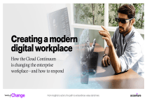 Creating a modern digital workplace How the Cloud Continuum is changing the enterprise workplace—and how to respond Creating a modern digital workplace From insights to action, the path to extraordinary value starts here. 1 The enterprise workplace has permanently changed The way people use and interact with physical and digital spaces at work has been evolving for years. In fact, the impact of digital technology on the workplace is a story, decades in the making. But what’s changed recently is the growth of the cloud. Enterprises have recognized the efficiency, scalability, resilience, and performance that platforms like Microsoft 365 and Google Workspace bring—and they’ve migrated their workspaces accordingly. This cloudification of the workplace is by no means finished. But as enterprises adapt their infrastructure strategies for the emerging Cloud Continuum, it’s both accelerating and becoming more complex. In particular, companies are challenged to not only implement these continuously evolving cloud platforms, but also to ensure the whole business can actually use their full capabilities to drive growth and innovation. Creating a modern digital workplace Success in the Continuum isn’t about simply doing the same old things on a new cloud platform—it’s about rethinking what you do, as well as how you do it. 2 A giant experiment in “anywhere, everywhere” working Creating a modern digital workplace 3 Of course, no-one can ignore the other great recent driver of change in the workplace: the COVID-19 pandemic. The disruption it caused forced the world into a giant experiment in remote working. And an omnichannel or hybrid way of working has emerged. Some organizations have adapted quickly, particularly those who had the foresight to adopt the flexibility of the cloud early on. Others are still figuring out how to enable their people to connect and work from everywhere and anywhere. This isn’t only driving a more technology-enabled way of working; it’s also impacting the way organizations build and sustain a coherent culture. Even in a part-remote, part-office based workplace model, employees won’t be reconnecting with enterprise culture in a physical sense like they used to. For many workers, the primary interface to the enterprise culture is now their screen. It’s a genuinely radical shift that most organizations have only started to think through. Creating a modern digital workplace 4 Workplace, workspace, workforce: How should enterprises respond? A good way to think about responding to these dramatic changes is to consider the question in three interrelated parts: the human, the physical, and the digital. In other words, you need to think about both the digital and the physical spaces the enterprise has (the workspace and the workplace), as well as the people who use them (the workforce). Creating a modern digital workplace 5 01 The changing workplace: bringing automation to the masses The Cloud Continuum offers enterprises a step change in compute power, data storage, insight generation, and information accessibility. The challenge? To find a way to bring all this together in a way that works for employees in their day-to-day activities. It’s about empowering them with the right tools and insights at the right time, in the right way, via the right devices and platforms. Automation for the people One of the most effective ways of doing this can be to give more of the levers of control to individuals themselves. For example, there are now a range of low-code/no-code platforms that democratize the digital enterprise, enabling workers to augment their own decision-making, automate their own processes, or solve their own business problems with data. This puts the power of automation and data insight in the hands of the people who can ultimately make best use of it, at the moment they most need it. It’s true that not every worker has the skills to use these platforms from the get-go, and business leaders need to consider training and upskilling programs to get the most from them. Process improvement as a service Another option is to consider “process improvement as a service.” In this model, the enterprise uses a centralized hub of process improvement talent (either internally or from an external provider) to help teams and individuals solve their unique business challenges. A good example is Microsoft Avanade’s productivity studio concept. Here, a cadre of specialized process improvement experts help the business create new solutions to specific problems, which can then be spun off and reused elsewhere in the organization. Creating a modern digital workplace 7 The integrated digital workplace Any response to the Continuum should also consider workplace integration. Even today, workers frequently have to deal with a fragmented environment, with dozens of siloed solutions used for different daily activities. Leading organizations are rethinking this, however. They’re starting to build intelligently designed systems that give a worker what they need, when they need it. So, instead of having to go to 20 different applications to do their job, they can access the tools they need through their primary environment, whatever that may be (email, Microsoft Teams, or any other enterprise workspace). It’s about instrumenting the workplace to allow work to happen in a more integrated way. But there’s no denying the trade-off between an integrated platform and a best-of-breed point solution. Best-of-breed solutions may be ideal, but they won’t necessarily bring together everything workers need for their jobs. There’s no simple answer to this. It’s a balance between having a narrow solution that’s exceptional at what it does versus an integrated platform that’s good enough but brings everything together. Creating a modern digital workplace Interventions don’t have to be radical to be effective. Accenture worked with executive leaders in one healt