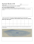 1 Human Body Unit Name:___________________ (Do Not Lose!) Due:____________________ ◊ Please check-off all of the diamonds upon completion. Part I: Levels of Biological Organization ◊ Please find an object that demonstrates FFF? (Form Follows Function) ◊ Please sketch this object and then describe in detail how its shape allows it to perform a function. ◊ Make a quick sketch of the levels of biological organization in the boxes below. ◊ Please label each box. -Word Bank: Cellular Organelle, Molecule, Cell, Tissue, Individual, Organ, Atom, Organ System, ◊ Please tell me four things about the picture below? ◊ Why is this picture important to the human body? 2 ◊ Name four different types of cells found in the human body 1.) 2.) 3.) 4.) ◊ Name three different types of tissues found in the human body 1.) 2.) 3.) ◊ Draw a body tissue in this box Write down the names of four organs in the human body in the spaces below. The last letter of number 1 must be the first letter of number 2, and so on. Match the last letter of the organ to the first of the next. ______________ __________________ _________________ ________________ ◊ Please describe a few ways your body maintains homeostasis with your environment. 3 Part II: Skeletal System ◊ Please record four roles of the skeletal system on or around the skull below. ◊ Please use the picture below to describe the two types of bones. ◊ Can you mention anything about the words Y e l l o w RED Long Bones Flat Bones Irregular Bones Short Bones Quiz Wiz 1-10 1 2 3 4 5 6 7 8 9 10 *11 ◊ Please place many labels on the skeleton below for the categories of bones. 4 ◊ Which picture is a tendon, and which is a ligament? ◊ How do you know? ◊ Please label the major bones below ◊ Please label the types of joints ◊ Please label the muscles ◊ Please label the tendons 5 ◊ Please neatly label the skeleton below and cross-off each bone from the word bank. ◊ Word Bank: Pelvis, Radius, Jaws and Teeth, Phalanges, Tibia, Fibula, Humerus, Ribs, Femur, Ulna, Clavicle, Vertebrae, Skull, Metacarpals, Patella, sternum, phalanges, scapula ◊ Please place the correct term below the appropriate picture? Word Bank: Fibrous (immovable) Cartilaginous (partially movable) Synovial (freely movable) 6 ◊ Name the type of joint below? ◊ In just a few words…What does the joint do? Remember, FFF (Form Follows Function) Part III: The Muscular System ◊ Why are blood vessels woven into muscles? _____________________________________ ◊ Name the type of Muscle Tissue below? 7 ◊ Describe the difference between voluntary and involuntary muscles? ◊ You must use a few specific muscles as examples. ◊ Which muscle is relaxed? and which is contracted? ◊ Please label some of the muscles below? Hint! This is a chest 8 Part IV: Nutrients – Molecules of Life and Healthy Living ◊These are the Biologically Important Elements ◊(These letters deserve to look cool, please put their names below) ◊If these athletes were biologically important Elements, which element is used the most (1 st), 2nd, and 3rd in living things. Think SPONCH! ◊Please describe some simple and some complex sugars in the boxes below. Names: Names: Names: What Sugar? Mono_______________ Di__________________ Poly_________________ 9 ◊Please record in big letters the SPONCH elements that make up each of the important molecules below (1-5) Carbohydrates and Lipids Nucleic Acids, DNA and RNA Amino Acids and Proteins More complex Amino Acids and Proteins (S) Hydrocarbons What is the CaFe in the SPONCH café? ◊Please circle the sugars from this word list: Sucrose, bisphosphatetase, lyseine, maltose, Xanthine, wet runny nose, hydroxysteriod, glucose, big furry moose, kinase, methylegluatryl, dhydrogenase, sucrose, lactose, galactose, nucleotide binding protein, deoxyribose, isomearase, dextrose, fructose, red caboose, my shoe lace has come loose, my favorite author is Dr. Seuss. What is the ratio of Carbon, Hydrogen, and Oxygen in the glucose molecule below Ratio ______:________:_______ 10 ◊ Please describe the type of carbohydrate that will give you a quick burstof energy but will not sustain your energy needs over a long period. Draw and describe, use the correct terms. ◊Please describe the type of carbohydrate that will give you longer lasting energy but it takes longer to digest. Please Draw and describe, and use the correct terms. ◊Describe the important roles that proteins play in human health. What are the three types of fats 11 ◊Please record the name of the correct biologically important molecules beneath the picture. ◊What are the dangers of being too big (obese) and too thin. Also describe some dangers associated with anabolic steroid use. 12 ◊Please describe the health effects of eating “junk food” over long periods of time in the box below or ◊ describe the obesity epidemic in our country with a focus on the fast food industry. Part VI: The Digestive System ◊Nutrients include: 1)_ _ _ _ _ 2) _ _ _ _ _ _ _ _ 3) _ _ _ _ _ _ _ _ _ _ _ _ _ _ 6.)_ _ _ _ _ _ _ _ 4) _ _ _ _ _ _ _ 5) _ _ _ ◊ Which the above are needed for the following processes...? ___________ Needed for growth, repair, reproduction of cells (structure of your body), produces enzymes, hormones, antibodies. ___________ Energy molecule and contains fiber. ___________ Energy source. ___________Prevents diseases, regulates body processes, and needed for chemical reactions. ___________ Needed for bones and teeth, blood and other tissues. ___________To dissolve substances in blood, tissue fluid, biochemical reactions. ◊Please write a few sentences beneath the pictures below. If you’ve been paying attention you will know what I want to see. Hint- They are connected 13 ◊ Please place the correct letters based on the picture and labels below. B A P C E D G F • _____________: Short tube at the end of the large intestine that stores waste. • _____________:Water is absorbed here, and