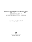 Handicapping the Handicapped DECISION MAKING IN STUDENTS’ EDUCATIONAL CAREERS ________ Hugh Mehan, Alma Hertweck, and J. Lee Meihls STANFORD UNIVERSITY PRESS Stanford, California 1986 PREFACE Like other researchers who are concerned with issues of equality and inequality in American Society, we are trying to understand how it is that people attain places or positions in our society. This concern has led us to consider the role of schooling on students’ careers while they are in school. The question of whether schooling makes a difference in people’s lives is the essence of a larger, traditional sociological topic, that of social stratification. In its several aspects, the question is of concern also to researchers in the field, to organizational theorists, and to students of decision making and problem solving, to all of whom this book is addressed. Therefore, we examine the prevailing models of social stratification, focusing on the views of the role schooling plays on later life outcomes that are inherent in these models. The dominant methodological approach to status-attainment research has been the quantitative analysis of sample surveys of individuals. This paradigm has been successful in showing the location and movement of individuals within the stratification system. It has been less successful, however, in enlightening us about the processes and mechanisms of stratification and the role of institutional arrangements in the stratification system. We consider the issue of the processes of stratification by reviewing studies of the social organization of schooling. These studies, conducted primarily from an ethnographic research perspective, inform us about some of the practices that operate in schools to stratify students. The community and the school system that we studied pro- viii Preface vided numerous insights into organizational decision making and the construction of educational careers, the educational system as a whole—including the interplay between federal and local levels of education, and between the school district and interpersonal contexts within the district. Our analysis eventually came to focus on three decision-making events: those that take place in the classrooms, educational testing situations, and placement committee meetings. In conclusion, we have stated the implications of this study for social stratification theory, decision making theory and the status of concepts such as educational handicap. The analysis of institutional practices shows us how internal school mechanisms mediate the relationship between socioeconomic status, educational achievement, and status attainment. The detained analysis of decision making within the educational institution demonstrates the limitations of the rational model and the importance of looking at organizational practices, standard operating procedures, availability of resources, and the cognitive categories generated by members of the institution. Educational handicaps are found to be a consequence of the enactment of these institutional practices and organizational routines in the face of legal, fiscal, and practical constraints. The research that underlies this volume was made possible through a grant from the National Institute of education (NIE G-78-0177), which of course does not necessarily endorse any of the positions we have taken. The special help of Gail McColl and Marc Tucker is gratefully acknowledged. Michael Cole and the Laboratory of Comparative Human Cognition at the University of California, San Diego, also provided important resources. The research reported on here is obviously not the work of only three people. Numerous other researchers played important roles and deserve much credit for their efforts. We are especially indebted to the following people who helped with data gathering and preliminary analysis of materials: Sondra Buffet, Sam Combs, Debbi Cosby, Del Cox, Margret S. Crowdes, Marcia Douglas, Elette Estrada, Harriet Fleisher, Pierce Flynn, Rod Komas, Jean LeBeau, Jackie Mitchell, Catherine Ryan, and Alexandra Todd. We would like to express our gratitude also to several people who read parts of the manuscript and provided important suggestions to us while the work was in progress: Shiela Broyles, Aaron Cicourel, Michael Cole, Randall Collins, Roy D’Andrade, Phil Davies, Sandro Duranti, Fredrick Erickson, Peg Griffin, John Kitsuse, James A. ix Preface Levin, Marge Martus, Jane Mercer, John Ogbu, Carol Padden, Doris Quick, Margaret A. Riel, Jürgen Streeck, William Teale, and to Kim A Whooley, whose critical comments on the final draft were particularly helpful. H.M. A.H. J.L.M. CONTENTS Transcript Conventions xii 1. The Role of School in Society 1 2. The Role of Society in School 15 3. The Ethnographic Context of the Study 30 4. Constraints on Educational Decision Making 49 5. Teachers’ Interpretations of Students’ Behavior 69 6. Putting Psychodiagnostics to the Test 88 7. The Discourse of Persuasion 109 8. Educators’ Accounts of Students’ Behavior 139 9. Conclusions 158 References 179 Index 189 TABLES AND FIGURES TABLES 1. Career paths through the referral system 51 2. Types of placements 52 3. Number of referrals, by month 55 4. Referral reasons and test profile 102 5. Placement decisions by E&P communities in Coast 115 district, 1978-1979 6. Topic-speaker relationships in information presentation portion of E&P meeting 127 7. Hypothesis about students’ source of difficulty 135 8. Rank-order frequency of attributions 147 9. Special education placement and teachers’ referral 149 reasons 10. Percentage of negative and positive attributions for 149 boys and girls FIGURES 1. A simple model of schooling and the intergenerational transmission of socioeconomic status The referral process in the coast District 2 45 5. Accounts and behavior at key decision-making junctures Sign-referent relations in the classification of mediated objects Bender-Gestalt test items 6. Stability 