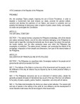 1973 Constitution of the Republic of the Philippines PREAMBLE We, the sovereign Filipino people, imploring the aid of Divine Providence, in order to establish a Government that shall embody our ideals, promote the general welfare, conserve and develop the patrimony of our Nation, and secure to ourselves and our posterity the blessings of democracy under a regime of justice, peace, liberty, and equality, do ordain and promulgate this Constitution. ARTICLE I THE NATIONAL TERRITORY SECTION 1. The national territory comprises the Philippine archipelago, with all the islands and waters embraced therein, and all the other territories belonging to the Philippines by historic right or legal title, including the territorial sea, the air space, the subsoil, the sea-bed, the insular shelves, and the other submarine areas over which the Philippines has sovereignty or jurisdiction. The waters around, between, and connecting the islands of the archipelago, irrespective of their breadth and dimensions, form part of the internal waters of the Philippines. ARTICLE II DECLARATION OF PRINCIPLES AND STATE POLICIES SECTION 1. The Philippines is a republican state. Sovereignty resides in the people and all governmental authority emanates from them. SEC. 2. The defense of the State is a prime duty of the Government and the people, and in the fulfillment of this duty all citizens may be required by law to render personal military or civil service. SEC. 3. The Philippines renounces war as an instrument of national policy, adopts the generally accepted principles of international law as part of the law of the land, and adheres to the policy of peace, equality, justice, freedom, cooperation, and amity with all nations. SEC. 4. The State shall strengthen the family as a basic social institution. The natural right and duty of parents in the rearing of the youth for civic efficiency and the development of moral character shall receive the aid and support of the Government. SEC. 5. The State recognizes the vital role of the youth in the nation-building and shall promote their physical, intellectual, and social well-being. SEC. 6. The State shall promote social justice to ensure the dignity, welfare, and security of all the people. Towards this end, the State shall regulate the acquisition, ownership, use, enjoyment, and disposition of private property, and equitably diffuse property ownership and profits. SEC. 7. The State shall establish, maintain, and ensure adequate social services in the field of education, health, housing, employment, welfare, and social security to guarantee the enjoyment by the people of a decent standard of living. SEC. 8. Civilian authority is at all times supreme over the military. SEC. 9. The State shall afford protection to labor, promote full employment and equality in employment, ensure equal work opportunities regardless of sex, race, or creed, and regulate the relations between workers and employers. The State shall assure the rights of workers to self-organization, collective bargaining, security of tenure, and just and humane conditions of work. The State may provide for compulsory arbitration. SEC. 10. The State shall guarantee and promote the autonomy of local government units, especially the [barangays ], to ensure their fullest development as self-reliant communities. ARTICLE III CITIZENSHIP SECTION 1. The following are citizens of the Philippines: (1) Those who are citizens of the Philippines at the time of the adoption of this Constitution. (2) Those whose fathers or mothers are citizens of the Philippines. (3) Those who elect Philippine citizenship pursuant to the provisions of the Constitution of nineteen hundred and thirty-five. (4) Those who are naturalized in accordance with law. SEC. 2. A female citizen of the Philippines who marries an alien shall retain her Philippine citizenship, unless by her act or omission she is deemed, under the law, to have renounced her citizenship. SEC. 3. Philippine citizenship may be lost or reacquired in the manner provided by law. SEC. 4. A natural-born citizen is one who is a citizen of the Philippines from birth without having to perform any act to acquire or perfect his Philippine citizenship. ARTICLE IV BILL OF RIGHTS SECTION 1. No person shall be deprived of life, liberty, or property without due process of law, nor shall any person be denied the equal protection of the laws. SEC. 2. Private property shall not be taken for public use without just compensation. SEC. 3. The right of the people to be secure in their persons, houses, papers, and effects against unreasonable searches and seizures of whatever nature and for any purpose shall not be violated, and no search warrant or warrant of arrest shall issue except upon probable cause to be determined by the judge, or such other responsible officer as may be authorized by law, after examination under oath or affirmation of the complainant and the witnesses he may produce, and particularly describing the place to be searched, and the persons or things to be seized. SEC. 4. (1) The privacy of communication and correspondence shall be inviolable except upon lawful order of the court, or when public safety and order require otherwise. (2) Any evidence obtained in violation of this or the preceding section shall be inadmissible for any purpose in any proceeding. SEC. 5. The liberty of abode and of travel shall not, be impaired except upon lawful order of the court, or when necessary in the interest of national security, public safety, or public health. SEC. 6. The right of the people to information on matters of public concern shall be recognized. Access to official records, and to documents and papers pertaining to official acts, transactions, or decisions, shall be afforded the citizen subject to such limitations as may be provided by law. SEC. 7. The right to form associations or societies for purposes not contrary to law shall not be abridged. SEC. 8. No law shall be made respecting an es