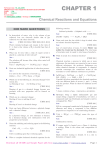 Chap 1 : Chemical Reactions and Equations www.cbse.online CHAPTER 1 File Revision Date : 10 July 2019 CBSE Previous Years Chapterwise Questions Exam 2019-2020 CLASS : 10th SUB : Science For more subject visit www.cbse.online or whatsapp at 8905629969 Chemical Reactions and Equations ONE MARK QUESTIONS 1. In electrolysis of water, why is the volume of gas collected over one electrode double that of gas collected over the other electrode. Ans : [CBSE S.R 2018, CBSE 2009, 2012, 2013] following reaction: Sodium hydroxide + Sulphuric acid $ Ans : [CBSE 2013] 2NaOH + H2SO4 $ Na2SO4 + 2H2O 9. Water contains hydrogen and oxygen in the ratio of 2 : 1, that is why volume of H2 is double than that of oxygen. 2. What can be seen when a strip of copper metal is placed in a solution of silver nitrate? Ans : [CBSE 2015] Law of conservation of mass. It states Matter can neither be created nor be destroyed. The total mass of reactants must be equal to total mass of products. 10. What is meant by a chemical reaction? Ans : The solution will become blue, shiny silver metal will get deposited. Cu(s) + 2AgNO3(aq) $ Cu(NO3)2 (aq) + 2Ag(s) 3. 4. Which one of the following is a chemical change? Give reason also. (a) Burning of wax (b) Melting of wax Ans : [CBSE 2014] Burning of gas is a chemical change because new products with new properties will be formed on burning. 5. Which one is a chemical change: Rusting of iron or melting of iron? Ans : [CBSE 2014] Rusting of iron is a chemical change. 6. State one basic difference between a physical change and a chemical change. Ans : [CBSE 2014, 2011] In a physical change, no new substance is formed. In a chemical change, new substance(s) with new properties is/are formed. 7. Name the oxidising and reducing agent in the following reaction: CuO + H2 $ Cu + H2O Ans : [CBSE 2013] CuO is oxidising agent H2 is reducing agent. 8. Write a complete balanced chemical equation for the [CBSE 2011] Chemical reaction, a process in which one or more substances, the reactants, are converted to one or more different substances, the products. Substances are either chemical elements or compounds. A chemical reaction rearranges the constituent atoms of the reactants to create different substances as products State one industrial application of reduction process. Ans : [CBSE 2015] It is used in the extraction of metals e.g., Heat Zn(s) + CO2(g) ZnO(s) + C(s) Name and state the law which is kept in mind when we balance chemical equations. Ans : [CBSE 2012] 11. AgNO3(aq) + NaCl(aq) $ AgCl . + NaNO3(aq) FeS + H2SO4 $ FeSO4 + H2S Consider the above mentioned two chemical equations with two different kinds of arrows (- and . ) along with the product. What do these two different arrows indicate? Ans : [CBSE 2011] - shows evolution of gas, . represents a precipitate. 12. Hydrogen being a highly inflammable gas and oxygen being a supporter of combustion, yet water, a compound made up of hydrogen and oxygen is used to extinguish fire. Why? Ans : [CBSE 2011] H2O is a compound constituted of hydrogen of oxygen elements and being a compound it has different properties as compared to its constituting elements. 13. N2(g) + 3H2(g) $ 2NH3(g), name the type of reaction. Ans : [CBSE 2011] Combination reaction. 14. If copper metal is heated over a flame it develops a coating. What is the colour and composition of coating? Ans : [CBSE 2011] Black coloured coating is formed. It is a due to formation of copper oxide. Download all GUIDE and Sample Paper pdfs from www.cbse.online or www.rava.org.in Page 1 Chap 1 : Chemical Reactions and Equations www.cbse.online 15. Write a balanced chemical equation to represent the following reaction: carbon monoxide reacts with hydrogen gas at 340 atm to form methyl alcohol. Ans : [CBSE 2011] CO(g) + 2H2(g) 340 atm CH3OH(l) 16. Which one is a chemical change: fermentation of fruit juice or diluting fruit juice? Ans : 25. Write a balanced chemical equation for the reaction between sodium chloride and silver nitrate indicating the physical state of the reactants and the products. Ans : [CBSE 2010] AgNO 3 (aq) + NaCl (aq) (Silver Nitrate) [CBSE 2011] Fermentation of fruit juice is a chemical change. 17. It is photochemical decomposition reaction. Is burning of a candle wax a physical or a chemical change? Ans : [CBSE 2011] Burning of a candle wax is a chemical change. 18. Write a balanced equation for the chemical reaction Heat (Sodium Chloride) AgCl (s) + NaNO 3 (aq) (Silver Chloride) (Sodium NItrate) 26. Complete and balance the following equation: Fe2O3 + Al $ Ans : [CBSE 2010] Fe2O3 + 2Al $ 2Fe + Al2O3 27. Balance the following chemical equation: Pb(NO3)2 $ PbO + NO2 + O2 Ans : 2Pb(NO3)2 Heat [CBSE 2009] 2PbO + 4NO2 + O2 that can be characterised as precipitation reaction. Ans : [CBSE 2011] 28. Identity the type of reaction in the following example: AgNO3(aq) + NaCl(aq) $ AgCl(s) + NaNO3(aq) It is a precipitation reaction. Na2SO4(aq) + BaCl2(aq) $ BaSO4(s) + 2NaCl(ag) Ans : [CBSE 2008(C)] 19. State the main difference between endothermic reaction and an exothermic reaction. Ans : [CBSE 2011] In endothermic reaction, heat is absorbed. In exothermic reaction, heat is evolved. 20. What happens chemically when quick lime is added to water filled in a bucket? Ans : [CBSE 2010, 2008] Calcium hydroxide (Slaked lime) is formed with evolution of heat and hissing sound. CaO(s) + H2O(l) $ Ca(OH)2(aq) 21. Define oxidation and reduction. Ans : [CBSE 2011, 2010] Oxidation is a process in which oxygen is added or loss of electrons take place. Reduction is a process in which hydrogen is added or gain of electrons takes place. 22. Give an example of double displacement reaction (only with complete balanced equation). Ans : [CBSE 2011, 2010] BaCl2(aq) + H2SO4(dil.) $ BaSO4(s) + 2HCl(aq) It is a double displacement reaction. 23. On what basis is a chemical reaction balanced? Ans : [CBSE 2010, 2008] Double displacement reaction. 29. Identify the type of reaction in the following example: Fe(s)