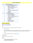 SAP EHS Management General Configuration Specify General Settings Use In this Customizing activity, you can configure the following general systems settings: Default Language Key By setting the default language, you determine the language for entering texts as well as the default target language for translating texts. If texts do not exist in the language selected at logon, they will be displayed in this language. Currency Currencies are defined according to the international ISO standard. Standard settings The standard system is delivered with examples. Activities 1. Check the existing examples and adapt them as required. 2. If necessary, define additional entries. A unique key must be assigned to each entry. Specify General Settings Use In this Customizing activity, you can configure the following general systems settings: Default Language Key By setting the default language, you determine the language for entering texts as well as the default target language for translating texts. If texts do not exist in the language selected at logon, they will be displayed in this language. Currency Currencies are defined according to the international ISO standard. Standard settings The standard system is delivered with examples. Activities 1. Check the existing examples and adapt them as required. 2. If necessary, define additional entries. A unique key must be assigned to each entry. Specify Active Languages Use In this Customizing activity, you can define the available target languages for translating free text fields in the system. If you want to translate a free text, you can choose one of these defined languages and then translate the text into the chosen language. Standard settings The standard system is delivered with examples. Activities 1. Check the existing examples and adapt them as required. 2. If necessary, define additional entries. A unique key must be assigned to each entry. Specify Field Control Use In this Customizing activity, you can specify field control for business objects in the SAP EHS Management (EHS-MGM) component. You can use field control to adapt the user interface to specific conditions of a data record. You specify these conditions and how the system adapts the UI on the node level of a business object. You can, for example, set up field control to make specific fields visible and editable on the user interface depending on the country or region of the data record. Field control is possible on all nodes of a business object and for all properties of the node. You can also specify more than one profile to accommodate each relevant set of conditions of a data record. Prerequisites You are familiar with the modelling and structure of the business objects of SAP EHS Management in the Business Object Processing Framework (BOPF). You are familiar with the legal reporting requirements of your country or region and the data that is required to be compliant. Standard settings The standard system is delivered with examples. Activities 1. Check the existing examples and adapt them as required. 2. If necessary, define additional entries. To create new field control profiles, perform the following steps: 1. Specify the business object for which you want to use field control. 2. Specify the node of the business object for which you want to create a profile. 3. Make the settings for the profile. You can decide when field control applies at the node level based on the settings you make for the following fields: o Authorization-Based Profile o Authorization Check Result o Function Class o Node Attribute Value (The system determines if field control applies in the order that the above fields are listed here.) If you create more than one profile for a node, you can make settings for the merge strategy for each profile. 4. After creating the profile, you can define the property settings for the business object node in the subdialogs. These are settings that control the behavior and appearance of the user interface. In this step, you can also specify how to propagate the settings to subnodes. Example You use SAP EHS Management to record incidents that occur in the United States and are subject to OSHA requirements. There are certain injury/illnesses that are handled as privacy cases in the United States. In this case, you can use field control to display the Privacy Case and Additional Criteria radio buttons when you record data about injuries/illnesses that occurred in the United States. Otherwise, these fields are not displayed. Field Control for Merge Strategy Definition Specifies the strategy for merging profiles with different values specified for the attribute, node, action and association properties so that only one profile is returned and used for field control. Use You can specify, for example, that disabled values always win (pessimistic), or that enabled values always win (optimistic). The system gives priority to the optimistic profile when there is more than one profile. By default, the merge strategy is pessimistic. Create Regulations Use In this Customizing activity, you can create regulations for business objects used in SAP EHS Management. You can use regulations as the conditional basis for applying field control settings and to control the forms available to the data record. This way, the system adapts a data record automatically according to a specific regulation and helps you fulfill regulatory requirements. If your organization operates in countries and regions with specific regulatory requirements, for example, for managing incidents, you createthe regulations in this activity. If your organization has internal policy, for example, for managing incidents, you create the internal policy as a regulation in this activity. Standard settings The standard system is delivered with examples. Note that you must specify these regulations further for use in incident management. For more information, see the Customizing activity Specify Regulations. Activities 1. Check the e
