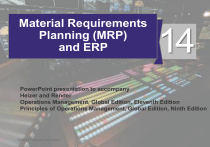Material Requirements Planning (MRP) and ERP 14 PowerPoint presentation to accompany Heizer and Render Operations Management, Global Edition, Eleventh Edition Principles of Operations Management, Global Edition, Ninth Edition © 2014 Pearson Education 14 - 1 Outline Dependent vs. Independent Demand What is MRP? The benefits and requirements of MRP Inputs, outputs, and nature of MRP processing How to translate the requirements in a Master Production Schedule into material requirements for lower-level items (components) Lot Sizing Techniques Extensions of MRP (MRP II, ClosedLoop MRP, ERP) © 2011 Pearson Education, Inc. publishing as Prentice Hall 14 - 2 Wheeled Coach Largest manufacturer of ambulances in the world 12 major ambulance designs 18,000 different inventory items 6,000 manufactured parts 12,000 purchased parts © 2011 Pearson Education, Inc. publishing as Prentice Hall 14 - 3 Hierarchy of Production Decisions Long-range Capacity Planning 14 - 4 Dependent vs Independent Demand 12-5 14 - 5 Dependent Demand For any product, all components of that product are dependent demand items. Given a quantity for the product, the demand for all parts and components can be calculated. © 2011 Pearson Education, Inc. publishing as Prentice Hall 14 - 6 What is MRP Material requirements planning (MRP) is a dependent demand production planning and inventory control system. MRP integrates data from production schedules (MPS) with inventory records, scheduled receipts and the bill of materials (BOM) to determine purchasing and production schedules for the components required to build a product. © 2011 Pearson Education, Inc. publishing as Prentice Hall 14 - 7 Trumpet and Subassemblies 14 - 8 Bill-of-Material for Trumpet 14 - 9 MRP A computer-based information system that translates master production schedule (MPS) requirements for end items into timephased requirements for subassemblies, components, and raw materials. 12-10 14 - 10 MRP The MRP is designed to answer three questions: What is needed? How much is needed? When is it needed? © 2011 Pearson Education, Inc. publishing as Prentice Hall 14 - 11 Benefits of MRP 1. Better response to customer orders 2. Faster response to market changes 3. Improved utilization of facilities and labor 4. Reduced inventory levels © 2011 Pearson Education, Inc. publishing as Prentice Hall 14 - 12 Inputs to MRP MRP is a dependent demand technique that uses Bill-of-Material (BOM) On-hand inventory data Expected receipts (outstanding purchase orders) Master Production Schedule (MPS) Lead Time information to determine material requirements. 14 - 13 Overview of MRP 14 - 14 Master Production Schedule (MPS) Time-phased plan specifying how many and when the company plans to produce each end item Aggregate Plan (Product Groups) MPS (Specific End Items) 14 - 15 Master Production Schedule (MPS) MPS is established in terms of specific products The MPS is a statement of what is to be produced, not a forecast of demand Must be in accordance with the aggregate production plan Before it is executed, MPS must be tested for feasibility (Capacity Requirements Planning) © 2011 Pearson Education, Inc. publishing as Prentice Hall 14 - 16 MPS Example – 1 One possible MPS… Product Month Week Tricycle Wagon Scooter Totals 41 300 300 October 42 43 44 45 300 300 300 300 300 300 300 2,400 300 November 46 47 300 300 300 300 2,400 48 49 300 250 250 300 December 50 51 250 250 250 250 52 250 250 2,000 14 - 17 MPS Example – 2 Months Aggregate Production Plan (Shows the total quantity of amplifiers) Weeks Master Production Schedule (Shows the specific type and quantity of amplifier to be produced 240-watt amplifier 150-watt amplifier 75-watt amplifier January 1,500 1 2 100 3 February 1,200 4 100 500 6 100 500 300 5 7 8 100 450 450 100 Figure 14.2 © 2011 Pearson Education, Inc. publishing as Prentice Hall 14 - 18 Bills of Material (BOM) List of components, ingredients, and materials needed to make product Provides product structure Items above given level are called parents Items below given level are called children © 2011 Pearson Education, Inc. publishing as Prentice Hall 14 - 19 Assembly Diagram and Product Structure Tree 12-20 14 - 20 BOM Example (Determine requirements for all components to satisfy demand for 50 Awesome Speaker Kits) Level Product structure for “Awesome” (A) 0 A E(2) 2 3 12” Speaker kit w/ C(3) Std. amp-booster B(2) Std. 12” Speaker kit 1 D(2) F(2) Std. 12” Speaker E(2) Packing box and installation kit of wire, bolts, and screws booster assembly G(1) D(2) Amp-booster 12” Speaker © 2011 Pearson Education, Inc. publishing as Prentice Hall 12” Speaker 14 - 21 BOM Example Level Product structure for “Awesome” (A) 0 A 1 2 3 D(2) Part B: 2 x number of As = (2)(50) =Std. 12” Speaker100 kit w/ BPart 12” Speaker kit C (2) Std. (3) C: 3 x number of As = (3)(50) =amp-booster 150 Part D: 2 x number of Bs + 2 x number of Fs = (2)(100) + (2)(300) = 800 E(2) 2 x number of Bs E(2) F(2) Std. 12” Speaker Part E: booster assembly + 2 x number of Cs = (2)(100) + (2)(150) = 500 Part F: 2 x Packing numberbox ofand Cs = (2)(150) = 300 kit of wire, G(1) D(2) Part G: 1installation xbolts, number of Fs = (1)(300) = 300 and screws Amp-booster 12” Speaker © 2011 Pearson Education, Inc. publishing as Prentice Hall 12” Speaker 14 - 22 Accurate Records for Outstanding Purchase Orders (Scheduled Receipts) Accurate inventory records are absolutely required for MRP (or any dependent demand system) to operate correctly Generally MRP systems require more than 99% accuracy Outstanding purchase orders must accurately reflect quantities and scheduled receipts © 2011 Pearson Education, Inc. publishing as Prentice Hall 14 - 23 Lead Times The time required to purchase, produce, or assemble an item For production – the sum of the order, wait, move, setup, store, and run times For purchased items – the time between the recognition of a need and the availability of the item 