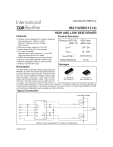 Data Sheet No. PD60147-O IR2110/IR2113 (S) HIGH AND LOW SIDE DRIVER Features • • • • • • • • Product Summary Floating channel designed for bootstrap operation Fully operational to +500V or +600V Tolerant to negative transient voltage dV/dt immune Gate drive supply range from 10 to 20V Undervoltage lockout for both channels 3.3V logic compatible Separate logic supply range from 3.3V to 20V Logic and power ground ±5V offset CMOS Schmitt-triggered inputs with pull-down Cycle by cycle edge-triggered shutdown logic Matched propagation delay for both channels Outputs in phase with inputs VOFFSET (IR2110) (IR2113) 500V max. 600V max. IO+/- 2A / 2A VOUT 10 - 20V ton/off (typ.) 120 & 94 ns Delay Matching 10 ns Packages Description The IR2110/IR2113 are high voltage, high speed power MOSFET and IGBT drivers with independent high and low side referenced output channels. Proprietary HVIC and latch immune CMOS technologies enable rugge14 Lead PDIP 16 Lead SOIC dized monolithic construction. Logic inputs are comIR2110/IR2113 IR2110S/IR2113S patible with standard CMOS or LSTTL output, down to 3.3V logic. The output drivers feature a high pulse current buffer stage designed for minimum driver cross-conduction. Propagation delays are matched to simplify use in high frequency applications. The floating channel can be used to drive an N-channel power MOSFET or IGBT in the high side configuration which operates up to 500 or 600 volts. Typical Connection up to 500V or 600V HO V DD VDD VB HIN HIN VS SD SD LIN LIN V CC VSS VSS COM VCC TO LOAD LO (Refer to Lead Assignment for correct pin configuration) www.irf.com 1 IR2110/IR2113 (S) Absolute Maximum Ratings Absolute maximum ratings indicate sustained limits beyond which damage to the device may occur. All voltage parameters are absolute voltages referenced to COM. The thermal resistance and power dissipation ratings are measured under board mounted and still air conditions. Additional information is shown in Figures 28 through 35. Symbol Definition Min. Max. -0.3 525 Units VB High side floating supply voltage (IR2110) -0.3 625 VS High side floating supply offset voltage VB - 25 VB + 0.3 VHO High side floating output voltage VS - 0.3 VB + 0.3 VCC Low side fixed supply voltage -0.3 25 VLO Low side output voltage -0.3 VCC + 0.3 VDD Logic supply voltage -0.3 VSS + 25 VSS Logic supply offset voltage VCC - 25 VCC + 0.3 VIN Logic input voltage (HIN, LIN & SD) VSS - 0.3 VDD + 0.3 (IR2113) dVs/dt PD RTHJA Allowable offset supply voltage transient (figure 2) — 50 Package power dissipation @ TA ≤ +25°C (14 lead DIP) — 1.6 (16 lead SOIC) — 1.25 Thermal resistance, junction to ambient (14 lead DIP) — 75 (16 lead SOIC) — 100 TJ Junction temperature — 150 TS Storage temperature -55 150 TL Lead temperature (soldering, 10 seconds) — 300 V V/ns W °C/W °C Recommended Operating Conditions The input/output logic timing diagram is shown in figure 1. For proper operation the device should be used within the recommended conditions. The VS and VSS offset ratings are tested with all supplies biased at 15V differential. Typical ratings at other bias conditions are shown in figures 36 and 37. Symbol Definition VB High side floating supply absolute voltage VS High side floating supply offset voltage Min. Max. VS + 10 VS + 20 (IR2110) Note 1 500 (IR2113) Note 1 600 VHO High side floating output voltage VS VB VCC Low side fixed supply voltage 10 20 VLO Low side output voltage 0 VCC VDD Logic supply voltage VSS Logic supply offset voltage VIN TA VSS + 3 VSS + 20 -5 (Note 2) 5 Logic input voltage (HIN, LIN & SD) VSS VDD Ambient temperature -40 125 Units V °C Note 1: Logic operational for VS of -4 to +500V. Logic state held for VS of -4V to -VBS. Note 2: When VDD < 5V, the minimum VSS offset is limited to -VDD. 2 www.irf.com IR2110/IR2113 (S) Dynamic Electrical Characteristics VBIAS (VCC , VBS , VDD) = 15V, CL = 1000 pF, TA = 25°C and VSS = COM unless otherwise specified. The dynamic electrical characteristics are measured using the test circuit shown in Figure 3. Symbol Definition Figure Min. Typ. Max. Units Test Conditions ton Turn-on propagation delay 7 — 120 150 VS = 0V toff Turn-off propagation delay 8 — 94 125 VS = 500V/600V tsd Shutdown propagation delay 9 — 110 140 tr Turn-on rise time 10 — 25 35 tf Turn-off fall time 11 — 17 25 Delay matching, HS & LS turn-on/off — — — 10 MT ns VS = 500V/600V Figure 5 Static Electrical Characteristics VBIAS (VCC, VBS, VDD) = 15V, TA = 25°C and VSS = COM unless otherwise specified. The VIN, VTH and IIN parameters are referenced to VSS and are applicable to all three logic input leads: HIN, LIN and SD. The VO and IO parameters are referenced to COM and are applicable to the respective output leads: HO or LO. Symbol Definition Figure Min. Typ. Max. Units Test Conditions VIH Logic “1” input voltage 12 9.5 — — VIL Logic “0” input voltage 13 — — 6.0 VOH High level output voltage, VBIAS - VO 14 — — 1.2 VOL Low level output voltage, VO 15 — — 0.1 IO = 0A ILK Offset supply leakage current 16 — — 50 VB=VS = 500V/600V IQBS Quiescent VBS supply current 17 — 125 230 VIN = 0V or VDD IQCC Quiescent VCC supply current 18 — 180 340 IQDD Quiescent VDD supply current 19 — 15 30 VIN = 0V or VDD IIN+ Logic “1” input bias current 20 — 20 40 VIN = VDD 21 22 — 7.5 — 8.6 1.0 9.7 VIN = 0V 23 7.0 8.2 9.4 24 7.4 8.5 9.6 25 7.0 8.2 9.4 IO+ Logic “0” input bias current VBS supply undervoltage positive going threshold VBS supply undervoltage negative going threshold VCC supply undervoltage positive going threshold VCC supply undervoltage negative going threshold Output high short circuit pulsed current 26 2.0 2.5 — IO- Output low short circuit pulsed current 27 2.0 2.5 — IINVBSUV+ VBSUVVCCUV+ VCCUV- www.irf.com V µA IO = 0A VIN = 0V or VDD V A VO = 0V, VIN = VDD PW ≤ 10 µs VO = 15V, VIN = 0V PW ≤ 10 µs 3 IR2110/IR2113 (S) Functional Block Diagram VB UV DETECT VDD R Q S 