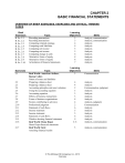 CHAPTER 2 BASIC FINANCIAL STATEMENTS OVERVIEW OF BRIEF EXERCISES, EXERCISES AND CRITICAL THINKING CASES Brief Exercises B. Ex. 2.1 B. Ex. 2.2 B. Ex. 2.3 B. Ex. 2.4 B. Ex. 2.5 B. Ex. 2.6 B. Ex. 2.7 B. Ex. 2.8 B. Ex. 2.9 B. Ex. 2.10 Exercises 2.1 2.2 2.3 2.4 2.5 2.6 2.7 2.8 2.9 2.10 2.11 2.12 2.13 2.14 2.15 2.16 2.17 Topic Recording transactions Recording transactions Computing retained earnings Computing total liabilities Computing net income Computing net income Computing change in cash Alternative forms of equity Alternative forms of equity Articulation of financial statements Topic Real World: American Airlines, Boston Celtics Nature of assets and liabilities Preparing a balance sheet Preparing a balance sheet Accounting principles and asset valuation Using the accounting equation Accounting equation Effects of business transactions Forms of business organizations Factors contributing to solvency Professional judgment Statement of cash flows Income statement Income statement Statement of cash flows Window dressing financial statement Real World: Home Depot Home Depot financial statements Real World: Intel Assessing financial results Learning Objectives 3 3 4 4 5 5 6 8 8 7 Skills Analysis, communication Analysis, communication Analysis Analysis Analysis Analysis Analysis Analysis Analysis Analysis Learning Objectives 3 Skills Communication 4 4 2 3 3 3 8 4 2 6 5 5 6 9 4–6 Analysis Analysis Communication, judgment Analysis Analysis Analysis Analysis Analysis, judgment Communication Analysis Analysis Analysis Analysis Analysis Analysis, communication 5 Analysis, communication © The McGraw-Hill Companies, Inc., 2010 Overview Problems Sets A, B 2.1 A,B 2.2 A,B 2.3 A,B 2.4 A,B 2.5 A,B 2.6 A,B 2.7 A,B 2.8 A,B 2.9 A,B 2.10 A,B Topic Preparing and evaluating a balance sheet Effects of transactions Effects of transactions Effects of transactions Preparing a balance sheet, effects of transactions Preparing a balance sheet, effects of transactions Preparing a balance sheet and statement of cash flows, effects of transactions Preparing financial statements, effects of of transactions, evaluating solvency Preparing a balance sheet, discussion of GAAP Preparing a balance sheet, discussion of GAAP Learning Objectives 4 3 3 3 4 Skills Analysis, communication Analysis Analysis Analysis Communication, judgment 4 Analysis, communication 3, 4, 6 Analysis, communication 4–6 Analysis, communication 4, 8 Analysis, communication, judgment Analysis, communication, judgment 2, 4 © The McGraw-Hill Companies, Inc., 2010 Overview (p. 2) Critical Thinking Cases 2.1 Prepare a realistic balance sheet for a hypothetical entity 2.2 Real World: Company of student choice Locate and evaluate the financial statements of a publicly owned company 2.3 Using a balance sheet 4 Judgment 4–6 Analysis, communication, research 4 Analysis, communication judgment Analysis, communication, judgment Analysis, communication, judgment Communication, research, technology 2.4 Using a statement of cash flows 6 2.5 Window dressing 9 2.6 9 Real World: Public Company Accounting Oversight Board (Ethics, fraud & corporate governance) 2.7 1-7 Evaluating Company Efficiency Analysis, communication (Business Week) 2.8 4-5 Technology Real World: Cisco Systems Introduction to EDGAR (Internet) Note: Additional Internet assignments for this chapter are available both in Appendix B and on our home page: www.magpie.org/cyberlab DESCRIPTIONS OF PROBLEMS AND CRITICAL THINKING CASES Shown below are brief descriptions of each problem and case. These descriptions are accompanied by the estimated time (in minutes) required for completion and by a difficulty rating. The time estimates assume use of the partially filled-in working papers. Problems (Sets A and B) 2.1 A,B Smokey Mountain Lodge/Deep River Lodge Prepare a balance sheet from a list of balance sheet items in random order. Determine the amount of one item as a plug figure. Also evaluate the company’s solvency. 15 Easy 2.2 A,B Ajax Moving Company/Brigal Company Effects of transactions upon the accounting equation are illustrated in tabular form. Students are asked to write a sentence or two explaining the nature of each transaction. 15 Easy 2.3 A,B Goldstar Communications/Delta Corporation Show in tabular form the effects of various business transactions upon the accounting equation. (Problem 2–4 is an alternate.) 15 Medium 2.4 A,B Rankin Truck Rental/Smith Trucking Show in tabular form the effects of various business transactions upon the accounting equation. (Alternate to Problem 2–3.) 15 Medium © The McGraw-Hill Companies, Inc., 2010 Overview and Desc. of Cases Problems (cont'd) 2.5 A,B Here Come the Clowns/Circus World Preparation of a balance sheet for a circus—an entity with an unusual variety of asset accounts. Also requires students to explain the effects upon this balance sheet of a fire that destroys one of the assets. (Problem 2–6 is an alternate.) 20 Medium 2.6 A,B Wilson Farms, Inc./Apple Valley Farms Prepare a balance sheet for a farm—an entity with a wide variety of assets. Also, explain the effects upon this balance sheet of the destruction of one of the assets. (Alternate to Problem 2–5.) 20 Medium 2.7 A,B The Oven Bakery/The City Butcher 35 Medium Prepare a balance sheet from an alphabetical listing of accounts, and prepare a second balance sheet and a statement of cash flows after some additional transactions. Evaluate the company’s relative solvency at each date. 2.8 A,B The Sweet Soda Shop/The Candy Shop The student is asked to prepare a balance sheet from an alphabetical list of accounts and then to prepare a second balance sheet as well as an income statement and a statement of cash flows, after several transactions. Evaluate the company’s relative solvency at each date. 40 Strong 2.9 A,B Berkeley Playhouse/Old Town Playhouse Given an improperly prepared balance sheet, student is asked to prepare a corrected balance sheet and to explain the proper valuation 