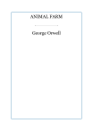 ANIMAL FARM George Orwell First published in 1944. This web edition published by eBooks@Adelaide. Last updated Wednesday, December 17, 2014 at 14:20. To the best of our knowledge, the text of this work is in the “Public Domain” in Australia. HOWEVER, copyright law varies in other countries, and the work may still be under copyright in the country from which you are accessing this website. It is your responsibility to check the applicable copyright laws in your country before downloading this work. eBooks@Adelaide The University of Adelaide Library University of Adelaide South Australia 5005 https://ebooks.adelaide.edu.au/o/orwell/george/o79a/index.html Last updated Sunday, March 27, 2016 at 11:58 Animal Farm, by George Orwell TABLE OF CONTENTS Chapter 1 Chapter 2 Chapter 3 Chapter 4 Chapter 5 Chapter 6 Chapter 7 Chapter 8 Chapter 9 Chapter 10 ❦ https://ebooks.adelaide.edu.au/o/orwell/george/o79a/contents.html Last updated Sunday, March 27, 2016 at 11:58 Animal Farm, by George Orwell CHAPTER 1 M r. Jones, of the Manor Farm, had locked the hen-houses for the night, but was too drunk to remember to shut the pop- holes. With the ring of light from his lantern dancing from side to side, he lurched across the yard, kicked off his boots at the back door, drew himself a last glass of beer from the barrel in the scullery, and made his way up to bed, where Mrs. Jones was already snoring. As soon as the light in the bedroom went out there was a stirring and a fluttering all through the farm buildings. Word had gone round during the day that old Major, the prize Middle White boar, had had a strange dream on the previous night and wished to communicate it to the other animals. It had been agreed that they should all meet in the big barn as soon as Mr. Jones was safely out of the way. Old Major (so he was always called, though the name under which he had been exhibited was Willingdon Beauty) was so highly regarded on the farm that everyone was quite ready to lose an hour’s sleep in order to hear what he had to say. At one end of the big barn, on a sort of raised platform, Major was already ensconced on his bed of straw, under a lantern which hung from a beam. He was twelve years old and had lately grown rather stout, but he was still a majestic-looking pig, with a wise and benevolent appearance in spite of the fact that his tushes had never been cut. Before long the other animals began to arrive and make themselves comfortable after their different fashions. First came the three dogs, Bluebell, Jessie, and Pincher, and then the pigs, who settled down in the straw immediately in front of the platform. The hens perched themselves on the window-sills, the pigeons fluttered up to the rafters, the sheep and cows lay down behind the pigs and began to chew the cud. The two cart-horses, Boxer and Clover, came in together, walking very slowly and setting down their vast hairy hoofs with great care lest there should be some small animal concealed in the straw. Clover was a stout motherly mare approaching middle life, who had never quite got her figure back after her fourth foal. Boxer was an enormous beast, nearly eighteen hands high, and as strong as any two ordinary horses put together. A white stripe down his nose gave him a somewhat stupid appearance, and in fact he was not of first-rate intelligence, but he was universally respected for his steadiness of character and tremendous powers of work. After the horses came Muriel, the white goat, and Benjamin, the donkey. Benjamin was the oldest animal on the farm, and the worst tempered. He seldom talked, and when he did, it was usually to make some cynical remark — for instance, he would say that God had given him a tail to keep the flies off, but that he would sooner have had no tail and no flies. Alone among the animals on the farm he never laughed. If asked why, he would say that he saw nothing to laugh at. Nevertheless, without openly admitting it, he was devoted to Boxer; the two of them usually spent their Sundays together in the small paddock beyond the orchard, grazing side by side and never speaking. The two horses had just lain down when a brood of ducklings, which had lost their mother, filed into the barn, cheeping feebly and wandering from side to side to find some place where they would not be trodden on. Clover made a sort of wall round them with her great foreleg, and the ducklings nestled down inside it and promptly fell asleep. At the last moment Mollie, the foolish, pretty white mare who drew Mr. Jones’s trap, came mincing daintily in, chewing at a lump of sugar. She took a place near the front and began flirting her white mane, hoping to draw attention to the red ribbons it was plaited with. Last of all came the cat, who looked round, as usual, for the warmest place, and finally squeezed herself in between Boxer and Clover; there she purred contentedly throughout Major’s speech without listening to a word of what he was saying. All the animals were now present except Moses, the tame raven, who slept on a perch behind the back door. When Major saw that they had all made themselves comfortable and were waiting attentively, he cleared his throat and began: “Comrades, you have heard already about the strange dream that I had last night. But I will come to the dream later. I have something else to say first. I do not think, comrades, that I shall be with you for many months longer, and before I die, I feel it my duty to pass on to you such wisdom as I have acquired. I have had a long life, I have had much time for thought as I lay alone in my stall, and I think I may say that I understand the nature of life on this earth as well as any animal now living. It is about this that I wish to speak to you. “Now, comrades, what is the nature of this life of ours? Let us face it: our lives are miserable, laborious, and short. We are born, we are given just so much food as will keep the breath in our bodies, and those of us who are capabl