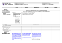 GRADES 1 to 12 DAILY LESSON LOG School: Teacher: Teaching Dates and Time: LUNES I. OBJECTIVES A. Content Standards B. Performance Standards C. Learning Competencies / Objectives Write the LC code for each II. CONTENT III. LEARNING RESOURCES A. References 1. Teacher’s Guide pages 2. Learner’s Materials pages 3. Textbook pages 4. Additional Materials from Learning Resource (LR)portal B. Other Learning Resources Grade Level: Learning Area: Quarter: (WEEK 10) MARTES MIYERKULES VI TLE 2ND QUARTER HUWEBES HUWEBES Demonstrates an understanding of and skills in the basics of food preservation Preserves food/s using appropriate tools and materials and applying the basics of food preservation 3.6 Markets preserved/processed food in varied/creative ways with pride. 3.6.1. packages product for sale creatively/artistically, prepares creative package and uses materials sourced locally, packages products artistically, and labels packaged products 3.6.2 computes costs, sales, and gains with pride 3.6.3 uses technology in advertising products 3.6.4 keeps record of production and sales FOOD PRESERVATION https://books.google.com.ph/b ooks?id=1Rro1lZaGxIC&pg=PA1 &dq=packaging+for+marketing &hl=en&sa=X&ved=0ahUKEwiu v7vD0oXUAhUMkpQKHdKMAk YQ6AEILDAC#v=onepage&q=pa ckaging%20for%20marketing&f =false http://www.packagingofthewo rld.com/2017/02/10-productpackaging-tips-that-will.html http://www.businessdictionary .com/definition/advertising.ht ml https://www.google.com.ph/searc h?q=online+advertising+definition &oq=Online+adver&aqs=chrome.3. 0j69i57j0l4.6025j0j7&sourceid=chr ome&ie=UTF-8 http://businesstips.ph/how-tocompute-your-business-profit/ BIYERNES BIYERNES https://www.google.com.ph/se arch?q=packaging+meaning&o q=pac&aqs=chrome.0.69i59l3j6 9i57j0l2.4226j0j7&sourceid=chr ome&ie=UTF-8 http://smallbusiness.chron.co m/8-different-ways-advertiseproducts-services-19274.html http://dictionary.cambridge.org /us/dictionary/english/packagin g Stewart, B. (1997). Packaging as an effective marketing tool. Surrey: Pira International. IV. PROCEDURES A. Reviewing previous lesson or presenting the new lesson B. Establishing a purpose for the lesson C. Presenting examples/ instances of the new lesson Recap of previous lesson Recap of previous lesson Recap of previous lesson Recap of previous lesson Recap of previous lesson. Last week the class learned how to assess quality of preserved/processed foods. The class also learned how to improve the quality of specific preserved/processed food items. Yesterday, the class learned about the importance of packaging in the marketing of a quality processed/preserved food. Original File Submitted and Formatted by DepEd Club Member - visit depedclub.com for more Yesterday, the class learned about the factors that should be considered in packaging a product, advertising as well as its types. Yesterday, the class learned the concept of online advertising. Yesterday, the class heard the presentations of Groups ___ and ___. Now that the class learned about coming up with a quality preserved/processed food, it is important that the items will also be packaged creatively and artistically for it to be attractive to the target market. Today, the class will learn on tips in the packaging of products. Online advertising was demonstrated yesterday by ____. Based on his/her demonstration, what then is the definition of online advertising? Quality food plus creative packaging equals to increased sales and profit. Answer: Design When a quality product comes in a well-designed package, it encourages sales. Ask the learners: What do you think Show examples are the important factors to advertisement. consider in packaging a product? Tell the learners: According to Stewart in his book, “Packaging as an Effective Marketing Tool”, the “pack” is the silent Ask the learners: What do you think determine whether a buyer will find some item attractive or not? It was mentioned that the class will focus on online advertising. of online The teacher also introduced the computation of profit. It is determined by deducting expenses from sales. The class was also remiinded that the following items will be included in the group presentation: • Actual processed/preserved product • Brand name of the product • Packaging design of the product • Online advertisement of the product • Computation of profit All of the five products will be displayed in a table in front of the class Today, we will hear and see the presentations of Groups ____ to ____. Group presentation Group presentation salesman. Ask the learners: “What do you think is the meaning of that statement? Give examples. Generate ideas from the learners. Process the response of the learners. Show photos of packaged products. The photos should include well-packaged products and not so well-packaged products. 1. Packaging should work in tandem with the product to create the best impact. Make it clear what a particular product is for and the brand information. 2. Packaging should determine what sort of message the product is sending to the consumers. 3. Packaging should be honest by showcasing the item for what it really is. 4. Know your market or target consumers. The teacher will provide examples for each factor that should be considered in packaging a product. Ask the learners to comment on the packaging of the products. Is it possible to further improve the packaging of the product? D. Discussing new concepts The teacher will ask the class: and practicing new skills #1 Based on the activities earlier, what do you think is the definition of packaging? Packaging is the presentation of a product in a particular way. Given that the class has completed the preparation of the processed food/preserved food and packaging of product, the class will be introduced to advertising their products. Show a video clip or photos of advertisements in newspapers, magazines, billboards, social media, online, radio etc. E. Discussing new concepts and practicin