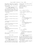 Kapoor (mk9499) – oldmidterm 01 – Turner – (60230) 1 This print-out should have 22 questions. Multiple-choice questions may continue on the next column or page – find all choices before answering. at (85 cm, 0.0). The Coulomb constant is 9 × 109 N m2 /C2 . Calculate the magnitude of the force on the charge at the origin. Correct answer: 0.13928 N. 001 10.0 points Two spheres, fastened to “pucks”, are riding on a frictionless airtrack. Sphere “1” is charged with 1 nC, and sphere “2” is charged with 3 nC. Both objects have the same mass. 1 nC is equal to 1 × 10−9 C. As they repel, Explanation: 1. sphere “2” accelerates 3 times as fast as sphere “1”. 2. sphere “1” accelerates 9 times as fast as sphere “2”. 3. sphere “2” accelerates 9 times as fast as sphere “1”. 4. they have the same magnitude of acceleration. correct 5. they do not accelerate at all, but rather separate at constant velocity. 6. sphere “1” accelerates 3 times as fast as sphere “2”. Explanation: The force of repulsion exerted on each mass is determined by F = 1 Q1 Q2 = ma 4 π ǫ0 r 2 where r is the distance between the centers of the two spheres. ~ 12 k = kF ~ 21 k kF Since both spheres have the same mass and are subject to the same force, they have the same acceleration. 002 10.0 points Three equal charges of 3 µC are in the x-y plane. One is placed at the origin, another is placed at (0.0, 99 cm), and the last is placed Let : q = 3 µC = 3 × 10−6 C , (x1 , y1 ) = (0, 99 cm) = (0, 0.99 m) , (x2 , y2 ) = (85 cm, 0) = (0.85 m, 0) and (x0 , y0 ) = (0, 0) . The electric fields are ke q + y12 9 × 109 N m2 /C2 3 × 10−6 C = 0 + (0.99 m)2 = 27548.2 N/C , and ke q Ex = 2 x2 + y22 9 × 109 N m2 /C2 3 × 10−6 C = (0.85 m)2 + 0 = 37370.2 N/C , Thus q Ey = E= x21 Ex2 + Ey2 and q Ex2 + Ey2 = 3 × 10−6 C q · (27548.2 N/C)2 + (37370.2 N/C)2 F = qE = q = 0.13928 N . 003 10.0 points Two identical small charged spheres hang in equilibrium with equal masses as shown in the figure. The length of the strings are equal and the angle (shown in the figure) with the vertical is identical. The acceleration of gravity is 9.8 m/s2 and the value of Coulomb’s constant is 8.98755 × 109 N m2 /C2 . Kapoor (mk9499) – oldmidterm 01 – Turner – (60230) vertical directions must separately add up to zero: X Fx = T sin θ − Fe = 0 X Fy = T cos θ − m g = 0 . 0. 1 5m 5◦ 0.03 kg 0.03 kg Find the magnitude of the charge on each sphere. Correct answer: 4.4233 × 10−8 C. Explanation: Let : L = 0.15 m , m = 0.03 kg , θ = 5◦ . and L q m θ a m q From the right triangle in the figure above, we see that a sin θ = . L Therefore a = L sin θ = (0.15 m) sin(5◦ ) = 0.0130734 m . The separation of the spheres is r = 2 a = 0.0261467 m . The forces acting on one of the spheres are shown in the figure below. Fe = m g tan θ = (0.03 kg) 9.8 m/s2 tan(5◦ ) = 0.0257217 N , for the electric force. From Coulomb’s law, the electric force between the charges has magnitude |q|2 |Fe | = ke 2 , r where |q| is the magnitude of the charge on each sphere. Note: The term |q|2 arises here because the charge is the same on both spheres. This equation can be solved for |q| to give s |Fe | r 2 |q| = ke s (0.0257217 N) (0.0261467 m)2 = (8.98755 × 109 N m2 /C2 ) = 4.4233 × 10−8 C . 004 10.0 points A circular arc has a uniform linear charge density of 9 nC/m. The value of the Coulomb constant is 8.98755 × 109 N · m2 /C2 . y θ ◦ Fe From the second equation in the system mg above, we see that T = , so T can be cos θ eliminated from the first equation if we make this substitution. This gives a value 74 T T cos θ 2 2. 5 θ T sin θ mg Because the sphere is in equilibrium, the resultant of the forces in the horizontal and m x Kapoor (mk9499) – oldmidterm 01 – Turner – (60230) What is the magnitude of the electric field at the center of the circle along which the arc lies? Correct answer: 38.9437 N/C. Explanation: Let : λ = 9 nC/m = 9 × 10−9 C/m , ∆θ = 74◦ , and r = 2.5 m . θ is defined as the angle in the counterclockwise direction from the positive x axis as shown in the figure below. ◦ r 37 consider the right-half of the arc (beginning on the positive y axis and extending towards the positive x axis) and multiply the answer by 2. Note: The upper angular limit θ = 90◦ . The lower angular limit θ = 90◦ − 37◦ = 53◦ , is the angle from the positive x axis to the right-hand end of the arc. ! Z ◦ λ 90 E = −2 ke sin θ dθ ̂ r 53◦ = −2 ke θ ~ E First, position the arc symmetrically around the y axis, centered at the origin. By symmetry (in this rotated configuration) the field in the x direction cancels due to charge from opposites sides of the y-axis, so Ex = 0 . For a continuous linear charge distribution, Z ~ = ke dq r̂ E r2 In polar coordinates dq = λ (r dθ) , where λ is the linear charge density. The positive y axis is θ = 90◦ , so the y component of the electric field is given by dEy = dE sin θ . Note: By symmetry, each half of the arc about the y axis contributes equally to the electric field at the origin. Hence, we may just λ [cos (53◦ ) − cos (90◦ )] ̂ . r Since ke 37 ◦ 3 λ = (8.98755 × 109 N · m2 /C2 ) r (9 × 10−9 C/m) × (2.5 m) = 32.3552 N/C , E = −2 (32.3552 N/C) × [(0.601815) − (0)] ̂ = −38.9437 N/C ̂ ~ = 38.9437 N/C . kEk ~ in Alternate Solution: Just solve for kEk a straight forward manner, positioning the beginning of the arc on the positive x axis (as shown in the original figure in the question). θ is still defined as the angle in the counterclockwise direction from the positive x axis. ! Z ◦ ke λ 74 Ex = − cos θ dθ ı̂ r 0◦ ke λ [sin (74◦ ) − sin (0◦ )] ı̂ r = −(32.3552 N/C) × [(0.961262) − 0.0] ı̂ = [−31.1018 N/C] ı̂ , ! Z ◦ ke λ 74 Ey = − sin θ dθ ̂ r 0◦ =− ke λ [cos (0◦ ) − cos (74◦ )] ̂ r = −(32.3552 N/C) × [1.0 − (0.275637)] ̂ = [−23.4369 N/C] ̂ , =