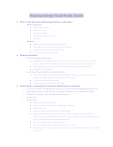 Pharmacology Final Study Guide ● What to worry about when administering medications to older adults? ○ ○ ● Adverse drug events ■ Adverse drug reactions ■ Medication errors ■ Therapeutic failures ■ Adverse drug withdrawal events ■ Overdoses Adherence ■ Patient may not fully understand drug regimen ■ Non Adherence may cause underdosing of overdosing ■ Medication education extremely important ■ Lack of prescriptions drug coverage What does the FDA do? ○ US Food and Drug Administration ■ Established Critical Path Initiative, a national strategy “to drive innovation in the scientific processes through which medical products are developed, evaluated, and manufactured.” ○ ■ improving the prevention, diagnosis, and treatment of rare and neglected disorders ■ Standardized OTC labeling Good Clinical Practice (GCP) Consolidated Guideline ■ International ethical and scientific quality standard for designing, conducting, monitoring, auditing, recording, analyzing, and reporting clinical research ● ■ Provide consumers with information ■ Described benefits and risks with OTC drug Understand how to properly give an intradermal administration of a medication. ○ Locations are chosen so an inflammatory reaction can be observed. Must be lightly pigmented, free of lesions, hairless, such as ventral mid forearm, clavicular area of the chest, or scapular area of back ○ Needle: 25 to 27 gauge, ¼ to ½ inch long, tuberculin syringe ○ Syringe: 1mL ○ Administration ■ Perform hand hygiene and gloves ■ Cleanse area with a circular motion using aseptic technique ■ Hold the skin taut. ■ Insert the needle, bevel up, at a 10- to 15-degree angle ■ Inject the medication slowly to form a bleb (or wheal). A small amount is injected so the volume will not interfere with bleb formation or cause a systemic reaction. If the bleb does not appear, the needle has been injected subcutaneously. ■ Remove the needle slowly, and do not recap it. ■ Do not massage the area, and instruct the patient not to do so. ■ Mark the area with a pen, and ask the patient not to wash it off until the response can be “read” by an HCP. ■ It is not recommended to put an adhesive bandage over the testing site because it can alter the results of the test. ■ Assess for allergic reaction in 24 to 72 hours; measure the diameter of any local reaction. For tuberculin testing, measure only the indurated area; do not include the area of erythema in the measurement ● Know your 6 rights of administration and how to best identify a patient. ○ ○ ○ Right Patient ■ Verify patient with 2 forms of identification ■ Compare patients stayed name and birthdate w/ patient's ID band and MAR ■ Scan patients barcode on their ID band ■ Check color coding on patients ID band ■ Verify patient's name with family member if present ■ Check for “name-alert” sticker when 2 patients have save name Right Drug ■ Scan medication label ■ Check that order is prescribed by licensed health care provider ■ Read drug label three time ■ Be familiar with patients health record, allergies, lab result, and vital signs ■ Know why the patients is receiving medication and if correct for patients diagnosis ■ Check dose calculations ■ Know beginning and ending date of medication Right Dose ■ Verify dosage calculation ■ Verify that drug is safe for patients ■ Unit dose method, in which drugs are individually wrapped and labeled for single-dose use for each patient ○ ○ ○ Right Time ■ Use health care agency policy ■ Use of military time reduced errors ■ Drug affected by food are given I h ac or I h pc ■ Give food with drugs that irritate the stomach ■ Check for scheduled procedures ■ Check expiration date ■ Administer antibiotics at even intervals ■ Hold antihypertensives prior to dialysis if ordered Right Route ■ Necessary for adequate absorption ■ Assess patients ability to swallow oral medication ■ Do not crush of mix medications without validation or consultation ■ Offer patients water but not juice (iron may be taken with orange juice ) ■ Use aseptic technique Right Documentation ■ Record drug administration immediately ● ■ Record drug name, dose, route, time, date, nurses signature or initials according to policy ■ Document patient's response to drug especially analgesics, sedatives, and antimetics Know you IV fluids and the different types. When to use and why. ○ Types of Intravenous Solutions: ■ ■ Crystalloids ● Used for short-term maintenance therapy ● Treat dehydration and electrolyte imbalance Major classifications: ● Isotonic: solutions have the same approximate osmolality as ECF or plasma. Because of the osmotic equilibrium, water does not enter or leave the cell; therefore there is no effect on red blood cells (RBCs). Primarily used for hydration and to expand ECF volume, because the fluid remains in the intravascular space. ● Hypotonic: solutions exert less osmotic pressure than ECF, which allows water to move into the cell. IV infusions of hypotonic solutions result in an increased solute concentration in the intravascular space, causing fluid to move into the intracellular and interstitial spaces. Excessive infusion of hypotonic solutions may cause hemolysis, decreased blood pressure, and decreased IVF volume. ● Hypertonic: solutions exert greater osmotic pressure than ECF, resulting in a higher solute concentration than the serum. When administered, hypertonic IVF fluids pull water from the interstitial space to the ECF via osmosis and cause cell shrinkage. Patients receiving hypertonic solutions must be monitored carefully for signs of circulatory overload (because of the increase in ECF volume). ○ Examples: Dextrose 5 in water (D5W), Normal saline solution (0.9% NSS), Lactated Ringers ■ Colloids ● Plasma expanders ● Contain protein ● Because of their size, the particles are unable to pass through the