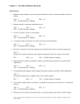 Chapter 1—The Role of Business Research TRUE/FALSE 1. Business research attempts to provide accurate information in order to reduce uncertainty in decisionmaking. ANS: T PTS: 1 NAT: AACSB: Reflective Thinking REF: p. 5 2. Business research is more than conducting surveys. ANS: T PTS: 1 NAT: AACSB: Reflective Thinking REF: p. 5 3. The term “research” means “to search again.” ANS: T PTS: 1 NAT: AACSB: Reflective Thinking REF: p. 5 4. A researcher needs to be objective in order to provide accurate information. ANS: T PTS: 1 NAT: AACSB: Reflective Thinking REF: p. 6 5. Research is restricted to for-profit organizations and should not be used by non-profit organizations. ANS: F Research also includes efforts that assist nonprofit organizations that exist to satisfy social needs. PTS: 1 REF: p. 6 NAT: AACSB: Reflective Thinking 6. Applied business research is conducted to address a specific business decision for a specific firm or organization. ANS: T PTS: 1 NAT: AACSB: Reflective Thinking REF: p. 6 7. The procedures and techniques used by applied researchers and basic researchers differ substantially. ANS: F All research, whether basic or applied, involves the scientific method. PTS: 1 REF: p. 7 NAT: AACSB: Reflective Thinking 8. The scientific method used by researchers is essentially the same process in business as it is in physical sciences. ANS: T PTS: 1 NAT: AACSB: Reflective Thinking REF: p. 7 9. When ideas can be stated in researchable terms, we reach the analysis stage of the scientific method. © 2010 Cengage Learning. All Rights Reserved. May not be scanned, copied or duplicated, or posted to a publicly accessible website, in whole or in part. ANS: F At this point, we reach the hypothesis stage of the scientific method. PTS: 1 REF: p. 7 NAT: AACSB: Reflective Thinking 10. In product-oriented firms, research focuses primarily on customers. ANS: F A product-oriented firm prioritizes decision making in a way that emphasizes technical superiority in the product, so research focuses on technicians and experts in the field. PTS: 1 REF: p. 8 NAT: AACSB: Reflective Thinking 11. The first stage in the decision-making process associated with the development and implementation of a business strategy is to evaluate the available courses of action. ANS: F The first stage is identifying problems or opportunities. PTS: 1 REF: p. 9 NAT: AACSB: Reflective Thinking 12. Evaluation research is the formal, objective measurement and appraisal of the extent a given activity, project, or program has achieved its objectives. ANS: T PTS: 1 NAT: AACSB: Reflective Thinking REF: p. 10 MULTIPLE CHOICE 1. _____ is the application of the scientific method in searching for the truth about business phenomena. a. Induction b. Application research c. Business research d. Science ANS: C PTS: 1 NAT: AACSB: Reflective Thinking REF: p. 5 2. All of the following are important aspects of the business research process EXCEPT: a. searching for and collecting information b. idea and theory development c. analyzing data d. making results publicly available ANS: D PTS: 1 NAT: AACSB: Reflective Thinking REF: p. 5 3. Which of the following are the two types of research based on the specificity of its purpose? a. basic and applied b. scientific and non-scientific c. cross-sectional and qualitative d. quantitative and secondary © 2010 Cengage Learning. All Rights Reserved. May not be scanned, copied or duplicated, or posted to a publicly accessible website, in whole or in part. ANS: A PTS: 1 NAT: AACSB: Reflective Thinking REF: p. 6 4. _____ is conducted to address a specific business decision for a specific firm or organization. a. Basic business research b. Qualitative business research c. Quantitative business research d. Applied business research ANS: D PTS: 1 NAT: AACSB: Reflective Thinking REF: p. 6 5. Which type of research tries to verify a theory or to learn more about a concept and is not intended to solve a particular business problem? a. performance-monitoring research b. basic research c. total quality management d. the scientific method ANS: B PTS: 1 NAT: AACSB: Reflective Thinking REF: p. 7 6. Which of the following refers to the way researchers go about using knowledge and evidence to reach objective conclusions about the real world? a. qualitative method b. quantitative method c. scientific method d. primary method ANS: C PTS: 1 NAT: AACSB: Reflective Thinking REF: p. 7 7. Which of the following is a business orientation? a. production-oriented b. product-oriented c. marketing-oriented d. all of the above ANS: D PTS: 1 NAT: AACSB: Reflective Thinking REF: p. 8 8. Wal-Mart is the low-cost leader in retail. This company achieves this success by prioritizing efficiency in its distribution process. Which business orientation is Wal-Mart exhibiting when it prioritizes efficiency and effectiveness of the product process (i.e., getting products into the stores) in making decisions? a. production-orientated b. product-oriented c. marketing-oriented d. technically-oriented ANS: A PTS: 1 NAT: AACSB: Reflective Thinking REF: p. 8 9. A firm focusing more on how to provide value to customers than on the physical product or production process is embracing which orientation? © 2010 Cengage Learning. All Rights Reserved. May not be scanned, copied or duplicated, or posted to a publicly accessible website, in whole or in part. a. b. c. d. marketing orientation quality orientation external orientation value orientation ANS: A PTS: 1 NAT: AACSB: Reflective Thinking REF: p. 8 10. Which of the following is the LAST step in developing and implementing a business strategy? a. analyzing firm performance b. evaluating the course of action c. identifying problems or opportunities d. diagnosing and assessing a course of action ANS: B PTS: 1 NAT: AACSB: Reflective Thinking REF: p. 9 11. The Chief Financial Officer (CFO) requested research to determine if the financing option the company implemented for a new capital investment init