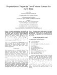 Preparation of Papers in Two Column Format for ISEC 2018 One Author Institution, oneauthor@schoolname.edu If multiple authors from the same institution First Author and Second Author University of Virginia, firstauthor, secondauthor@virginia.edu Example: Gabrielle Doe, James Johns, and Amanda Smith University of Virginia, gd, jj, as@virginia.edu or multiple authors from multiple institutions First Author, Second Author, and Third Author firstauthor@virginia.edu, secondauthor@vt.edu, thirdauthor@gmu.edu Abstract - All papers must include an abstract and a set of index terms. The Abstract and Index Terms text must be 10 point Times New Roman, fully justified and contained within one paragraph. Begin the Abstract with the word Abstract - in Times New Roman italic. The entire Abstract should be in bold. Do not indent. Use a standard dash after the word “Abstract.” Do not cite references or use abbreviations in the abstract. It should be approximately 200 - 275 words. Index Terms - About four, placed in alphabetical order, key words or phrases that are separated by commas (e.g., Camera-ready, FIE format, Preparation of papers, Twocolumn format). Italic for the label “Index Terms”; otherwise, regular font. PAGE LAYOUT These instructions serve as a template for Microsoft Word (Office 2013 used), and give you the basic guidelines for preparing camera-ready papers. Please follow the instructions provided in these guidelines carefully to ensure legibility and uniformity. The guidelines are designed to reduce the amount of white space and maximize the amount of text that can be placed on one page. Please do not use LaTex. Follow these instructions to help you use this template more easily. When you use this file, select “Print Layout” from the “View” menu (View | Print Layout), which will allow you to see the two-column format. You may then type over sections by using the cut and paste commands listed under the Edit menu (Edit | Paste) into this document and/or by using the markup styles. Finally, enable “Show” (paragraph mark icon) so you can see the various formatting features. We suggest you use this document as your guide and simply cut and paste your text over the material in this document. If you MUST use Google docs, focus on your content and when that’s set, cut and paste it into this template. OVERALL FORMAT SPECIFICATIONS All papers must use the following layout: 8 1/2” x 11” paper size Portrait Orientation Two-column format for the body of the document Top margin: 0.75” Bottom margin: 1.0” Left and right margins: 0.75” Spacing between columns: 0.20” Column width: 3.4” Indents - first paragraph of section - none Indents - all other paragraphs - .25” Header and Footers 0.5 inches Set all these values using the “FILE” Menu. Select the Page Setup – Margins tab option and click on portrait orientation option. The above margin dimensions can then be inserted into the Page Setup Window. Now select the Paper tab and click on the paper size and select the letter paper size. Next, select the Page Setup – Layout tab and set the Header and Footer to 0.5 inches. To set the column width, click anywhere in the document within the two column format, then Select the Columns for the Format menu. Click on the Equal Column Width and set the spacing. Make sure you also apply these changes to “This Section.” When formatting your document, make consistent use of punctuation marks and spelling. Either American or British formatting is acceptable, but it must be consistent, not a mix. For example, Putting all commas and periods either inside (American) or outside (British) of quotation marks Use of single/double quotes, e.g. 'service center' (British) rather than “service center” (American). Spellings such as grey and disc (British) vs. gray and disk (American). PAPER TITLE AND AUTHOR DATA The title and author data is in a one-column format, while the rest of the paper is in a two-column format. To accomplish this, a continuous section break is used. There are two ways to setup this format: 1) Use this template as a guide or 2) make your own. If you wish to make your own, it is suggested that you open a new document and begin by inserting the title and author information in the standard onecolumn format. Please adhere to the following style guidelines: Paper title: This information should be placed at the top of the first page in 24 point, Times New Roman in Title case, and centered. This style is defined under the style menu of this document as “TITLE.” It is NOT bold. Insert a 11 point blank line between the Title and the Author listing. Author listing: 11 point, Times New Roman, centered. This style is defined under the style menu of this document as “Author.” Include only the author names in the author listing. Use the full first name for the authors. If an author is submitting more than one paper please provide the same name on both papers. Be consistent as the name you provide on the paper will be what is used to create the author index for the proceedings. Author Affiliation: 10 point, Times New Roman, centered under the author name. This style is defined under the style menu of this document as “Affiliations.” List the institution and email address. If the email address becomes a live link, you must disable it. (If the email address turns blue, that means the hyperlink is active. To remove: right click on the address and select Edit Hyperlink and then Remove Link.) There are 3 basic types of setups possible: One author, multiple authors from the same institution, and multiple authors from multiple institutions. If the paper has one author use the affiliation layout as shown at the top of this document where all the author information is listed under the paper title. For multiple authors, from the same institution, list the common university, then list the email addresses at the end in the same order as the authors appear in the Author List