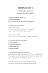 CRIMINAL LAW 1 Course Outline and Cases Atty. JOYCE VILLANUEVA, REB, CPS I. General Principles of Criminal Law A. Nature and definition Ient v. Tullett Prebon, G.R. No. 189158, 11 January 2017 B. Characteristics of Criminal Law 1. General (Art. 2, RPC) Minucher v. Scalzo, G.R. No. 142396, 11 February 2003 Liang v. People, G.R. No. 125865, 28 January 2000 2. Territorial (Art.2, RPC) People v. Tulin, G.R. No. 111709, 30 August 2001, 364 SCRA 10 3. Prospective (Article 21 and 22, RPC) A. Effects of repeal B. Sources of Criminal Law 1. Revised Penal Code 2. Special Penal Laws C. Constitutional Limitations on Criminal Law 1. Due process and Equal protection (Art. 3, Sec. 1, 1987 Constitution) White Light Corp. v. City of Manila, G.R. No. 122846, 20 January 2009 Garcia v. Drilon, G.R. No. 179267, 25 June 2013 2. Freedom of expression (Art. 3, Sec. 4, 1987 Constitution) Guingguing v. People, G.R. No. 128959, 30 September 2005 1 3. Freedom of religion (Art. 3, Sec. 5, 1987 Constitution) Estrada v. Escritor, AM No. P-02-1651, 22 June 2006, 492 SCRA 1 4. No excessive fines, nor cruel, degrading or inhuman punishment (Art. 3, Sec. 19, 1987 Constitution) People v. Echagaray, G.R. No. 117472, 7 February 1997, 267 SCRA 682 Corpuz v. People, G.R. No. 180016, 29 April 2014 5. Non-imprisonment for debt or non-payment of poll tax ( Art. 3, Sec. 19, 1987 Constitution) 6. Bill of attainder (Art. 3, Sec. 22, 1987 Constitution) People v. Ferrer, L-32613-14, 27 December 1972, 48 SCRA 382 7. Ex-post facto laws (Art. 3, Sec. 22, 1987 Constitution) US v. Diaz Conde, L-18208, 14 February 1922 D. Construction and interpretation 1. Liberally in favor of the accused 2. Spanish text of the RPC prevails over the English text People v. Abilong, L-1960, 26 November 1948 3. Retroactive application when favourable to the accused 4. Prescribed but undeserved penalties (Art. 5, RPC) People v. Formigones, L-3246, 29 November 1950 5. Suppletory application of RPC to Special Penal Laws (Art. 10, RPC) Ladonga v. People, G.R. No. 141066, 17 February 2005 People v. Simon, G.R. No. 93028, 29 July 1994 2 II. General Principles of Criminal Liability A. Felony, defined (Art. 3, RPC) B. Elements of criminal liability 1. Physical element (Actus reus) a. Act b. Omission People v. Sylvestre and Atienza (G.R. No. 35748, 14 December 1931, 56 Phil. 353) People v. Talingdan, L-32126, 6 July 1978, 84 SCRA 19 2. Mental element (Mens rea) a. Deliberate intent (Dolo) Manuel v. People, G.R. No. 165842, 29 November 2005 i. Elements of dolo ii. General and specific intent People v. Puno, G.R. No. 97471, 17 February 1993, 219 SCRA 85 People v. Delim, G.R. No. 142773, 28 January 2003 iii. Mistake of fact US v. Ah Chong, G.R. No. 5272, 19 March 1910, 15 Phil. 488 People v. Oanis, G.R. No. 47722, 27 July 1943, 74 Phil. 257 iv. Malum prohibitum as exception to the requirement of mens rea Padilla v. Dizon, AC No. 3086, 23 February 1988, 158 SCRA 127 Magno v. CA, G.R. No. 96132, 26 June 1992, 210 SCRA 475 Garcia v. CA, G.R. No. 157171, 14 March 2006, 484 SCRA 617 v. Intent distinguished from motive b. Constructive intent (Culpa) Art. 3 and 365 3 i. Elements ii. Imprudence or lack of skill ii. iii. Negligence or lack of foresight People v. Pugay, L-74324, 17 November 1988, 167 SCRA 439 Ivler v. San Pedro, G.R. No. 172716, 17 November 2010 b. Transferred intent (Art. 4, par. 1) i. Aberratio ictus People v. Guillen, L-1477, 18 January 1950, 85 Phil. 307 ii. Error in personae People v. Sabalones, G.R. No. 123485, 31 August 1998, 294 SCRA 751 iii. Praeter intentionem People vs. Albuquerque, G.R. No. 38773, 19 December 1933, 59 Phil. 150 3. Concurrence 4. Resulting harm 5. Causation Bataclan v. Medina, L-10126, 22 October 1957, 102 Phil. 181 People v. Iligan, G.R. No. 75369, 26 November 1990 Urbano v. Intermediate Appellate Court, G.R. No. 72964, 7 January 1988 B. Impossible Crimes (Art. 4, Par. 2) Intod v. CA, G.R. No. 103119, 21 October 1992, 215 SCRA 52 People v. Saladino, L-3634, 30 May 1951, 89 Phil. 807 4 Jacinto v. People, G.R. No. 162540, 13 July 2009. III. Stages of execution A. Attempted Stage B. Frustrated Stage C. Consummated crimes US v. Eduave, G.R. No. 12155, 2 February 1917, 36 Phil. 209 Rivera v. People, G.R. No. 166326, 25 January 2006, 480 SCRA 188 Baleros v. People, G.R. No. 138033, 22 February 2006, 483 SCRA 10 D. Stages of execution in relation to specific felonies 1. Theft Valenzuela v. People, G.R. No. 160188, 21 June 2007 2. Illegal Trespass People v. Lamahang, L-43530, 3 August 1935, 61 Phil. 703 3. Physical Injuries, Homicide, and Murder People v. Borinaga, G.R. No. 33463, 18 December 1930, 55 Phil. 433 People v. Kalalo, G.R. No. 39303-05, 17 March 1934, 59 Phil. 715 People v. Trinidad, G.R. No. 79123-25, 9 January 1989, 169 SCRA 51 Martinez v. CA, G.R. No. 168827, 13 April 2007 Mondragon v. People, L-17666, 30 June 1966, 17 SCRA 476 People v. Sy Pio, L-5848, 30 April 1954, 94 Phil. 885 4. Robbery People v. Dio, L-36461, 29 June 1984, 130 SCRA 151 People v. Salvilla, G.R. No. 86163, 26 April 1990 5. Rape People v. Orita, G.R. No. 88724, 3 April 1990, 184 SCRA 105 People v. Campuhan, G.R. No. 129433, 30 March 2000 5 6. Arson US v. Valdes, L-14128, 10 December 1918 E. Conspiracy and proposals to commit a felony (Art. 8) 1. Conspiracy and proposal, when punished? 2. As a manner of incurring criminal liability People v. Aguilos, G.R. No. 121828, 27 June 2003 IV. Circumstances that affect criminal liability A. Justifying circumstances 1. Defense of self, relatives, and strangers Manaban v. Court of Appeals, G.R. No. 150723, 11 July 2006 Senoja v. People, G.R. No. 160341, 19 October 2004 People v. Decena, G.R. No. 107874, 4 August 1994, 235 SCRA 67 People v. Dela Cruz, G.R. No. 128359, 6 December 2000, 347 SCRA 100 People v. Jaurigue, G.R. No. 384, 21 February 1946, 76 Phil. 174 People v. Narvaez, L-33466-67, 20 April 1983, 121 SCRA 389 (see also dissents of J. Abad Santos and J. Gutierrez, Jr.) Sabang v. People, G.R. No. 168818, 9 March 200