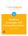 A McGraw-Hill Education Partnership GRADE 6 Grammar, Language, and Composition Guide: Student Edition G6-12_SETE_Covers.indd 3 12/11/15 11:11 PM Grammar, Language, and Composition Guide: Student Edition TABLE OF CONTENTS Grammar and Language Workbook Grammar and Composition Handbook G6-12_SETE_Covers.indd 4 12/11/15 11:11 PM Grammar and Language Workbook G RADE 6 Grade 6 Grammar and Language Workbook_TP.indd 1 4/2/15 4:51 PM Copyright © McGraw-Hill Education All rights reserved. The contents, or parts thereof, may be reproduced in print form for non-profit educational use with MHE/Study Sync, provided such reproductions bear copyright notice, but may not be reproduced in any form for any other purpose without the prior written consent of McGraw-Hill Education, including, but not limited to, network storage or transmission, or broadcast for distance learning. Send all inquiries to: McGraw-Hill Education 2 Penn Plaza New York, NY 10121 Grade 6 Grammar and Language Workbook_CP.indd ii 4/2/15 3:07 PM Contents Handbook of Definitions and Rules .........................1 Troubleshooter ........................................................23 Part 1 Grammar ......................................................45 Unit 1 Subjects, Predicates, and Sentences 1.1 Kinds of Sentences: Declarative and Interrogative .........................................47 1.2 Kinds of Sentences: Exclamatory and Imperative ............................................49 1.3 Subjects and Predicates: Simple and Complete ..............................................51 1.4 Subjects and Predicates: Compound ..........53 Simple and Compound Sentences .............55 1.5 Sentence Fragments ....................................57 1.6 Run-On Sentences.......................................59 1.7 Unit 1 Review ..........................................................61 Cumulative Review .................................................62 Copyright © McGraw-Hill Education. Permission is granted to reproduce for classroom use. Unit 2 Nouns Nouns: Proper and Common ......................63 2.8 2.9 Nouns: Singular and Plural ........................65 2.10 Nouns: Collective ........................................67 2.11 Nouns: Possessives .....................................69 Unit 2 Review ..........................................................71 Cumulative Review: Units 1–2................................72 Unit 3 Verbs Action Verbs and Direct Objects ................75 3.12 3.13 Action Verbs and Indirect Objects .............77 3.14 Transitive and Intransitive Verbs ...............79 3.15 Linking Verbs and Predicate Words ..........81 Verb Tenses: Present, Past, and Future .....83 3.16 3.17 Main Verbs: Principal Parts ........................85 Helping Verbs..............................................87 3.18 3.19 Verb Forms: Present Progressive and Past Progressive....................................89 Perfect Tenses: Present and Past ................91 3.20 3.21 Irregular Verbs I...........................................93 Irregular Verbs II .........................................95 3.22 3.23 Irregular Verbs III ........................................97 More Practice with Verb Forms..................99 3.24 Unit 3 Review ........................................................101 Cumulative Review: Units 1–3 .............................102 Unit 4 Pronouns Personal Pronouns ....................................105 4.25 Using Pronouns Correctly.........................107 4.26 4.27 Pronouns and Antecedents.......................109 4.28 Possessive Pronouns .................................111 4.29 Indefinite Pronouns ..................................113 Unit 4 Review ........................................................115 Cumulative Review: Units 1-4 ..............................116 Unit 5 Adjectives 5.30 Adjectives and Proper Adjectives ............119 Articles and Demonstratives.....................121 5.31 Adjectives That Compare..........................123 5.32 5.33 Special Adjectives That Compare ............125 Unit 5 Review ........................................................127 Cumulative Review: Units 1–5..............................128 Unit 6 Adverbs 6.34 Adverbs Modifying Verbs .........................131 6.35 Adverbs Modifying Adjectives and Adverbs ..............................................133 Adverbs That Compare .............................135 6.36 6.37 Irregular Comparative Forms....................137 6.38 Telling Adjectives and Adverbs Apart I .........................................139 6.39 Telling Adjectives and Adverbs Apart II........................................141 6.40 Avoiding Double Negatives ......................143 Unit 6 Review ........................................................145 Cumulative Review: Units 1– 6 .............................146 Unit 7 Prepositions, Conjunctions, and Interjections 7.41 Prepositions...............................................149 7.42 Prepositional Phrases................................151 7.43 Pronouns After Prepositions.....................153 7.44 Prepositional Phrases as Adjectives and Adverbs ..............................................155 7.45 Telling Prepositions and Adverbs Apart ...........................................157 Conjunctions .............................................159 7.46 7.47 Interjections...............................................161 Unit 7 Review ........................................................163 Cumulative Review: Units 1–7..............................164 Unit 8 Subject-Verb Agreement 8.48 Making Subjects and Verbs Agree ............167 8.49 Subject Pronouns and Verb Agreement.........................................169 8.50 Locating the Subject..................................171 8.51 Agreement with Compound Subjects......................................................173 Unit 8 Review ........................................................175 Cumulative Review: 
