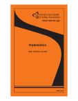 Hydraulics Safe Practice Guide ihsa.ca Infrastructure Health & Safety Association Safe Practice Guide Hydraulics Foreword This Guide designates the practices that should be followed by the member firms of the Infrastructure Health & Safety Association (IHSA) when operating hydraulic equipment. This Guide is not designed as a training manual, but contains information, best practices and general recommendations deemed appropriate to perform a job in a responsible and safe manner. The contents of this Safe Practice Guide, including all advice, recommendations and procedures, are provided as a service by the Infrastructure Health & Safety Association. No representation of any kind is made to any persons whatsoever with regard to the accuracy, completeness or sufficiency of the information contained herein. Any and all use of or reliance on this Safe Practice Guide and the information contained herein is solely and entirely at the user's risk. The user also acknowledges that the safe practices described herein may not satisfy all requirements of Ontario law. The Infrastructure Health & Safety Association wishes to express its appreciation to those who assisted in the preparation of this Guide. All rights reserved. This publication may not be reproduced, in whole or in part, without the express written permission of the copyright owner. 1 12/05 2 TABLE OF CONTENTS INTRODUCTION 5 PURPOSE 6 SECTION I GENERAL 100 Hydraulics 8 101 Operator’s Maintenance Schedule 8 102 Daily Vehicle Check 8 103 Checking Holding Valves 11 104 Setting Up Hydraulic Aerial Equipment at Job Site 18 Emergency Lowering Procedure – Competent Personnel Only 21 105 106 Removing Air from the System (After Emergency Lowering, Hose Failure, or Changing Oil) 22 107 Checking Governor – Digger/Derricks (gas operated engines) 23 108 Hydraulic Parking Devices 23 109 Air Brakes 24 110 Securing for Travel 25 111 Insulated and Non-insulated Booms 25 112 Transportation of Personnel and Material 26 SECTION II VEHICLES 200 General 30 3 SECTION III AERIAL DEVICES 300 General 36 301 Hydraulic Aerial Devices Maintenance Checklist 40 Recommended Dielectric Testing for Insulated Aerial Devices 42 302 303 Recommended Field Testing Procedures for Insulated Aerial Devices 44 304 Cleaning Insulated Portions 47 305 Cleaning Inside Insulated Booms 48 306 Aerial Ladders 49 SECTION IV DIGGER/DERRICK TRUCKS 400 General 52 401 Digger/Derrick Truck Maintenance 57 402 Hydraulic Pressure Gauges 57 403 Throttle Control 58 404 Directional Controls 58 405 Digger Operation 60 406 Auger Care and Use 60 407 Storing Fibreglass Boom and Top Controls 64 408 Winch Lines 65 409 Hand Signals for Hoisting Operations 71 410 Hand Signals for Overhead and Underground Operations 72 Hydraulic Tools 73 411 4 Safe Practice Guide HYDRAULICS INTRODUCTION Hydraulic power, as we know it today, can be defined as a means of power transmission. In the case of hydraulic aerial equipment, the mechanical power of the vehicle’s engine generally drives a hydraulic pump, which transmits hydraulic power to the various components. These components then convert the hydraulic power into mechanical power. Since the introduction of hydraulics to the utilities field, developments have advanced at a rapid pace. With these new developments and greater use, a better understanding of the equipment is necessary for safe operation. Many people have wondered about the widespread use of hydraulics in modern equipment since there are many well known mechanical, pneumatic and electrical devices which could be used. The answer lies in the flexibility and versatility of fluids under pressure for modifying motion and transmitting power. A fluid can change its shape to conform to any surface, it can be divided into parts so that each part can do work according to its size, and then it can be reunited to work as a whole. It can move rapidly through a small opening and slowly through a large opening at the same time. No other medium has the ability of hydraulics to transmit a maximum of power in a minimum of bulk and weight with the same degree of positiveness, accuracy and flexibility. This is why it lends itself so well to applications in modern equipment. 5 PURPOSE It is not the intent of this guide to train personnel as qualified mechanics, but rather to give pertinent information and general recommendations deemed necessary to help personnel operate hydraulic equipment in a safe and efficient manner. UNITS OF MEASURE Metric to Imperial conversions are approximations only. In this Guide, the conversion for the unit of measurement for force is pounds (lbs.) to kilograms (kg). For energy, it is foot pounds (ft.-lbs.) to kilogram metres (kg-m). These units of measurement can easily be converted to the International System of Units (IS) by using the following: 1 pound (lb.) = 4.45 newtons (N) 1 kilogram (kg) = 9.81 newtons (N) 1 foot pound (ft.-lb.) = 1.36 newton metres (N-m) 1 kilogram metre (kg-m) = 9.81 newton metres (N-m) 6 SECTION I GENERAL 100 HYDRAULICS 101 OPERATOR'S MAINTENANCE SCHEDULE 102 DAILY VEHICLE CHECK 103 CHECKING HOLDING VALVES 104 SETTING UP HYDRAULIC AERIAL EQUIPMENT AT JOB SITE 105 EMERGENCY LOWERING PROCEDURES – COMPETENT PERSONNEL ONLY 106 REMOVING AIR FROM THE SYSTEM (AFTER EMERGENCY LOWERING, HOSE FAILURE, OR CHANGING OIL) 107 CHECKING GOVERNOR – DIGGER/DERRICKS 108 HYDRAULIC PARKING DEVICES 109 AIR BRAKES 110 SECURING FOR TRAVEL 111 INSULATED AND NON-INSULATED BOOMS 112 TRANSPORTATION OF PERSONNEL AND MATERIAL 7 SECTION I GENERAL 100 HYDRAULICS Hydraulic equipment is a great asset to the utility industry. But if it is abused or used improperly, safety goes down and cost factors go up due to damaged hydraulic equipment or breakdowns. When new or unfamiliar equipment is obtained, the Occupational Health and Safety Act (OHSA) requires the operator to read the owner’s manual and receive instructions in the safe and proper use of the equipment. This helps give a better unders