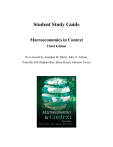 Student Study Guide Macroeconomics in Context Third Edition Neva Goodwin, Jonathan M. Harris, Julie A. Nelson, Pratistha Joshi Rajkarnikar, Brian Roach, Mariano Torras Copyright © 2018 Global Development And Environment Institute, Tufts University. Copyright release is hereby granted to instructors for educational purposes. Students may download the Student Study Guide from http://www.gdae.org/micro. Comments and feedback are welcomed: Global Development And Environment Institute Tufts University Medford, MA 02155 http://ase.tufts.edu/gdae E-mail: gdae@tufts.edu CHAPTER 1 ECONOMIC ACTIVITY IN CONTEXT Macroeconomics in Context (Goodwin, et al.) Chapter Overview This chapter introduces you to the basic topics of macroeconomics, and presents the main macroeconomic goals: 1) living standards growth, 2) stability and security, and 3) financial, social, and ecological sustainability. The chapter highlights that the goal of living standards growth may or may not contribute to the general goal of human wellbeing. The chapter also provides a brief overview of the major historical developments in macroeconomics, from classical economics, to Keynesian and monetarist economics, and finally to the challenges in the 21st century. Chapter Objectives After reading and reviewing this chapter, you should be able to: 1. Distinguish the concerns of macroeconomics from microeconomics. 2. Define the difference between normative and positive questions. 3. Discuss the relationship between economics and well-being. 4. Identify and describe the three main macroeconomic goals. 5. Identify and distinguish the major historical traditions of economic thought. Key Terms economics microeconomics macroeconomics recession unemployment inflation macroeconomy global economy economic actor (agent) positive questions normative questions assets well-being living standards growth economic growth economic development Chapter 1 – Economic Activity in Context labor productivity business (trade) cycle technological progress conscious consumption restorative development precautionary principle contextual economics classical economics division of labor specialization capitalists laissez-faire economy Say’s Law aggregate demand Keynesian economics monetarism 1 Active Review Fill in the Blank 1. While the study of economic activities of individuals, households, and business at the sub-national level is the concern of , the study of economic activities of the national and global level is the concern of . 2. Questions about facts or “how things are” are about values and “how things should be” are questions, while questions questions. 3. The three main macroeconomic goals identified in this chapter are , and . , 4. The process of moving from a situation of poverty and deprivation to a situation of increased production and plenty is referred to as . 5. The increase in the level of production in a country or region is called growth while improvements in diet, housing, medical attention, education, working conditions, access to care, transportation, communication, entertainment, etc. is called growth. 6. The fluctuations in the level of production, including recessions on the one hand and booms on the other hand, is called . 7. The goal that recognizes a serious responsibility to future generations is the goal of . 8. The school of economics that is associated with the idea that individual self-interest is a positive force and that governments should let markets function without interference is called . 9. The economist who argued that the market mechanism can fail by leaving insufficient demand and that governments could intervene by increasing aggregate demand was named . 10. The school of thought that argued that governments should aim for steadiness in the money supply rather than play an active role is called . True or False 11. Economic phenomena such as the rate of unemployment and inflation are studied in microeconomics. Chapter 1 – Economic Activity in Context 2 12. Living standards growth is defined as increases in the level of production in a country or region. 13. During a recession, the economy often has higher rates of unemployment, whereas during a boom, the economy often has higher rates of inflation. 14. Monetarists believe the government should change money supply to boost aggregate demand during a recession. 15. According to the Keynesians, the government can reduce unemployment through changes in its spending and taxation policies. Short Answer 16. What types of questions would concern microeconomics, versus macroeconomics? 17. How have economists traditionally defined “economic growth,” and how is that different from “living standards growth”? 18. What are the “three basic economic questions” that economists often address when examining how much economic output is produced? 19. Once countries already have a high level of production, how might they achieve living standards growth? 20. Why is the goal of stability and security important to many people? What problems typically emerge during periods of instability? 21. The goal of sustainability requires that we address what three questions? 22. Explain how the classical school views the role of markets and government intervention in fighting business cycles. 23. Explain how Keynesian economics views the role of markets and government intervention in fighting business cycles. 24. Explain how Monetarist economics views the role of markets and government intervention in fighting business cycles. 25. Describe some of the key changes that the U.S. economy has undergone since the 1980s. 26. What two developments are demanding new ways of looking at the economic world in the 21st century? What kinds of sustainability questions do they raise? Chapter 1 – Economic Activity in Context 3 Self Test 1. With what kinds of topics does macroeconomics concern itself? a. b. c. d. e. Economic activities of individual firms, households, and other organizations For