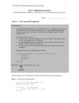 Starting Out with Programming Logic and Design 1 Lab 5: Repetition Structures This lab accompanies Chapter 5 of Starting Out with Programming Logic & Design. Name: ___________________________ Lab 5.1 – For Loop and Pseudocode Critical Review A count-controlled loop iterates a specific number of times. Although you can write this with a while or a do-while loop as performed in Lab 5, most programming languages provide a loop known as the for loop. This loop is specifically designed as a countcontrolled loop. The process of the for loop is: • The loop keeps a count of the number of times that it iterates, and when the count reaches a specified amount, the loop stops. • A count-controlled loop uses a variable known as a counter variable to store the number of iterations that it has performed. • Using the counter, the following three actions take place (Initialization, Test, and Increment). The pseudocode for a for statement looks as follows: For counterVariable = startingValue to maxValue Statement Statement Statement Etc. End For Help Video: Double click the file to view video This lab requires you to implement a count-controlled loop using a for statement. Step 1: Examine the following code. Constant Integer MAX_HOURS = 24 Declare Integer hours For hours = 1 to MAX_HOURS Display “The hour is “, hours End For Starting Out with Programming Logic and Design 2 Step 2: Explain what you think will be displayed to the screen in Step 1. (Reference: For loop, page 186): ______________________________________________________________ ______________________________________________________________ ______________________________________________________________ Step 3: Write a for loop that will print 60 minutes to the screen. Complete the missing lines of code. Constant Integer MAX_MINUTES = ______________________ Declare Integer minutes For _____________ = 1 to ___________________ Display ________________________________________ End For Step 4: Write a for loop that will print 60 seconds to the screen. Complete the missing lines of code. Constant Integer MAX_SECONDS = ______________________ Declare Integer seconds For _____________ = 1 to ___________________ Display ________________________________________ End For Step 5: For loops can also be used to increment by more than one. Examine the following code. Constant Integer MAX_VALUE = 10 Declare Integer counter For counter = 0 to MAX_VALUE Step 2 Display “The number is “, counter End For Step 6: Explain what you think will be displayed to the screen in Step 5. (Reference: Incrementing by Values Other than 1, page 190): ______________________________________________________________ ______________________________________________________________ ______________________________________________________________ Step 7: Write a for loop that will display the numbers starting at 20, then 40, then 60, and continuing the sequence all the way to 200. Constant Integer MAX_VALUE = _________________ Declare Integer counter For counter = ____________ to MAX_VALUE Step ____________ Starting Out with Programming Logic and Design Display “The number is “, _____________________ End For Step 8: For loops can also be used when the user controls the number of iterations. Examine the following code: Declare Integer numStudents Declare Integer counter Display “Enter the number of students in class” Input numStudents For counter = 1 to numStudents Display “Student #”, counter End For Step 9: Explain what you think will be displayed to the screen in Step 8. (Reference: Letting the User Control the Number of Iterations, page 194): ______________________________________________________________ ______________________________________________________________ ______________________________________________________________ Step 10: For loops are also commonly used to calculate a running total. Examine the following code. Declare Integer counter Declare Integer total = 0 Declare Integer number For counter = 1 to 5 Display “Enter a number: “ Input number Set total = total + number End For Display “The total is: “, total Step 11: Explain what you think will be displayed to the screen in Step 10. (Reference: Calculating a Running Total, page 201): ______________________________________________________________ ______________________________________________________________ ______________________________________________________________ Step 12: Write the missing lines for a program that will allow the user to enter how many ages they want to enter and then find the average. Declare Integer counter Declare Integer totalAge = 0 Declare Real averageAge = 0 3 Starting Out with Programming Logic and Design Declare Integer age Declare Integer number Display “How many ages do you want to enter: “ Input ___________________________ For counter = 1 to number Display “Enter age: “ Input ___________________ Set totalAge = _________________ + ________________ End For averageAge = ___________________ / ___________________ Display “The average age is “, _______________________ 4 Starting Out with Programming Logic and Design 5 Lab 5.2 –For Loop and Flowcharts Critical Review A flowchart for a for loop is similar to that of a while loop, where a condition controls the iterations. Here is an example of a for loop using a flowcharting tool such as Visio. Constant Integer MAX_HOURS = 24 Declare hours Set hours = 1 hours <= MAX_HOURS True Display “The hour is “, hour hours = hours + 1 False In Raptor, the for loop structure is a bit different because the programmer has less control over the loop symbol. Notice these difference in the following flowchart: a. The variables in are still declared and initialized to the same starting values. b. The condition is now hours > MAX_HOURS rather than hours <= MAX_HOURS. This is done because in Raptor, False or No statements continue the code and True or Yes statements end the code. This is the opposite as demonstrated i