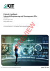 Module Handbook Industrial Engineering and Management B.Sc. SPO 2015 Summer term 2023 W Date: 28/02/2023 PR EV IE KIT DEPARTMENT OF ECONOMICS AND MANAGEMENT KIT – The Research University in the Helmholtz Association www.kit.edu Table Of Contents Table Of Contents 1. General information ..........................................................................................................................................................................................................9 1.1. Structural elements ..........................................................................................................................................................................................................9 1.2. Begin and completion of a module ............................................................................................................................................................................. 9 1.3. Module versions ................................................................................................................................................................................................................ 9 1.4. General and partial examinations .............................................................................................................................................................................. 9 1.5. Types of exams ...................................................................................................................................................................................................................9 1.6. Repeating exams .............................................................................................................................................................................................................10 1.7. Examiners .......................................................................................................................................................................................................................... 10 1.8. Additional accomplishments ......................................................................................................................................................................................10 1.9. Further information ...................................................................................................................................................................................................... 10 1.10. Contact ............................................................................................................................................................................................................................ 10 2. Study plan........................................................................................................................................................................................................................... 11 3. New study plan as of winter semester 2021/2022............................................................................................................................................... 12 4. Qualification objectives of the Bachelor's degree in Industrial Engineering and Management ........................................................... 13 5. Key Skills............................................................................................................................................................................................................................. 14 6. Field of study structure.................................................................................................................................................................................................. 15 6.1. Preliminary Exam ........................................................................................................................................................................................................... 15 6.2. Bachelor's Thesis ............................................................................................................................................................................................................ 15 6.3. Internship .......................................................................................................................................................................................................................... 15 6.4. Business Administration ..............................................................................................................................................................................................16 6.5. Economics ..........................................................................................................................................................................................................................16 6.6. Informatics ........................................................................................................................................................................................................................ 16 6.7. Operations Research .................................................................................................................................................................................................... 17 6.8. Engineering Sciences .................................................................................................................................................................................................... 17 6.9. Mathematics .....................................................................................................................................................................................................................18 6.10. Statistics ..........................................................................................