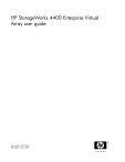 HP StorageWorks 4400 Enterprise Virtual Array user guide Part number: 514018-001 Fifth edition: March 2009 Legal and notice information © Copyright 2009 Hewlett-Packard Development Company, L.P. The information contained herein is subject to change without notice. The only warranties for HP products and services are set forth in the express warranty statements accompanying such products and services. Nothing herein should be construed as constituting an additional warranty. HP shall not be liable for technical or editorial errors or omissions contained herein. WARRANTY STATEMENT: To obtain a copy of the warranty for this product, see the warranty information website: http://www.hp.com/go/storagewarranty Microsoft, Windows, Windows XP, and Windows NT are U.S. registered trademarks of Microsoft Corporation. Java is a US trademark of Sun Microsystems, Inc. Contents About this guide ................................................................................. 11 Intended audience .................................................................................................................... Related documentation .............................................................................................................. Document conventions and symbols ............................................................................................. HP technical support ................................................................................................................. Customer self repair .................................................................................................................. Rack stability ............................................................................................................................ Subscription service .................................................................................................................. HP websites ............................................................................................................................. Documentation feedback ........................................................................................................... 11 11 12 13 13 13 13 14 14 1 EVA4400 hardware ......................................................................... 15 Physical layout of the storage system ........................................................................................... 15 M6412 disk enclosures ............................................................................................................. 16 Enclosure layout ................................................................................................................. 16 I/O modules ..................................................................................................................... 17 I/O module status indicators ......................................................................................... 18 Fiber optic Fibre Channel cables .......................................................................................... 19 Copper Fibre Channel cables .............................................................................................. 19 Fibre Channel disk drives .................................................................................................... 20 Disk drive status indicators ............................................................................................ 20 Disk drive blank ........................................................................................................... 21 Controller enclosures ................................................................................................................. 21 Management module .......................................................................................................... 43 Controller status indicators ......................................................................................................... 24 HSV300 controller status LEDs .............................................................................................. 25 Power supplies ......................................................................................................................... 25 Fan module .............................................................................................................................. 26 Battery module ......................................................................................................................... 27 HSV controller cabling ............................................................................................................... 27 Storage system racks ................................................................................................................ 28 Rack configurations ............................................................................................................ 28 Power distribution ..................................................................................................................... 29 PDUs ................................................................................................................................ 30 PDU 1 ........................................................................................................................ 30 PDU 2 ........................................................................................................................ 30 PDMs ............................................................................................................................... 31 Rack AC power distribution ................................................................................................. 31 Rack System/E power distribution components ....................................................................... 32 Rack AC power distribution .......................................................................................