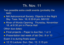 12:15 Lecture: Sun. Dec. 12, 3:15 pm