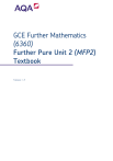 GCE Further Mathematics (6360) Further Pure Unit 2 (MFP2) Textbook Version: 1.5 MFP2 Textbook– A-level Further Mathematics – 6360 Further Pure 2: Contents 4 Chapter 1: Complex numbers 1.1 1.2 1.3 1.4 1.5 Introduction The general complex number The modulus and argument of a complex number The polar form of a complex number Addition, subtraction and multiplication of complex numbers of the form x + iy 1.6 The conjugate of a complex number and the division of complex numbers of the form x +iy 1.7 Products and quotients of complex numbers in their polar form 1.8 Equating real and imaginary parts 1.9 Further consideration of |z2 – z1| and arg(z2 –z1) 1.10 Loci on Argand diagrams Introduction Quadratic equations Cubic equations Relationship between the roots of a cubic equation and its coefficients Cubic equations with related roots An important result Polynomial equations of degree n Complex roots of polynomial equations with real coefficients Introduction Summation of series by the method of differences Summation of series by the method of induction Proof by induction extended to other areas of mathematics 22 22 24 27 28 31 32 33 39 40 45 48 53 Chapter 4: De Moivre’s theorem and its applications 4.1 4.2 4.3 4.4 4.5 4.6 4.7 10 11 13 14 15 38 Chapter 3: Summation of finite series 3.1 3.2 3.3 3.4 9 21 Chapter 2: Roots of polynomial equations 2.1 2.2 2.3 2.4 2.5 2.6 2.7 2.8 5 5 6 8 De Moivre’s theorem Using de Moivre’s theorem to evaluate powers of complex numbers Application of de Moivre’s theorem in establishing trigonometric identities Exponential form of a complex number The cube roots of unity The nth roots of unity The roots of z n , where is a non-real number 54 56 60 69 71 74 77 continued overleaf 2 MFP2 Textbook– A-level Further Mathematics – 6360 Further Pure 2: Contents (continued) Chapter 5: Inverse trigonometrical functions 5.1 5.2 5.3 5.4 5.5 Introduction and revision The derivatives of standard inverse trigonometrical functions Application to more complex differentiation Standard integrals integrating to inverse trigonometrical functions Applications to more complex integrals 85 86 89 91 94 96 102 Chapter 6: Hyperbolic functions 6.1 Definitions of hyperbolic functions 6.2 Numerical values of hyperbolic functions 6.3 Graphs of hyperbolic functions 6.4 Hyperbolic identities 6.5 Osborne’s rule 6.6 Differentiation of hyperbolic functions 6.7 Integration of hyperbolic functions 6.8 Inverse hyperbolic functions 6.9 Logarithmic form of inverse hyperbolic functions 6.10 Derivatives of inverse hyperbolic functions 6.11 Integrals which integrate to inverse hyperbolic functions 6.12 Solving equations Chapter 7: Arc length and area of surface of revolution 103 104 105 106 110 111 114 115 116 119 122 125 131 7.1 Introduction 7.2 Arc length 7.3 Area of surface of revolution 132 133 137 Answers to the exercises in Further Pure 2 143 3 MFP2 Textbook– A-level Further Mathematics – 6360 Chapter 1: Complex Numbers 1.1 Introduction 1.2 The general complex number 1.3 The modulus and argument of a complex number 1.4 The polar form of a complex number 1.5 Addition, subtraction and multiplication of complex numbers of the form x iy 1.6 The conjugate of a complex number and the division of complex numbers of the form x iy 1.7 Products and quotients of complex numbers in their polar form 1.8 Equating real and imaginary parts 1.9 Further consideration of z2 z1 and arg( z2 z1 ) 1.10 Loci on Argand diagrams This chapter introduces the idea of a complex number. When you have completed it, you will: know what is meant by a complex number; know what is meant by the modulus and argument of a complex number; know how to add, subtract, multiply and divide complex numbers; know how to solve equations using real and imaginary parts; understand what an Argand diagram is; know how to sketch loci on Argand diagrams. 4 MFP2 Textbook– A-level Further Mathematics – 6360 1.1 Introduction You will have discovered by now that some problems cannot be solved in terms of real numbers. For example, if you use a calculator to evaluate 64 you get an error message. This is because squaring every real number gives a positive value; both (8) 2 and (8) 2 are equal to 64. As 1 cannot be evaluated, a symbol is used to denote it – the symbol used is i. 1 i i 2 1 It follows that 64 64 1 64 1 8i. 1.2 The general complex number The most general number that can be written down has the form x iy , where x and y are real numbers. The term x iy is a complex number with x being the real part and y the imaginary part. So, both 2 3i and 1 4i are complex numbers. The set of real numbers, (with which you are familiar), is really a subset of the set of complex numbers, . This is because real numbers are actually numbers of the form x 0i. 5 MFP2 Textbook– A-level Further Mathematics – 6360 1.3 The modulus and argument of a complex number Just as real numbers can be represented by points on a number line, complex numbers can be represented by points in a plane. The point P(x, y) in the plane of coordinates with axes Ox and Oy represents the complex number x iy and the number is uniquely represented by that point. The diagram of points in Cartesian coordinates representing complex numbers is called an Argand diagram. y P(x, y) r θ O x If the complex number x iy is denoted by z, and hence z x iy, z (‘mod zed’) is defined as the distance from the origin O to the point P representing z. Thus z OP r. The modulus of a complex number z is given by z x 2 y 2 The argument of z, arg z, is defined as the angle between the line OP and the positive x-axis – usually in the range (π, –π). The argument of a complex number z is given y by arg z , where tan x You must be careful when x or y, or both, are negative. 6 MFP2 Textbook– A-level Further Mathematics – 6360 Example 1.3.1 Find the modulus and argument of the complex number 1 3i. y Solution P 1, 3 The point P representing this number, z, is shown on the diagram. 3 