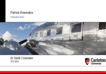 Particle Kinematics Introduction Dr. Derek I Gransden 20-2-2023 Learning objective Be able to find the kinematic quantities (position, displacement, velocity, and acceleration) of a particle traveling along a straight path. ECOR 1048: Dynamics 2 Applications The motion of large objects, such as rockets, airplanes, or cars, can often be analyzed as if they were particles. Why? If we measure the altitude of this rocket as a function of time, how can we determine its velocity and acceleration? ECOR 1048: Dynamics 3 Applications A sports car travels along a straight road. Can we treat the car as a particle? If the car accelerates at a constant rate, how can we determine its position and velocity at some instant? ECOR 1048: Dynamics 4 An Overview of Mechanics Mechanics: The study of how bodies react to forces acting on them. Statics: The study of bodies in equilibrium. Dynamics: 1. Kinematics – concerned with the geometric aspects of motion 2. Kinetics – concerned with the forces causing the motion ECOR 1048: Dynamics 5 Particle Kinematics Rectilinear Kinematics: Continuous Motion 20-2-2023 Continuous Motion A particle travels along a straight-line path defined by the coordinate axis s. The position of the particle at any instant, relative to the origin, O, is defined by the position vector r, or the scalar s. Scalar s can be positive or negative. The typical unit is meter (m). The displacement of the particle is defined as its change in position. Vector form: r = r’ - r Scalar form: s = s’ - s The total distance traveled by the particle, sT, is a positive scalar that represents the total length of the path over which the particle travels. ECOR 1048: Dynamics 7 Velocity Velocity is a measure of the rate of change in the position of a particle. It is a vector quantity (it has both magnitude and direction). The magnitude of the velocity is called speed, with unit m/s. The average velocity of a particle during a time interval t is vavg = r /t The instantaneous velocity is the time-derivative of position. v = dr /dt Speed is the magnitude of velocity: v = ds/dt Average speed is the total distance traveled divided by elapsed time: (vsp)avg = sT /t ECOR 1048: Dynamics 8 Acceleration Acceleration is the rate of change in the velocity of a particle. It is a vector quantity. Typical units are m/s2. The instantaneous acceleration is the time derivative of velocity. Vector form: a = dv/dt Scalar form: a = dv/dt = d2s/dt2 Acceleration can be positive (speed increasing) or negative (speed decreasing). As the text indicates, the derivative equations for velocity and acceleration can be manipulated to get: a ds = v dv ECOR 1048: Dynamics 9 Summary of Kinematic Relations • Differentiate position to get velocity and acceleration. v = ds/dt ; a = dv/dt or a = v dv/ds • Integrate acceleration for velocity and position. Position: Velocity: v dv vo t = adt o v or vdv vo s = ads so s t so o ds = v dt • Note that so and vo represent the initial position and velocity of the particle at t = 0. ECOR 1048: Dynamics 10 Constant Acceleration The three kinematic equations can be integrated for the special case when acceleration is constant (a = ac) to obtain very useful equations. A common example of constant acceleration is gravity; i.e., a body freely falling toward earth. In this case, ac = g = 9.81 m/s2 downward. These equations are: v t dv = a dt c vo o s t ds = v dt so v v = vo + act yields s = so + v ot + (1/2)act2 yields 2 v2 = (vo) + 2ac(s - so) o s v dv = ac ds vo yields so ECOR 1048: Dynamics 11 Example Given: A particle travels along a straight line to the right with a velocity of v = ( 4 t – 3 t2 ) m/s where t is in seconds. Also, s = 0 when t = 0. Find: The position and acceleration of the particle when t = 4 s. Plan: Establish the positive coordinate, s, in the direction the particle is traveling. Since the velocity is given as a function of time, take a derivative of it to calculate the acceleration. Conversely, integrate the velocity function to calculate the position. ECOR 1048: Dynamics 12 Concept Quiz 3 m/s 5 m/s t=2s t=7s 1. A particle moves along a horizontal path with its velocity varying with time as shown. The average acceleration of the particle is? A) 0.4 m/s2 B) 0.4 m/s2 C) 1.6 m/s2 D) 1.6 m/s2 2. A particle has an initial velocity of 30 m/s to the left. If it then passes through the same location 5 seconds later with a velocity of 50 m/s to the right, the average velocity of the particle during the 5 s time interval is? A) 10 m/s B) 40 m/s C) 16 m/s D) 0 m/s ECOR 1048: Dynamics 13 Example Given: A particle is moving along a straight line such that its velocity is defined as v = (-4s2) m/s, where s is in meters. Find: The velocity and acceleration as functions of time if s = 2 m when t = 0. Plan: Since the velocity is given as a function of distance, use the equation v=ds/dt. 1) Express the distance in terms of time. 2) Take a derivative of it to calculate the velocity and acceleration. ECOR 1048: Dynamics 14 Attention Quiz 1. A particle has an initial velocity of 3 m/s to the left at s0 = 0 m. Determine its position when t = 3 s if the acceleration is 2 m/s2 to the right. A) 0.0 m C) 18.0 m B) 6.0 m D) 9.0 m 2. A particle is moving with an initial velocity of v = 12 m/s and constant acceleration of 3.78 m/s2 in the same direction as the velocity. Determine the distance the particle has traveled when the velocity reaches 30 m/s. A) 50 m C) 150 m B) 100 m D) 200 m ECOR 1048: Dynamics 15 Ugly aircraft competition • Vote on the the ugly aircraft (next slide) • Scale of 1 – 10 • 1 = Not the ugliest I’ve ever seen, but not winning any beauty contests • 10 = I wouldn’t touch that with a 10 ft (3.048 m) pole. ECOR 1048: Dynamics 16 Ugly aircraft - Deux Ponts ECOR 1048: Dynamics 17 Particle Kinematics Rectilinear Kinematics: Erratic Motion 20-2-2023 Learning Objective Be able to calculate position, velocity, and acceleration of a particle using graphs. ECOR 1048: Dynamics 