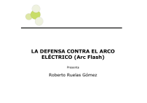LA DEFENSA CONTRA EL ARCO ELÉCTRICO (Arc Flash) Presenta Roberto Ruelas Gómez ARCO ELÉCTRICO Puntos a tratar: 1. Datos del Arco Eléctrico 2. Estadísticas de accidentes 3. Normatividad 4. Protecciones en los aparatos 5. Equipo de Protección Personal 6. Etiquetas Preventivas 7. Conclusiones ARCO ELÉCTRICO 1.Datos del Arco Eléctrico 2. Estadísticas de accidentes 3. Normatividad 4. Protecciones en los aparatos 5. Equipo de Protección Personal 6. Etiquetas Preventivas 7. Conclusiones ARCO ELÉCTRICO Datos ARCO ELÉCTRICO Es la rápida emisión de energía causada por una falla eléctrica que rompe el dieléctrico (aire) y que se sostiene por el plasma generado. ARCO ELÉCTRICO Datos ARCO ELÉCTRICO El arco eléctrico es solamente limitado por la capacidad del sistema en el punto y la impedancia del arco mismo. ARCO ELÉCTRICO Datos EXPANSIÓN VOLUMÉTRICA El cobre vaporizado provoca una expansión volumétrica de 40000 a 1. ARCO ELÉCTRICO Datos ENERGÍA TÉRMICA Las temperaturas que alcanza el arco eléctrico provocado por una falla son del orden de 20000 C, lo que puede quemar a una persona a 3 metros, y fundirle la ropa sintética a la piel. ARCO ELÉCTRICO Datos ENERGÍA ACÚSTICA La energía acústica de un arco eléctrico causa sordera temporal. ARCO ELÉCTRICO Datos PRESIÓN La onda de presión provocada por un arco eléctrico causado por una falla puede empujar a las personas varios metros del lugar de la escena. ARCO ELÉCTRICO Datos ESCOMBROS Las piezas desprendidas de los equipos al momento de una falla con arco eléctrico pueden viajar hasta unos 400 km/h, lo que puede dañar todos los órganos de una persona. ARCO ELÉCTRICO Datos LUZ MUY INTENSA La luz de un arco eléctrico causa daños a la vista, incluyendo la ceguera. ARCO ELÉCTRICO 1. Datos del Arco Eléctrico 2.Estadísticas de accidentes 3. Normatividad 4. Protecciones en los aparatos 5. Equipo de Protección Personal 6. Etiquetas Preventivas 7. Conclusiones ARCO ELÉCTRICO Estadísticas de Accidentes En los Estados Unidos: • Cada año se tienen 30 000 accidentes con electricidad que no son fatales. 80% de los cuales son causados por ARCO ELÉCTRICO. • 2 000 trabajadores son tratados cada año en clínicas especiales para quemaduras. ARCO ELÉCTRICO Estadísticas de Accidentes En los Estados Unidos: • Los trabajadores quemados duran en promedio 1.5 días en el hospital, y aún más en casa. ARCO ELÉCTRICO 1. Datos del Arco Eléctrico 2. Estadísticas de accidentes 3.Normatividad 4. Protecciones en los aparatos 5. Equipo de Protección Personal 6. Etiquetas Preventivas 7. Conclusiones ARCO ELÉCTRICO Normatividad En México, se deja a las empresas la responsabilidad de proteger a los trabajadores de acuerdo con los ambientes de trabajo. Fuente: SECRETARÍA DEL TRABAJO Y PREVISIÓN SOCIAL – NOM-017-STPS-2008 ARCO ELÉCTRICO Normatividad SECRETARÍA DEL TRABAJO Y PREVISIÓN SOCIAL – NOM-017-STPS-2008 5.2 Identificar y analizar los riesgos de trabajo a los que están expuestos los trabajadores por cada puesto de trabajo y área del centro laboral. ARCO ELÉCTRICO Normatividad SECRETARÍA DEL TRABAJO Y PREVISIÓN SOCIAL – NOM-017-STPS-2008 5.3 Determinar el equipo de protección personal, que deben utilizar los trabajadores en función de los riesgos de trabajo a los que puedan estar expuestos ARCO ELÉCTRICO Normatividad SECRETARÍA DEL TRABAJO Y PREVISIÓN SOCIAL – NOM-017-STPS-2008 5.8 Identificar y señalar las áreas del centro de trabajo en donde se requiera el uso obligatorio de equipo de protección personal. ARCO ELÉCTRICO Normatividad SECRETARÍA DEL TRABAJO Y PREVISIÓN SOCIAL – NOM-017-STPS-2008 6.2 Utilizar el equipo de protección personal proporcionado por el patrón de acuerdo a la capacitación que recibieron para tal efecto. ARCO ELÉCTRICO Normatividad En los Estados Unidos, las siguientes organizaciones han establecido normas de seguridad sobre el ARCO ELÉCTRICO: • IEEE 1584 - 2002 Guide to Performing Arc-Flash Hazard Calculations • OSHA Standards 29-CFR, Part 1910 • NFPA 70-2002 National Electrical Code. • NFPA 70E-2000 Standard for Electrical Safety Requirements for Employee Workplaces. ARCO ELÉCTRICO Normatividad IEEE El estándar IEEE C22007 aplica a los trabajadores de las empresas eléctricas. ARCO ELÉCTRICO Normatividad OSHA Establece la reglamentación para el uso correcto del Equipo Personal de Protección (EPP) en todos los EUA. ARCO ELÉCTRICO Normatividad OSHA La reglamentación en las empresas es un plan de 6 puntos: 1.- Debe tener y operar, un programa de seguridad con responsabilidades definidas. 2.- Cálculos para obtener el grado de peligrosidad del ARCO ELÉCTRICO. 3.- Uso del Equipo Protector Personal (EPP) … ARCO ELÉCTRICO Normatividad OSHA … 4.- Capacitación en los peligros del ARCO ELÉCTRICO. 5.- Uso de las herramientas apropiadas para el trabajo seguro. 6.- Etiquetas en los equipos, colocadas por los propietarios. ARCO ELÉCTRICO Normatividad NFPA NFPA introdujo en el Código Nacional Eléctrico (NEC) el requisito de uso de su estándar NFPA 70E donde se establecen procedimientos de trabajo y de marcado con letreros todos los sitios peligrosos donde se puede tener contacto con equipos energizados. ARCO ELÉCTRICO Normatividad NFPA 70E Este estándar establece categorías de riesgo por ARCO ELÉCTRICO. Categorías que van del cero con poco o nada de riesgo, al 4, con muy alto riesgo. Y, define los EPP de acuerdo a esas categorías. ARCO ELÉCTRICO Normatividad SECRETARÍA DEL TRABAJO Y PREVISIÓN SOCIAL – NOM-017-STPS-2008 El equipo de protección personal seleccionado deberá, preferentemente, contar con la certificación emitida por un organismo de certificación, acreditado y/o aprobado en los términos de la Ley Federal sobre Metrología y Normalización, ... ARCO ELÉCTRICO 1. Datos del Arco Eléctrico 2. Estadísticas de accidentes 3. Normatividad 4.Protecciones en los aparatos 5. Equipo de Protección Personal 6. Etiquetas Preventi