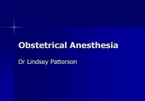 Obstetrical Anesthesia Dr Lindsey Patterson Objectives Overview of maternal physiology Analgesia for labor and delivery Regional anesthesia Anesthesia concerns in the parturient Study MCQs with explanations Physiological ChangesCVS Almost all the changes seen are due to high levels of progesterone and include: 35% Total Blood Volume heart rate 15 beats/min 40% CO 30% SV 15% SVR 500ml/min blood flow to uterus venous return from legs AORTOCAVAL COMPRESSION (mechanical) Impact of CVS changes Patients with pre-existing cardiac disease may decompensate either during labor or immediately post delivery. This corresponds to the time of maximal CO Approx 400 – 600ml blood loss occurs at delivery Supine hypotensive syndrome Aortocaval Compression Physiological Changes Resp oxygen consumption ~ 20% (100% in labor) due to increased metabolic rate minute ventilation ~ 50% (due to increased tidal volume) arterial pCO2 FRC causing a decrease in oxygen reserves Impact of Resp. changes Uptake of inhalational agents is faster Decreased FRC and increased oxygen consumption increase the risk of hyoxia with apnea Preoxygenation prior to GA less effective Physiological ChangesAirway Venous engorgement of airway mucosa Edema of airway mucosa Worsening of Mallampati score in labor Impact of Airway Changes Trauma to upper airway with suctioning, intubation Increased incidence of difficult/failed intubation x10 Require smaller ETT Physiological ChangesCNS Decrease in MAC by 25 – 40% Decreased dose of Local Anesthetic requirement for regional techniques More rapid onset of neural blockade Impact of CNS Changes Decreased inhalation anesthetic agent requirements Decreased dose of local anesthetic for same effect Increased risk of local anesthetic toxicity Physiological Changes GIT Increased gastric fluid volume Increased gastric fluid acidity Decreased competency of lower esophageal sphincter Impact of GIT Changes Increased risk of aspiration All parturients are a “full stomach” Aspiration prophylaxis recommended for C/S – 0.3M Sodium citrate 30 mls po – Ranitidine 50mg iv – Metoclopramide 10mg iv Analgesia for labor and delivery Where is the pain coming from? Is pain bad in labor? Analgesic options Pain of childbirth Nociceptive pathways involved T10 – L1 during labor plus S2-S4 for delivery Is pain bad in labor? Psychological stress can cause: increased levels of catecholamines hyperventilation These may result in decreased uterine blood flow leading to hypoxia and acidosis in the fetus Factors affecting pain perception in labor Mental preparation Family support Medical support Cultural expectations Underlying mental status Parity Size and presentation of the fetus Maternal pelvic anatomy Duration of labor Medications Analgesia for labor and delivery Non-medication Inhalational Parenteral Regional Analgesia- Non medication options Breathing exercises Autohypnosis Acupuncture White Noise/ Music Massage/ walking TENS Water bath Inhalation Medications Nitronox: 50:50 mixture of oxygen and nitrous oxide Low dose Isoflurane in oxygen Advantages: on demand delivery, relatively safe Disadvantages: variable efficacy, nausea, drowsiness, neonatal depression Parenteral Medications Narcotics: meperidine, morphine fentanyl Advantages: relatively good analgesia Disadvantages: nausea, vomiting, sedation, neonatal depression (max. 2 hours after meperidine dose), short duration of action Regional techniques Epidural, spinal, combined spinal-epidural Advantages: excellent pain control, minimal impact on progress of labor with low doses, less drug transfer to fetus, improved uterine blood flow, decrease in birth trauma e.g. use of forceps, minimal neonatal depression Disadvantages: invasive technique, side effects (hypotension, headache, itching, nausea, urinary retention, limited mobility), nerve damage, infection Anesthesia in the parturient General considerations of the parturient undergoing surgery Obstetric surgery General considerations Altered physiology as mentioned Risks to the fetus: – Effect of the disease process/therapies – Possible teratogenicity of anesthetic agents – Intraoperative effects on uteroplacental blood flow – Increased risk of preterm labor/ risk of abortion Maternal considerations Altered physiology Altered response to anesthesia – Decrease in MAC – Increased sensitivity to neuraxial agents – Decreased plasma cholinesterase – Decreased protein binding (more free drug) – Limited drug information in parturients Fetal Considerations Teratogenicity: – Limited information due to impracticality of conducting trials with sufficient power – Guidelines based on a) effects on reproduction in animals; b) epidemiological surveys of OR personnel; c) studies of pregnancy outcomes in parturient undergoing ante partum surgery Nitrous oxide has been shown to have a teratogenic effect in rats during the first trimester No anesthetic agent is a proven teratogen in humans Anesthetic agents deemed safe include: thiopental,morphine, meperidine,fentanyl, succinylcholine, NDMRs Limiting nitrous oxide use but only if hypotension secondary to volatiles can be avoided Anesthetic management in the parturient should be directed to: – Avoidance of hypoxemia – Avoidance of hypotension – Avoidance of acidosis – Maintain PaCO2 in the normal range for the parturient – Minimize effects of aortocaval compression Anesthesia for Caesarean Section Preparation Preventing complications Choice of Anesthetic technique Effects on the fetus Preparation Premeds: antacid (sodium citrate) IV access and fluid bolus within 30 minutes of operating (avoid glucose containing fluids) Left lateral tilt with wedge under right pelvis Routine Monitors: ECG, NIBP, pulse oximeter, fetal monitoring Additional monitors for GAs: ETCO2, nerve stimulator, temp probe Preventing complications Aspiration prophylaxis Detailed airway assessment Fluid resuscitation/left lateral tilt to prevent hypotension Safe practice for pla