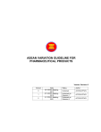 ASEAN VARIATION GUIDELINE FOR PHARMACEUTICAL PRODUCTS Version: Revision 2 Version 0 1 2 Date 19th PPWG Meeting 2012 27th PPWG Meeting 2019 31st PPWG Meeting 2021 Status Author Endorsed ACCSQ-PPWG Endorsed as Revision 1 Endorsed as Revision 2 ACCSQ-PPWG ACCSQ-PPWG ASEAN Variation Guideline for Pharmaceutical Products Revision 2 1 2 3 3.1 3.2 4 5 6 7 MaV-1 MaV-2 MaV-3 MaV-4 MaV-5 MaV-6 MaV-7 MaV-8 MaV-9 MaV-10 MaV-11 MaV-12 MaV-13 MaV-14 MaV-15 MaV-16 MaV-17 8 MiV-PA1 MiV-PA2 LIST OF CONTENTS INTRODUCTION SCOPE OF THIS GUIDELINE Definition Major Variation (MaV) Minor Variation (MiV-PA & MiV-N) PROCEDURE AND TIMELINE CHANGES LEADING TO A NEW PRODUCT REGISTRATION OTHERS MAJOR VARIATION (MaV) Change and/or additional indication/dosing regimen/patient population/inclusion of clinical information extending the usage of the product Change of content of product labeling Addition or replacement of alternative manufacturer/site of drug substance [where European Pharmacopoeial Certificate of Suitability (CEP) is not available] Addition or replacement of the manufacturing site of the drug product Addition or replacement of the alternative site for the primary packaging (direct contact with drug product) for sterile product Change of the specification drug substance [where European Pharmacopoeial Certificate of Suitability (CEP) is not available] and/or drug product Change of batch size of sterile drug product Change of batch size of non-sterile drug product Major change in the manufacturing process for the drug product Qualitative or quantitative change of excipient Quantitative change in the coating weight of tablets or weight and/or size of capsule shell for modified release oral dosage form Change in primary packaging material for sterile product a) Qualitative and quantitative composition and/or b) Type of container and/or c) Inclusion of primary packaging material Change or addition of pack size/fill volume and/or change of shape or dimension of container or closure for sterile solid and liquid drug product Inclusion or replacement of the solvent/diluent for the drug product Extension of shelf-life of the drug product Change of storage conditions of the drug product (Lowering from the approved storage condition) Major change of manufacturing process of the drug substance [where European Pharmacopoeial Certificate of Suitability (CEP) is not available] MINOR VARIATION PRIOR APPROVAL (MiV-PA) Change of drug product name Change of product labeling (in accordance to country specific labeling requirement) Page 1 1 1 1 1 2-3 3 3 4 4 5 6 7 8 8 9 10 11 12 13 14 14 15 15 16 17 17 i ASEAN Variation Guideline for Pharmaceutical Products Revision 2 MiV-PA3 MiV-PA4 MiV-PA5 MiV-PA6 MiV-PA7 MiV-PA8 MiV-PA9 MiV-PA10 MiV-PA11 MiV-PA12 MiV-PA13 MiV-PA14 MiV-PA15 MiV-PA16 MiV-PA17 MiV-PA18 MiV-PA19 MiV-PA20 MiV-PA21 MiV-PA22 MiV-PA23 MiV-PA24 MiV-PA25 MiV-PA26 MiV-PA27 MiV-PA28 LIST OF CONTENTS Addition or replacement of the company or party responsible for batch release Addition or replacement of alternative manufacturer/site of drug substance [where European Pharmacopoeial Certificate of Suitability (CEP) is available] Change of batch size of drug substance [where European Pharmacopoeial Certificate of Suitability (CEP) is not available] Change of in-process controls applied during the manufacture of the drug substance [including tightening and addition of new inprocess test and where European Pharmacopoeial Certificate of Suitability (CEP) is not available] Minor change of manufacturing process of the drug substance [where European Pharmacopoeial Certificate of Suitability (CEP) is not available] Change of the specification of drug substance Change of the test procedure of non-compendial drug substance Change of shelf-life or retest period for drug substance Change of storage condition for drug substance Revision of European Pharmacopoeial Certificate of Suitability (CEP) of drug substance Change of batch size of non-sterile drug product Reduction or removal of overage Qualitative or quantitative change of excipient Quantitative change in coating weight of tablets or weight and/or size of capsule shell for immediate release oral dosage form Change of the colouring agent/flavouring agent/capsule shell colour of the product Deletion of the solvent/diluent for the drug product Change of in-process controls applied during the manufacture of the drug product (including tightening and addition of new inprocess test) Minor change of the manufacturing process for non-sterile product Change of specifications of non compendial excipient Change of a test procedure for an excipient, including replacement of an approved test procedure by a new test procedure Change in the source of empty hard capsule Change of release and shelf-life specifications of the drug product Change of imprints, bossing or other markings on the tablets or printing on capsules including addition or change of inks used for product marking Change of dimensions and/or shape of tablets, capsules, suppositories or pessaries without change in qualitative and quantitative composition and mean mass Change in the test procedure of the drug product (including replacement or addition of a test procedure) Change in primary packaging material for non-sterile product a) Qualitative and quantitative composition and/or b) Type of container and/or c) Inclusion of primary packaging material Page 18 18 19 19 20 21 21 22 22 22 23 23 24 25 26 27 27 28 29 29 30 30 31 32 33 33 ii ASEAN Variation Guideline for Pharmaceutical Products Revision 2 MiV-PA29 MiV-PA30 MiV-PA31 MiV-PA32 MiV-PA33 MiV-PA34 MiV-PA35 MiV-PA36 9 MiV-N1 MiV-N2 MiV-N3 MiV-N4 MiV-N5 MiV-N6 MiV-N7 MiV-N8 MiV-N9 MiV-N10 MiV-N11 MiV-N12 MiV-N13 10 11 LIST OF CONTENTS Addition or replacement of a manufacturer for secondary packaging Change of pack size/fill volume and/or change of shape or dimension of container or closure for non-sterile product Change of outer carton pack sizes for a drug product Addition o