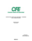 ESTRUCTURAS METÁLICAS MAYORES Y MENORES PARA SUBESTACIONES ESPECIFICACIÓN CFE JA100-57 AGOSTO 2011 REVISA Y SUSTITUYE A LA EDICIÓN DE FEBRERO 2008 MÉXICO ESTRUCTURAS METÁLICAS MAYORES Y MENORES PARA SUBESTACIONES ESPECIFICACIÓN CFE JA100-57 CONTENIDO 1 OBJETIVO _________________________________________________________________________ 1 2 CAMPO DE APLICACIÓN_____________________________________________________________ 1 3 NORMAS QUE APLICAN _____________________________________________________________ 1 4 DEFINICIONES _____________________________________________________________________ 2 4.1 Estructuras Metálicas Mayores________________________________________________________ 2 4.2 Estructuras Metálicas Menores _______________________________________________________ 2 4.3 Características Particulares __________________________________________________________ 2 5 CARACTERÍSTICAS Y CONDICIONES GENERALES ______________________________________ 2 5.1 Clasificación _______________________________________________________________________ 2 5.2 Dimensiones Generales y Distancias de Seguridad _______________________________________ 2 5.3 Velocidad, Presión de Viento y Espectro de Diseño Sísmico _______________________________ 3 5.4 Análisis y Diseño de Estructuras ______________________________________________________ 3 5.5 Características de los Materiales ______________________________________________________ 6 5.6 Doblado___________________________________________________________________________ 7 5.7 Soldadura _________________________________________________________________________ 7 5.8 Ingeniería de Detalle ________________________________________________________________ 7 5.9 Protección Anticorrosivo ____________________________________________________________ 9 6 CONDICIONES DE OPERACIÓN ______________________________________________________ 10 7 CONDICIONES DE DESARROLLO SUSTENTABLE ______________________________________ 10 8 CONDICIONES DE SEGURIDAD INDUSTRIAL___________________________________________ 10 9 CONTROL DE CALIDAD ____________________________________________________________ 10 9.1 Generalidades_____________________________________________________________________ 10 9.2 Pruebas __________________________________________________________________________ 11 9.3 Aceptación _______________________________________________________________________ 11 9.4 Inspección y Aceptación del Material _________________________________________________ 12 9.5 Verificación del Marcado ____________________________________________________________ 12 10 MARCADO _______________________________________________________________________ 12 11 EMPAQUE, EMBALAJE, EMBARQUE, TRANSPORTACIÓN DESCARGA, RECEPCIÓN, ALMACENAJE Y MANEJO___________________________________________________________ 12 12 BIBLIOGRAFÍA ____________________________________________________________________ 17 950519 Rev 000718 021213 080229 110816 ESTRUCTURAS METÁLICAS MAYORES Y MENORES PARA SUBESTACIONES ESPECIFICACIÓN CFE JA100-57 APÉNDICE A (Normativo) CÁLCULO DE PRESIONES DE VIENTO A PARTIR DE LA VELOCIDAD REGIONAL _____________________________________________________________________ 14 APÉNDICE B (Normativo) INFORMACIÓN REQUERIDA _____________________________________________ 33 TABLA 1 Deformaciones lineales permisibles para estructuras mayores y menores en subestaciones _ 6 TABLA 2 Longitud mínima del tornillo o ancla a sobresalir de la tuerca ___________________________ 8 FIGURA 1 Detalle de escalón________________________________________________________________ 9 950519 Rev 000718 021213 080229 110816 ESTRUCTURAS METÁLICAS MAYORES Y MENORES PARA SUBESTACIONES ESPECIFICACIÓN CFE JA100-57 1 de 34 1 OBJETIVO Establecer los requerimientos técnicos y de calidad que se deben cumplir en la clasificación, análisis, diseño, fabricación, montaje, pruebas y suministro de las estructuras metálicas para subestaciones que adquiere la Comisión Federal de Electricidad (CFE). 2 CAMPO DE APLICACIÓN Aplica para las estructuras metálicas mayores y menores en subestaciones que adquiere la CFE. Las torres de comunicación deben ser diseñadas conforme a la bibliografía [1], [16] y [17]. 3 NORMAS QUE APLICAN NOM-008-SCFI-2002 Sistema General de Unidades de Medida. NMX-B-254-CANACERO-2008 Industria Siderúrgica - Acero Estructural – Especificaciones y Métodos de Prueba. NMX-B-285-1974 Acero Estructural de Alta Resistencia. NMX-H-004-SCFI-2008 Industria Siderúrgica - Productos de Hierro y Acero Recubiertos con Cinc (Galvanizado por Inmersión en Caliente) - Especificaciones y Métodos de Prueba. NMX-H-124-1990 Tornillos de Alta Resistencia para Uniones de Acero Estructural. NMX-Z-012-1-1987 Muestreo para la Inspección por Atributos – Parte 1: Información General y Aplicaciones. NMX-Z-012-2-1987 Muestreo para la Inspección por Atributos – Parte 2: Método de Muestreo, Tablas y Gráficas. ISO 9223-1992 Corrosion of Metals and Alloys – Corrosivity of Atmospheres Classification. NRF-001-CFE-2007 Empaque, Embalaje, Embarque, Transporte, Descarga, Recepción y Almacenamiento de Bienes Muebles Adquiridos por CFE. NRF-010-CFE-2009 Transportación Especializada de Carga. NRF-018-CFE-2004 Aisladores Tipo Suspensión de Porcelana o de Vidrio Templado. NRF-023-CFE-2009 Herrajes y sus Accesorios. CFE D8500-01-2009 Selección y Aplicación de Recubrimientos Anticorrosivos. CFE D8500-02-2009 Recubrimientos Anticorrosivos. CFE DY700-08-1999 Soldadura y sus Aspectos Generales. CFE L0000-15-1992 Código de Colores. NOTA: En caso de que los documentos sean revisados o modificados, debe tomarse en cuenta la edición en vigor en la fecha de publicación de la convocatoria de licitación, salvo que la CFE indique otra cosa. 950519 Rev 000718 021213 080229 110816 ESTRUCTURAS METÁLICAS MAYORES Y MENORES PARA SUBESTACIONES ESPECIFICACIÓN CFE JA100-57 2 de 34 4 DEFINICIONES 4.1 Estructuras Metálicas Mayores Son estructur